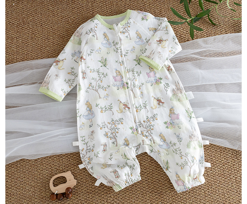 아기 슬리핑 백 여름 대나무면 거즈 스플릿 다리 슬리핑 백 소년 소녀를위한 아기 긴 소매 메쉬 4 시즌 동안 통기성 파자마