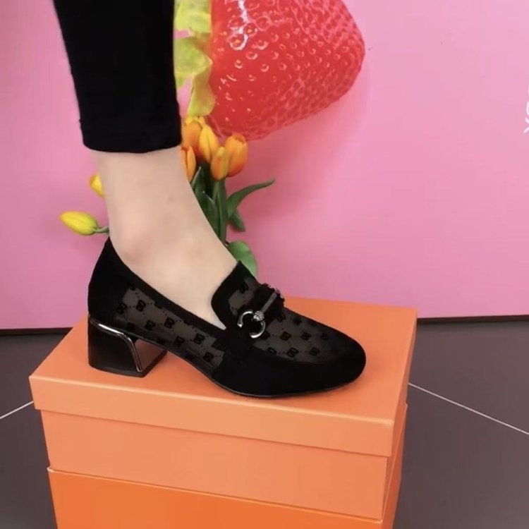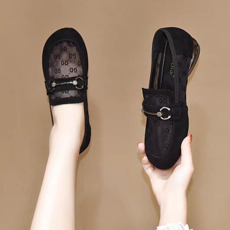 부드러운 가죽 메쉬 싱글 레이어 신발 여성의 2025 새로운 여름 여성 신발 두꺼운 힐 신발 올매치 통기성 Lefu 여성용 샌들스토어 가기