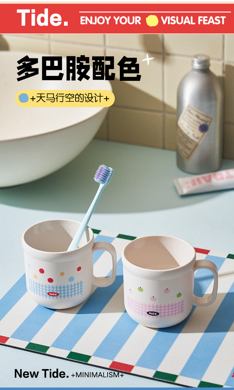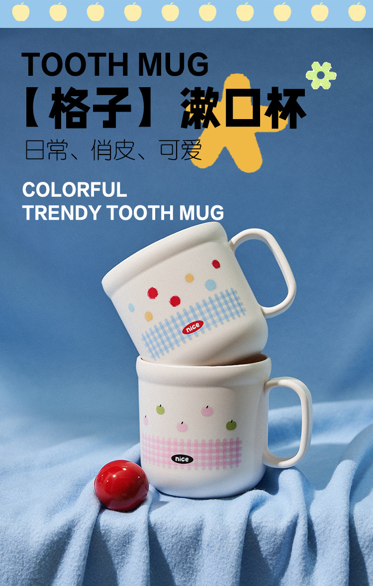 [격자무늬] 귀여운 구강청결제 컵, 학생과 어린이를 위한 고급스러운 칫솔 컵, 칫솔 컵, 칫솔 기숙사 칫솔스토어 가기