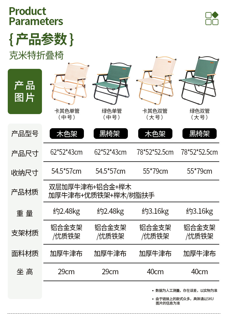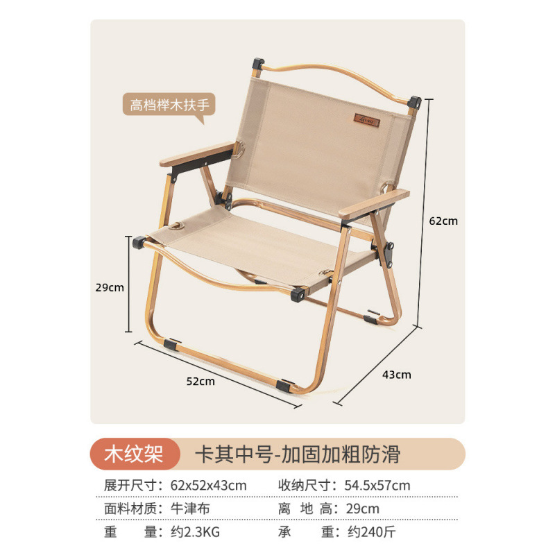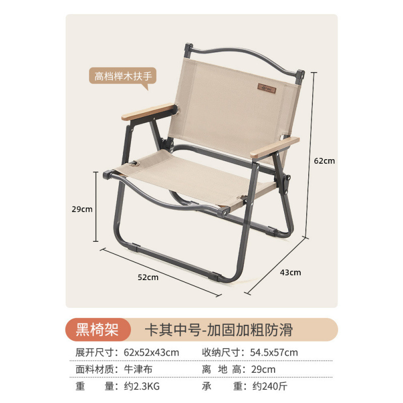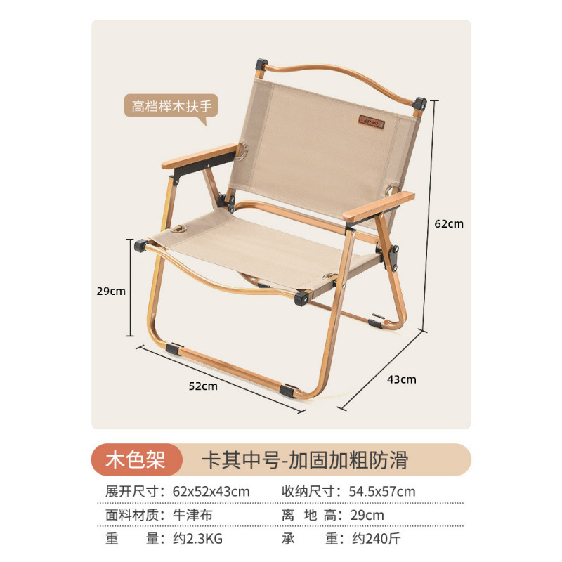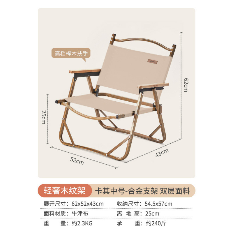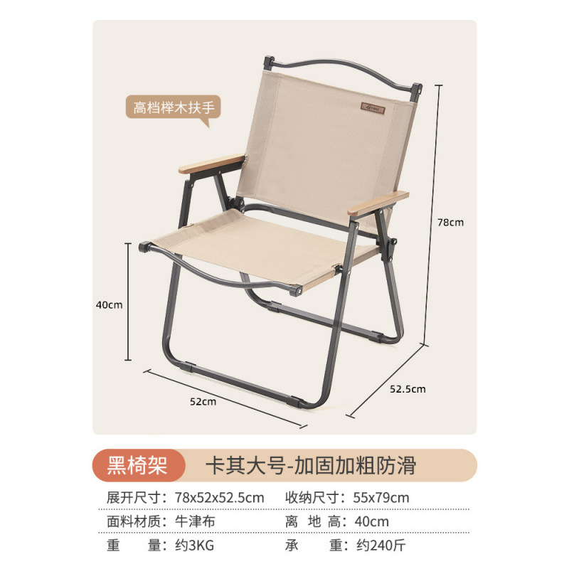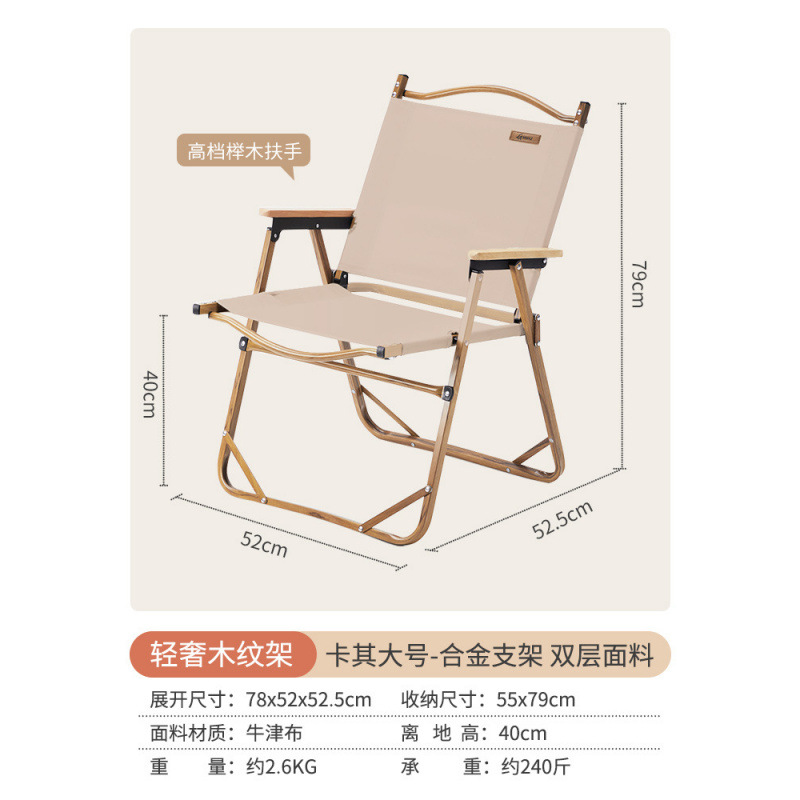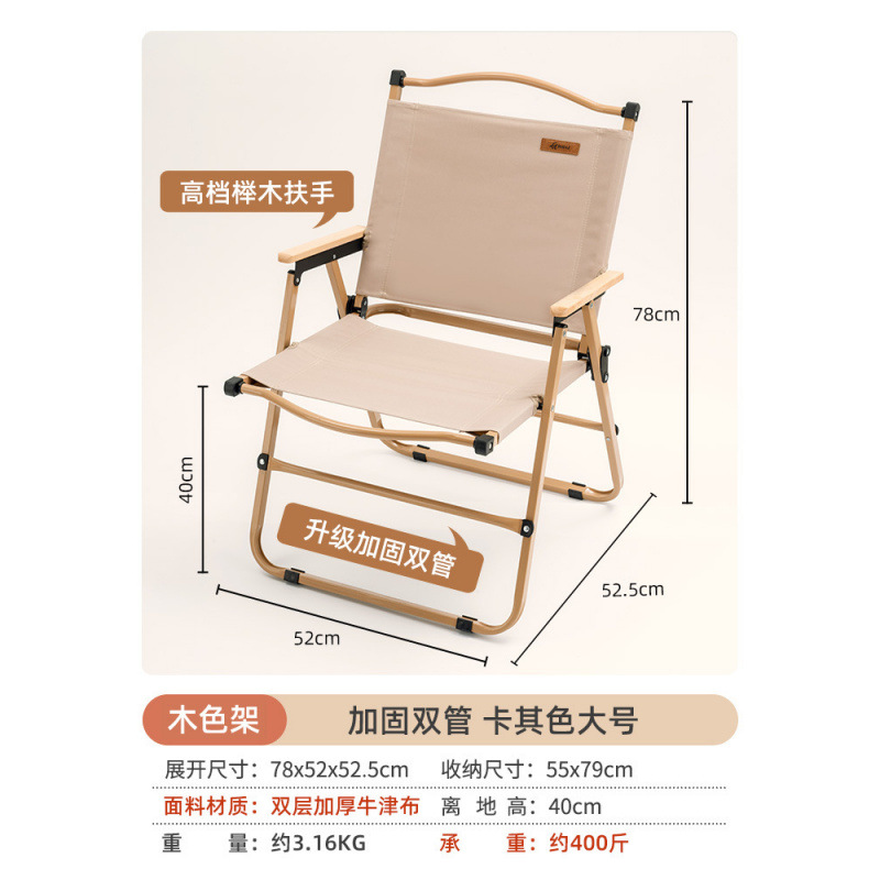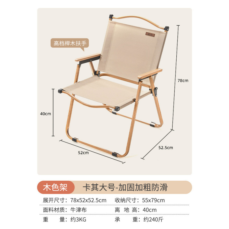 • [카키 라지 - 우드 컬러 프레임] 강화 이중 튜브 - 이중 옥스포드 천/너도밤나무 팔걸이