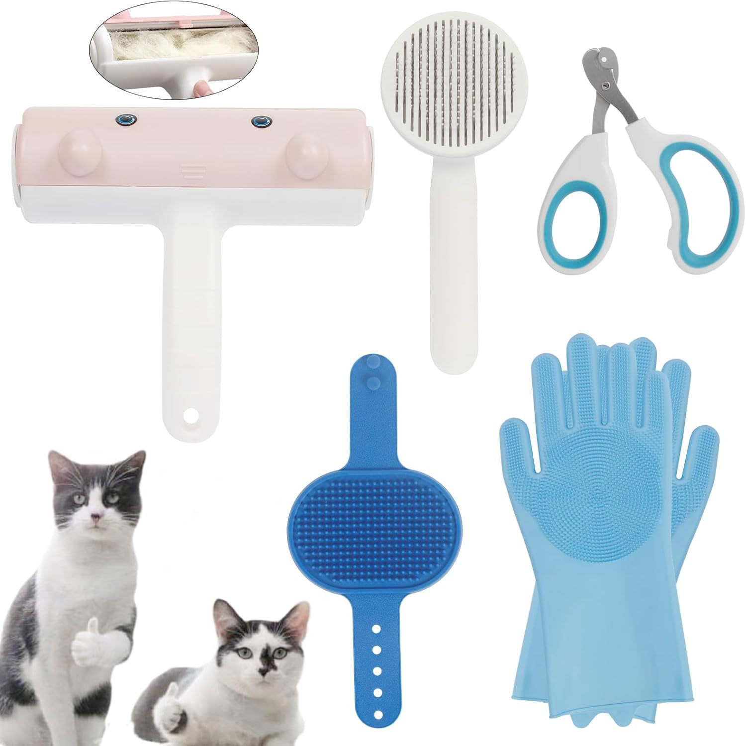 5Pcs 애완 동물 미용 도구 키트 헤어 리무버 고양이와 개를위한 실리콘 브러시 손톱 가위 및 목욕 마사지 브러쉬