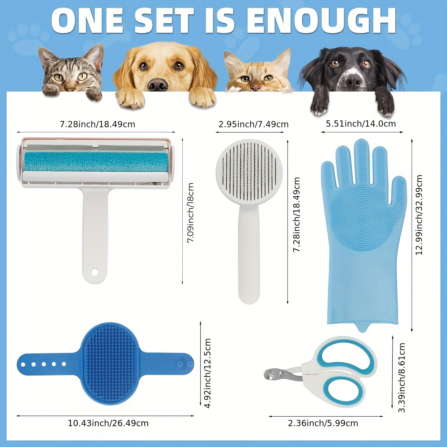 5Pcs 애완 동물 미용 도구 키트 헤어 리무버 고양이와 개를위한 실리콘 브러시 손톱 가위 및 목욕 마사지 브러쉬스토어 가기
