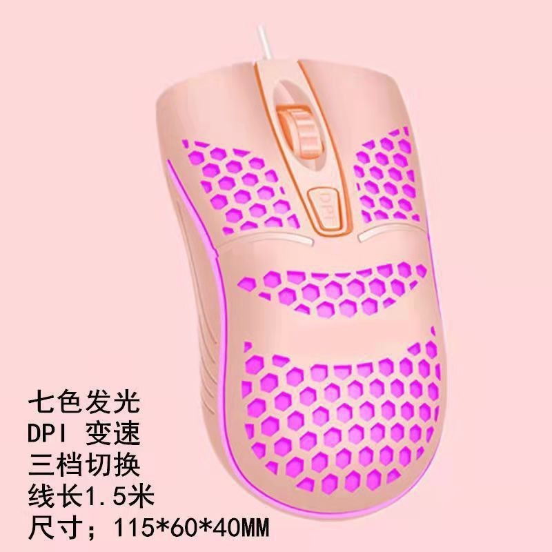 공장 재고 중립 구멍 유선 마우스 데스크톱 노트북 USB 발광 4D 핑크 오피스 마우스스토어 가기