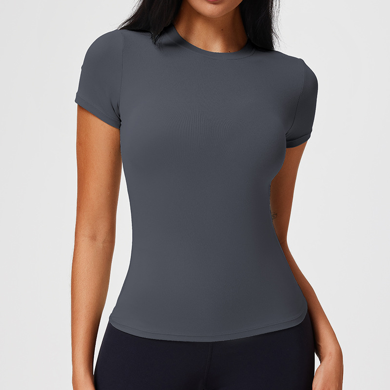 크로스보더 여성용 슬림핏 스포츠 티셔츠, 통기성 좋은 고탄력 러닝 요가복 반팔스토어 가기