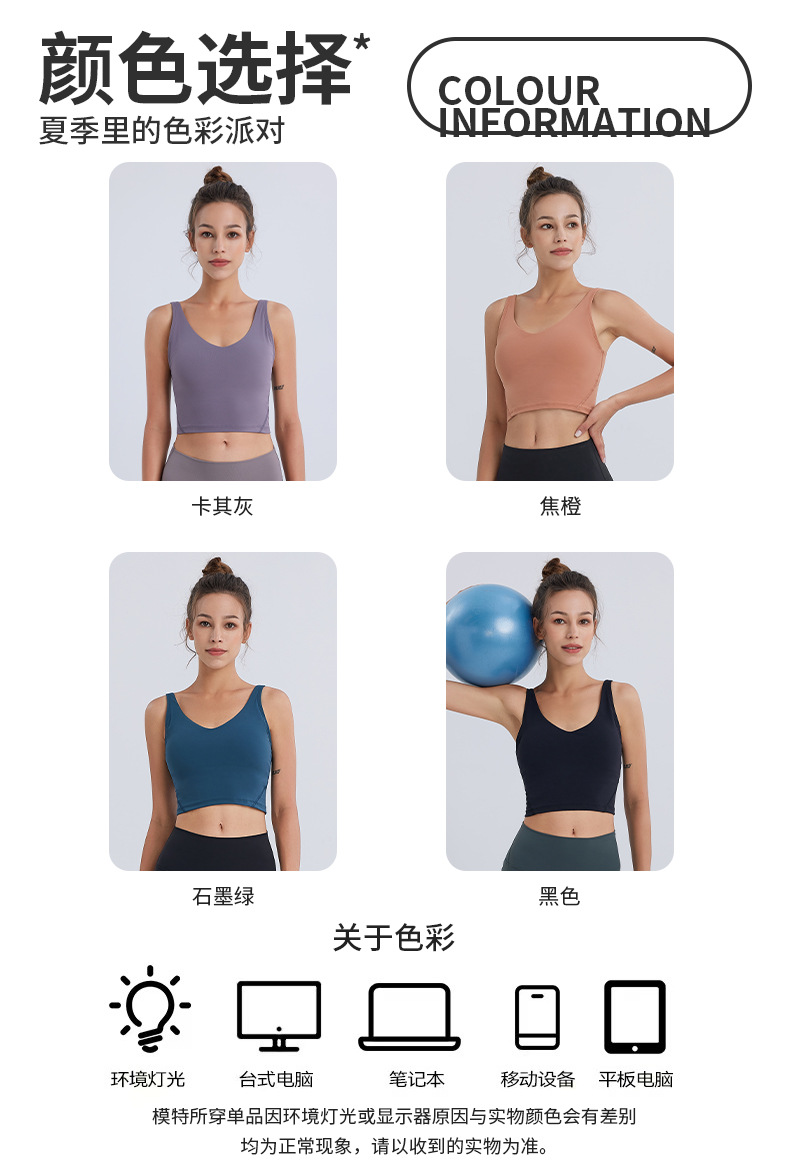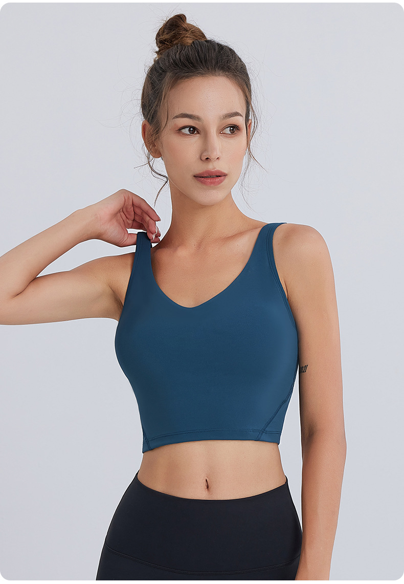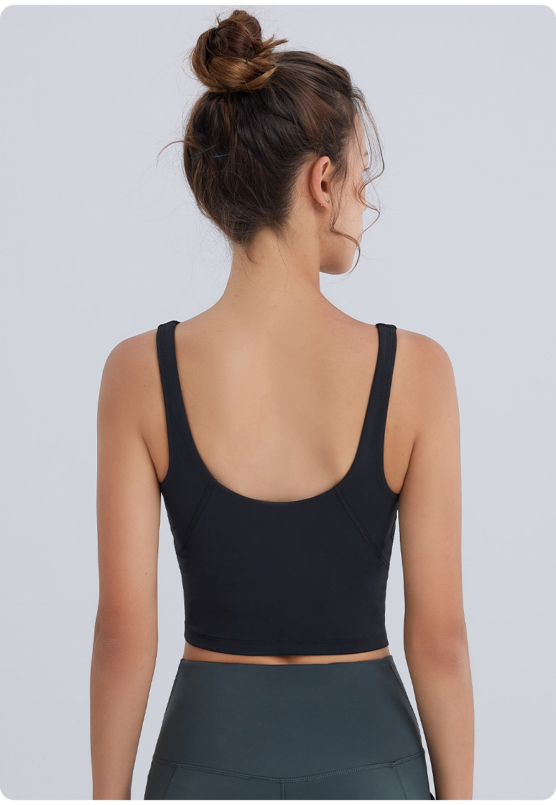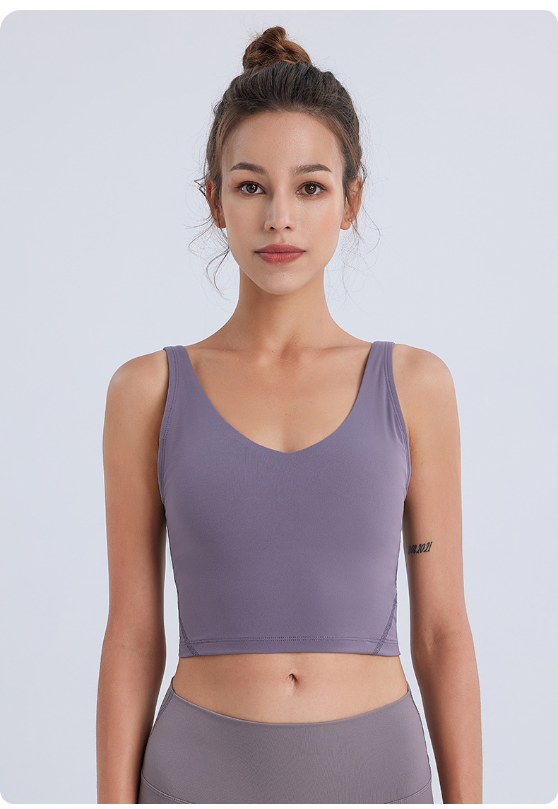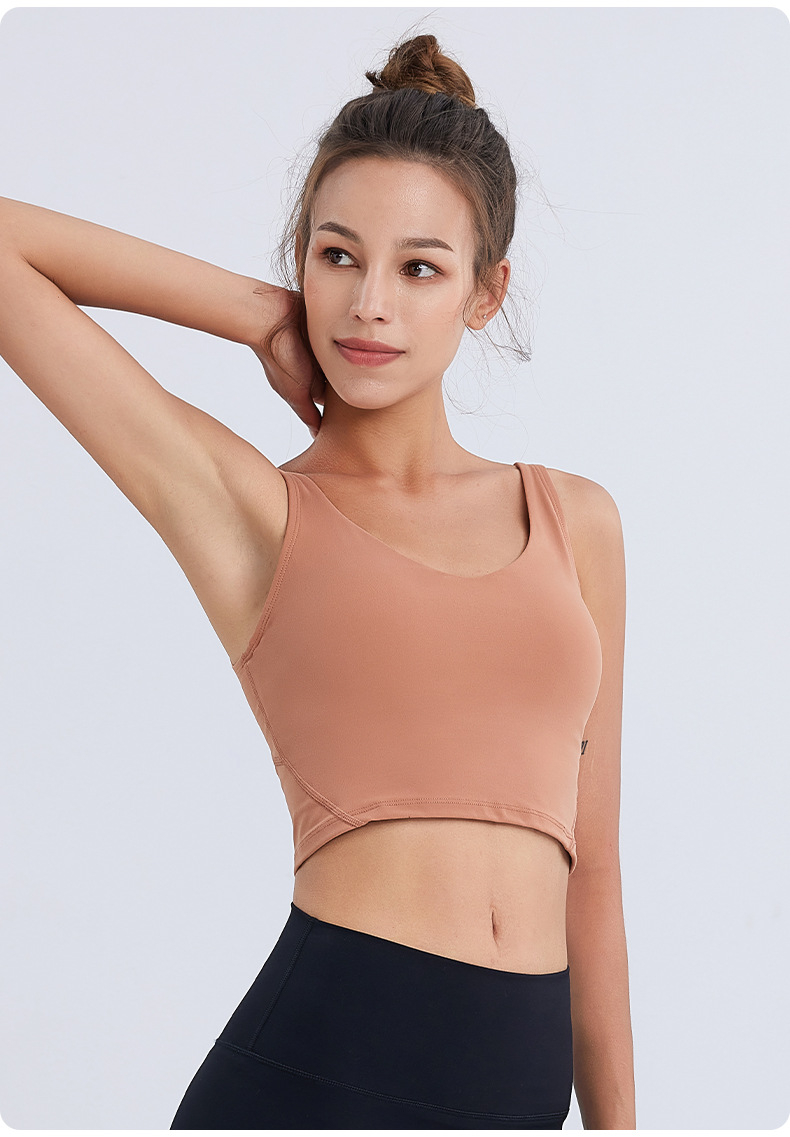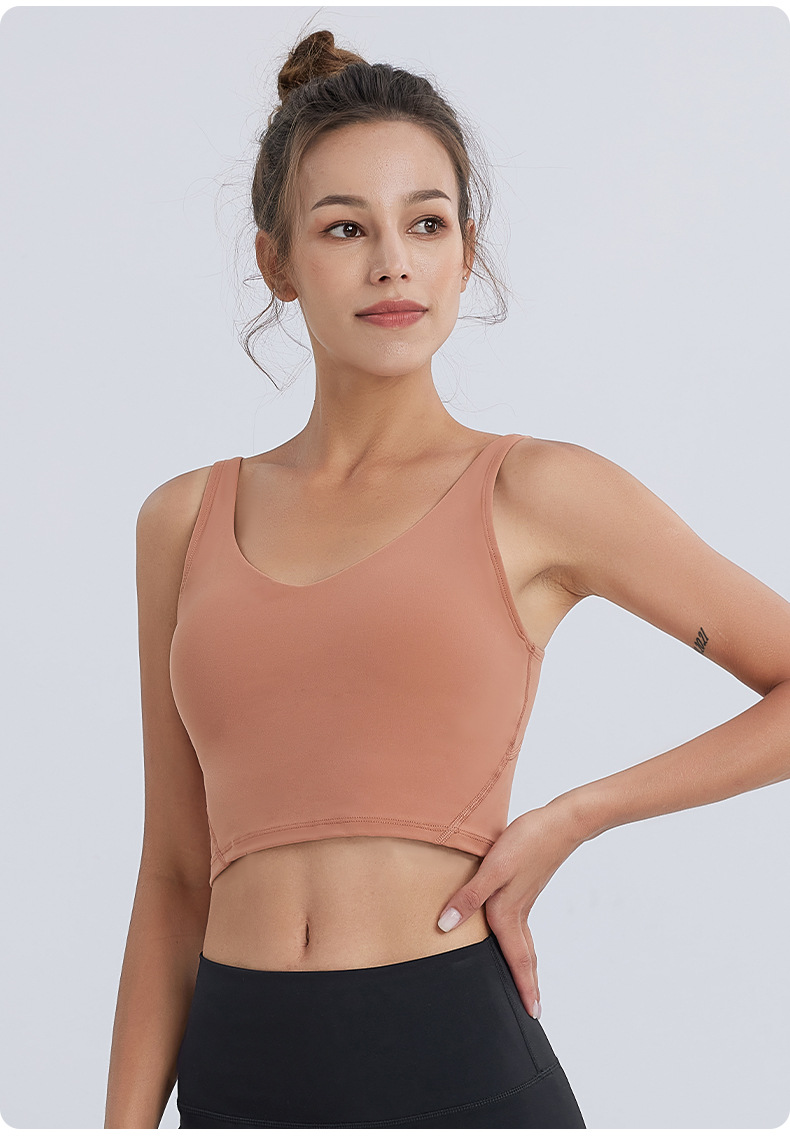 새로운 누드감 편안한 스포츠 브라 통기성 탈부착 가능한 패드 요가 브라 아름다운 등라인 피트니스 조끼 여성용 조끼 스타일