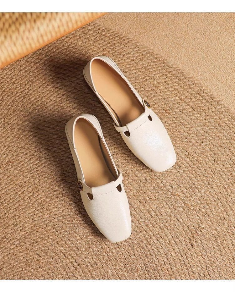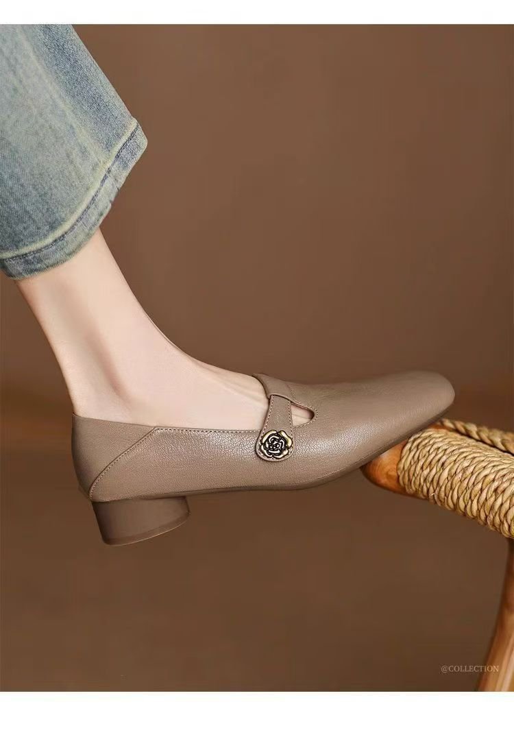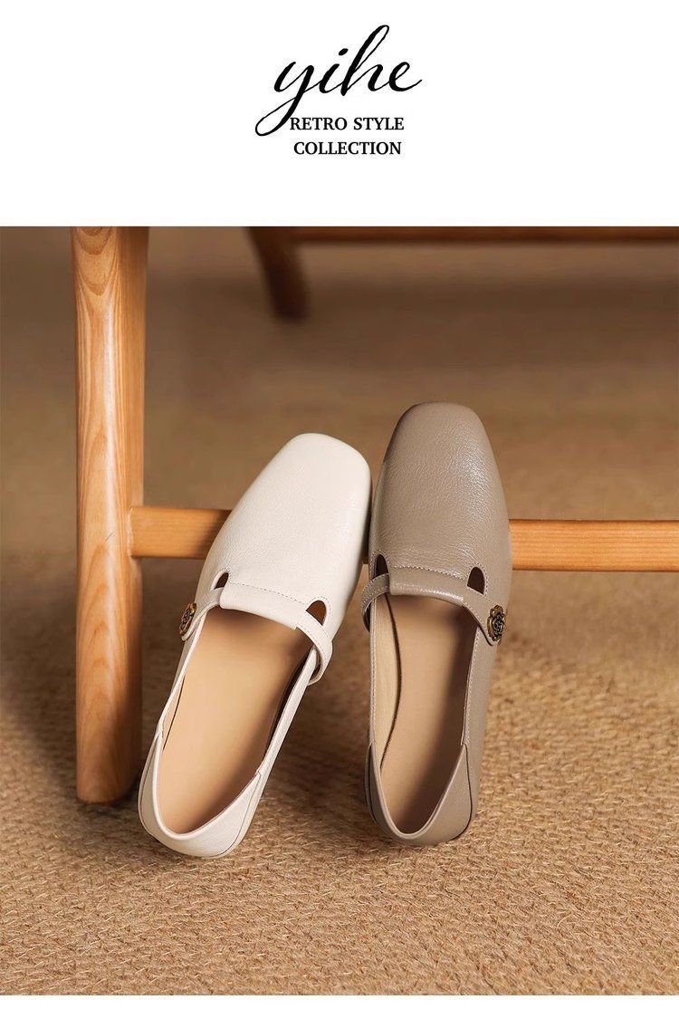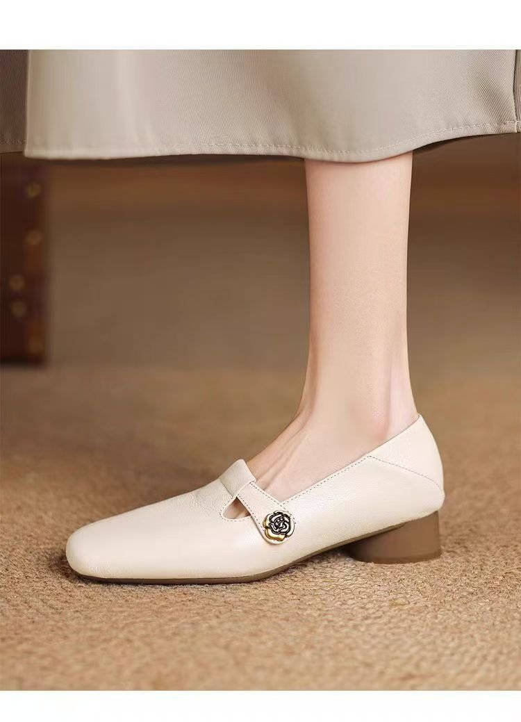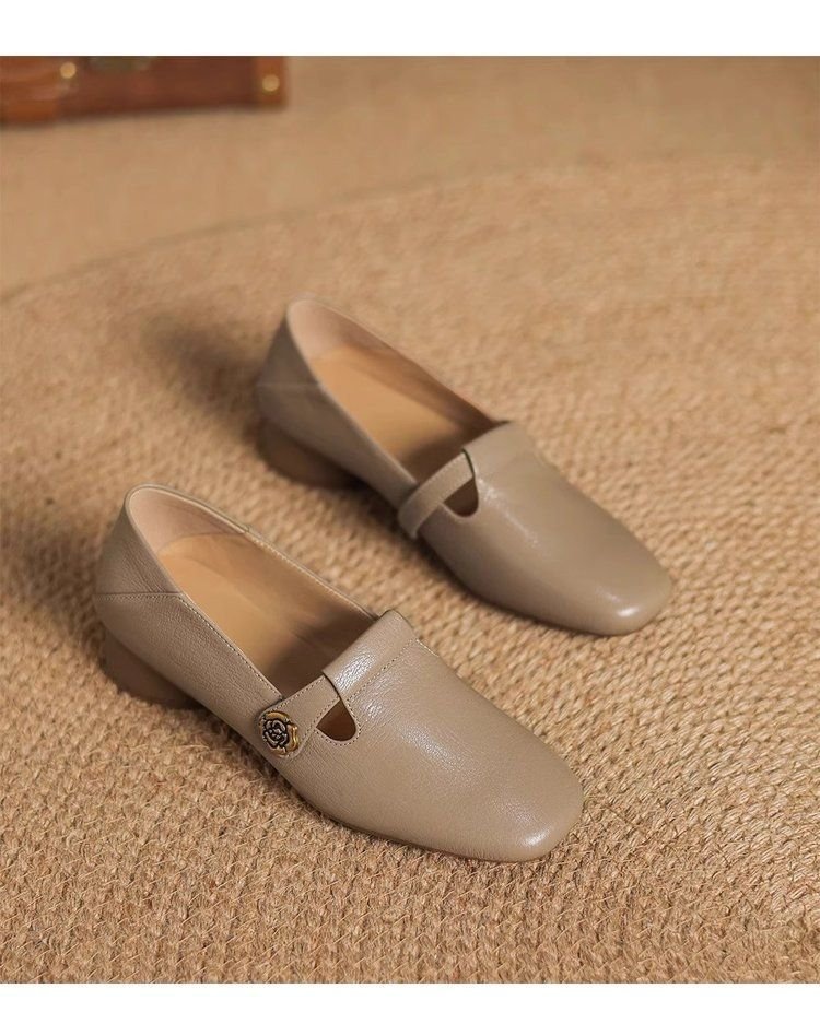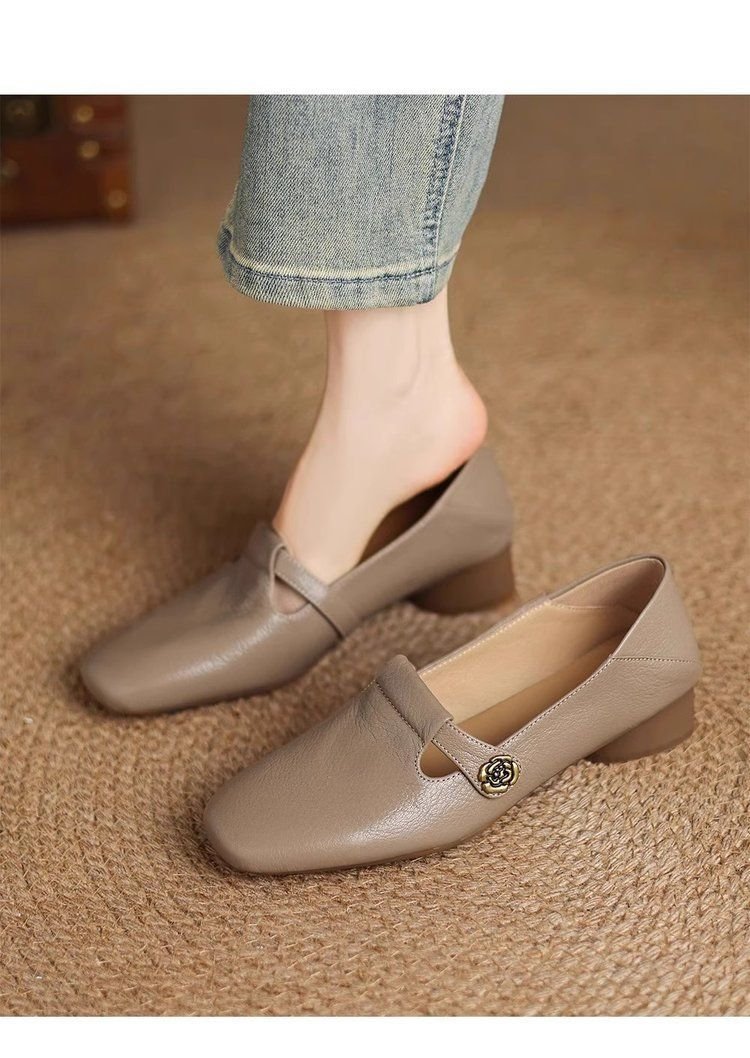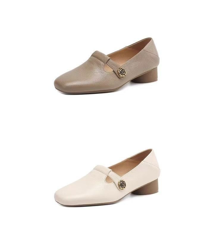 레트로 스퀘어 토 가죽 펌프스 여성 양가죽 로우힐 여성화 2025 신작 봄 여름 영국 소형 가죽 신발 3cm
