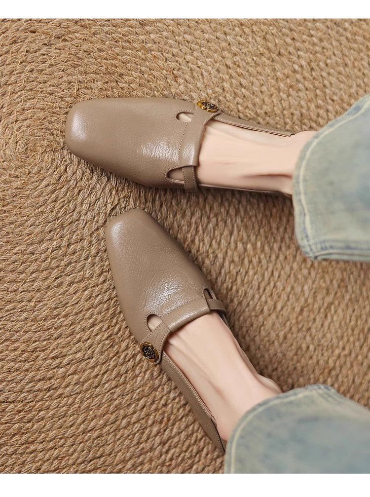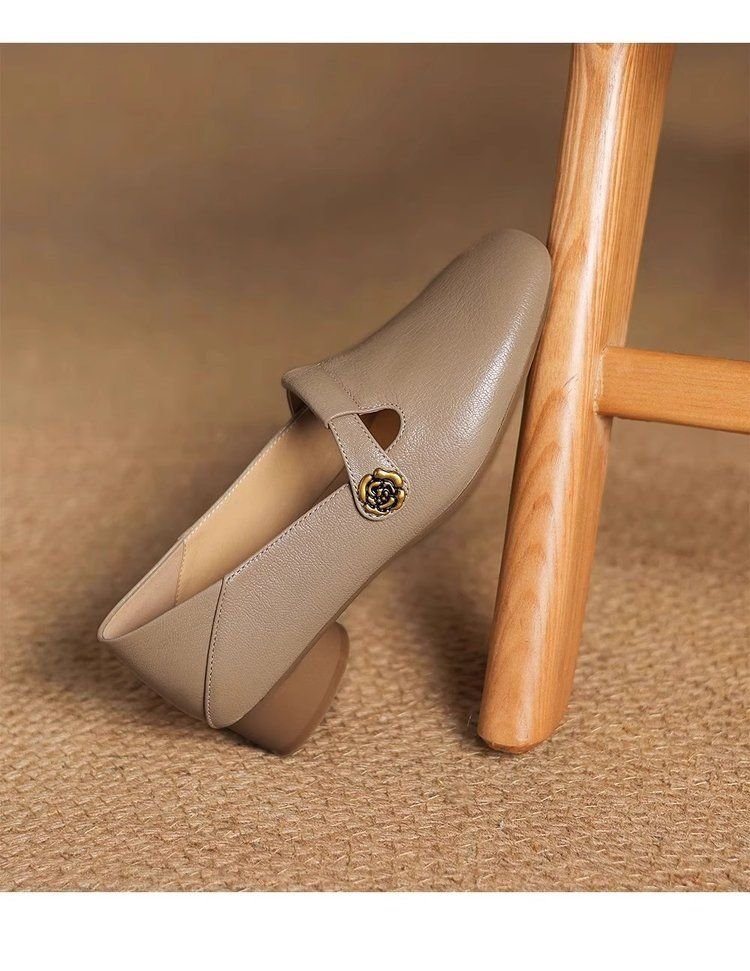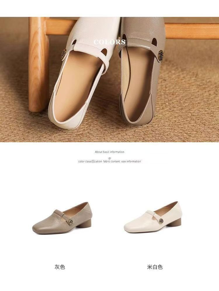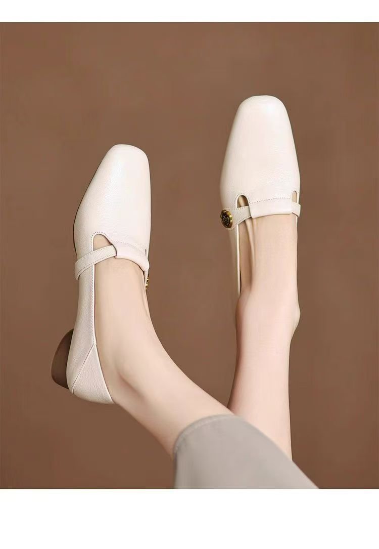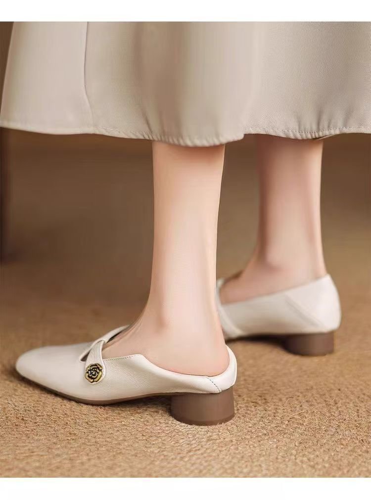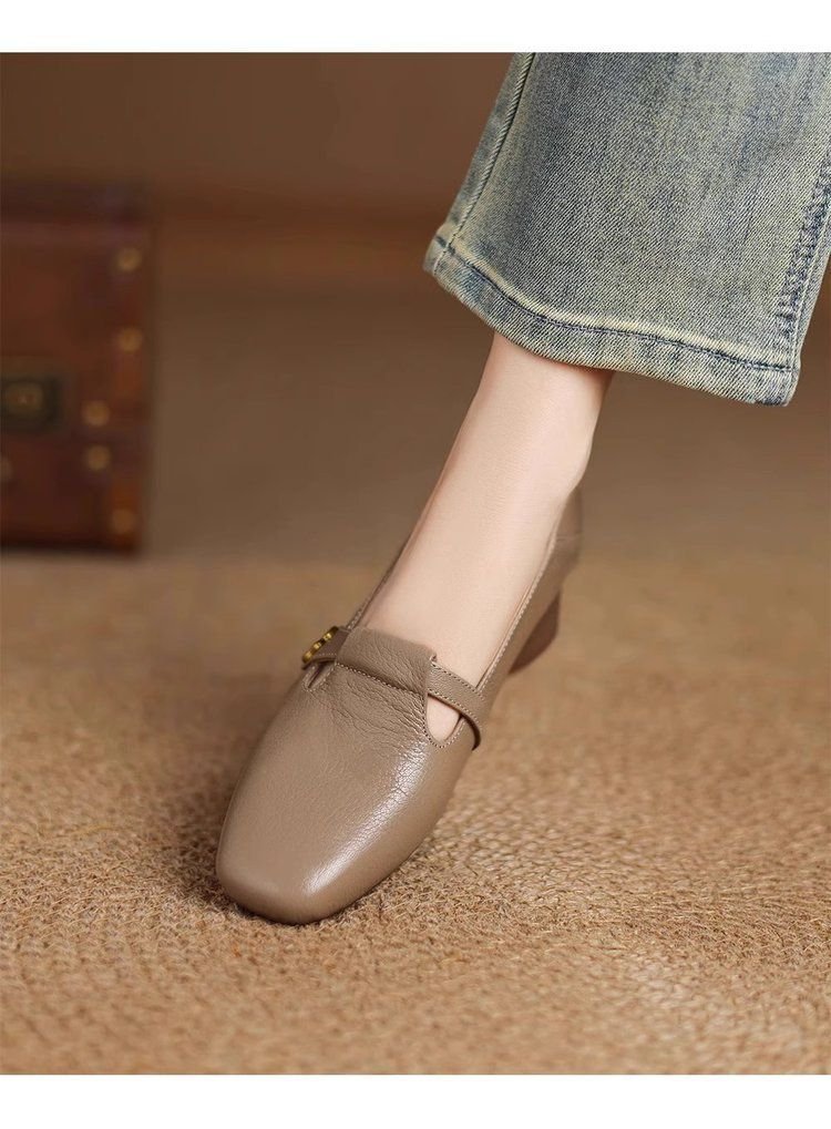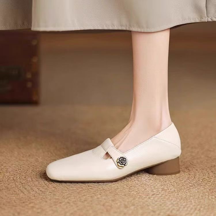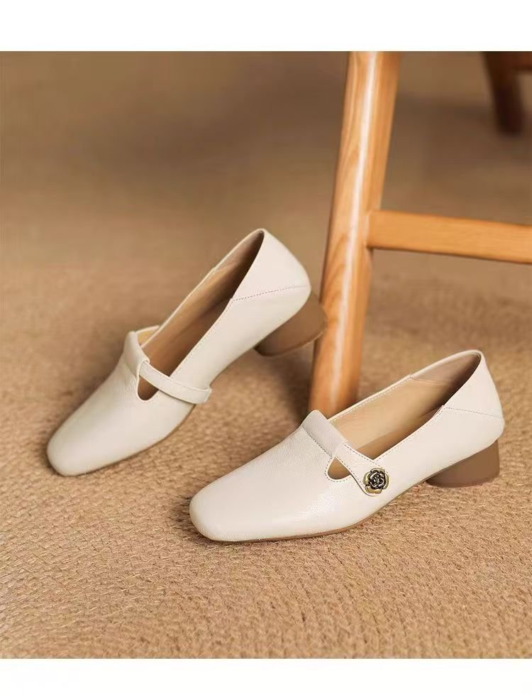 레트로 스퀘어 토 가죽 펌프스 여성 양가죽 로우힐 여성화 2025 신작 봄 여름 영국 소형 가죽 신발 3cm스토어 가기