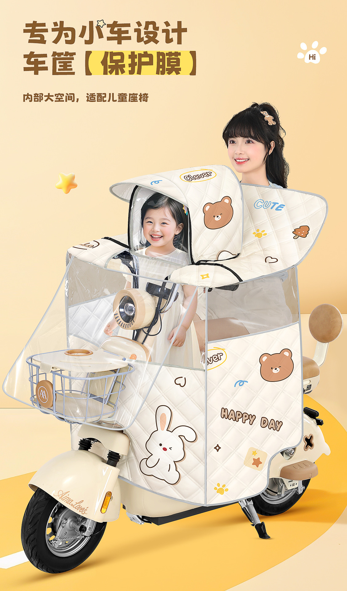 전기차 앞유리, 부모-자식 여름 일체형 자외선 차단제, 소형 배터리 자동차, 바람과 비 차단, 사계절 모두 사용 가능
