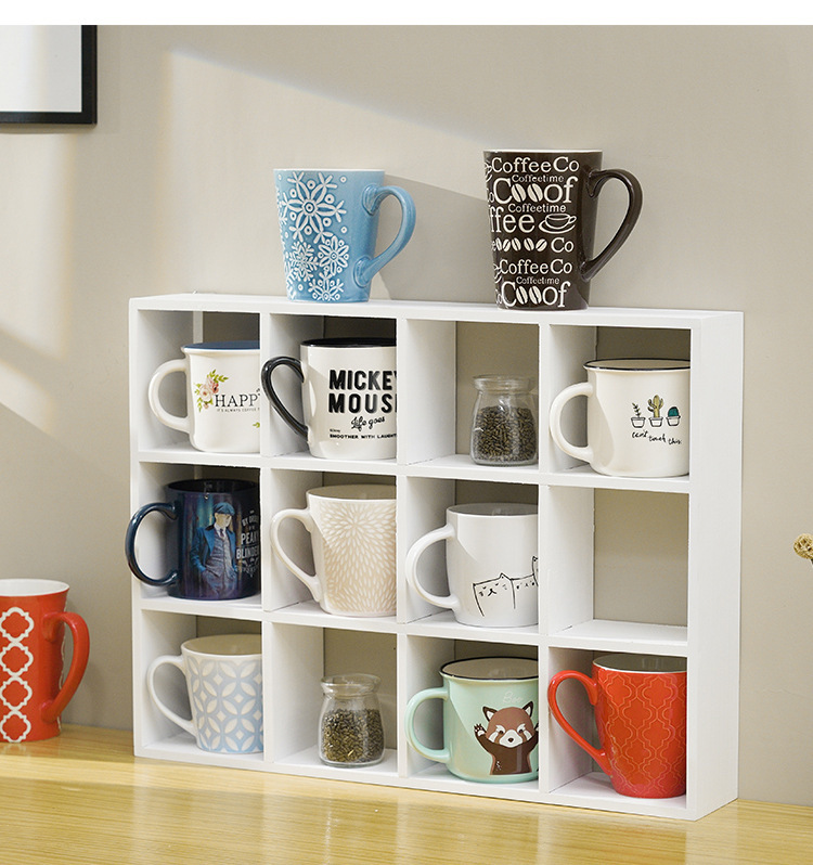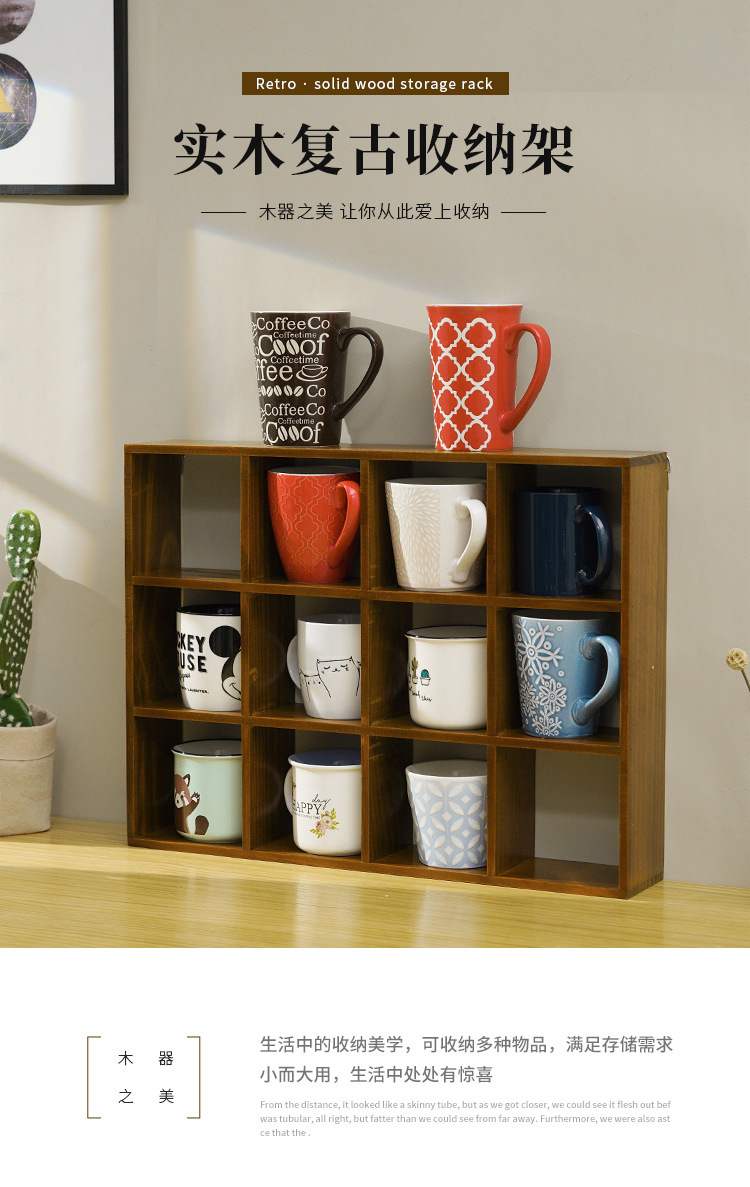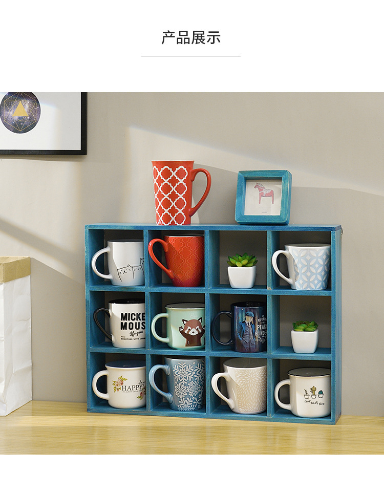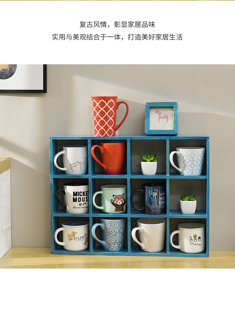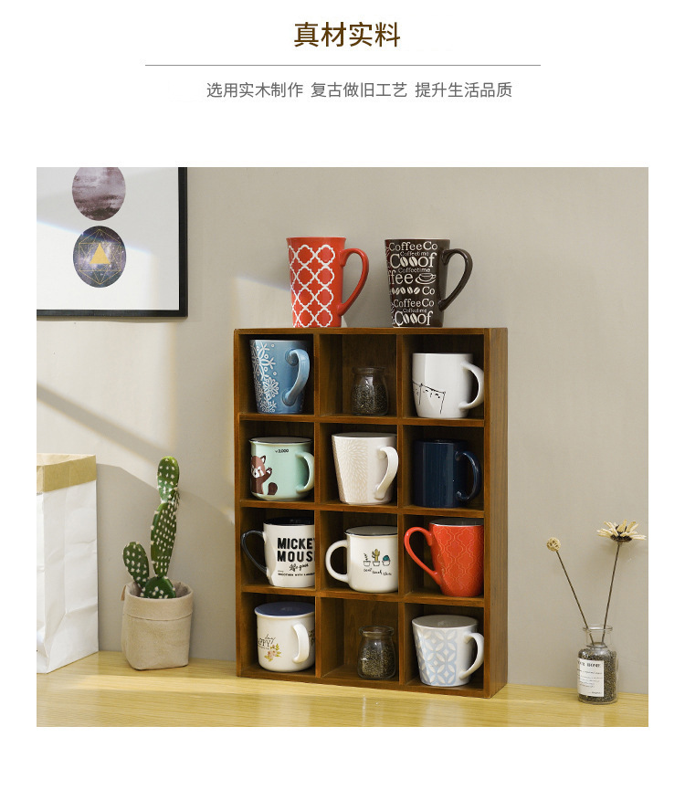 원목 레트로 컵 수납장 12칸 수공예품 진열대 벽걸이형 차세트 진열대 수납 화장품 정리함스토어 가기