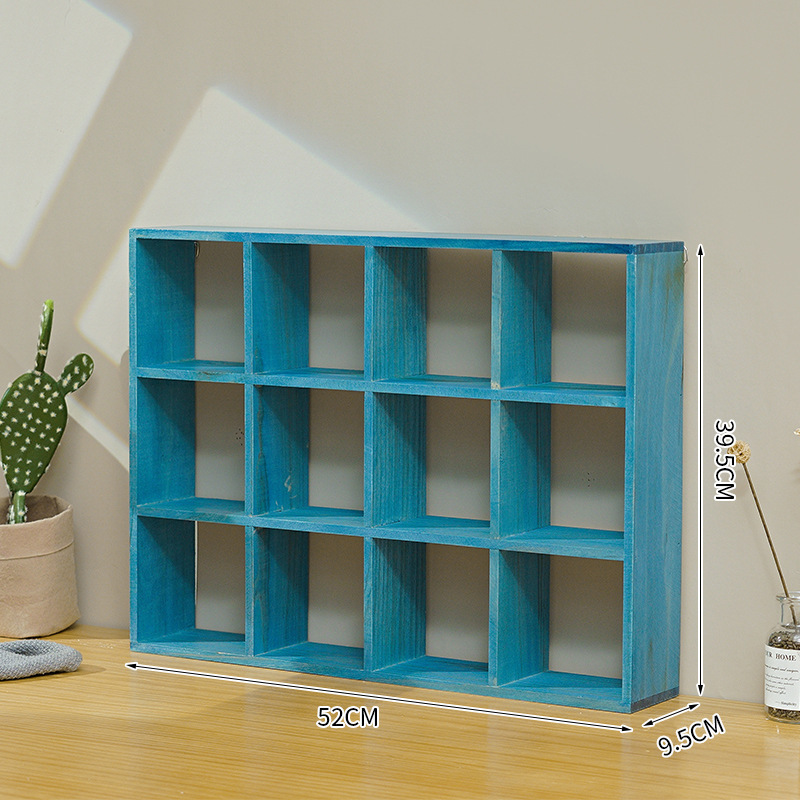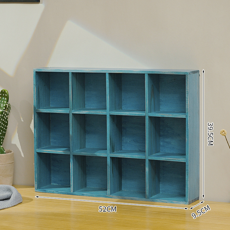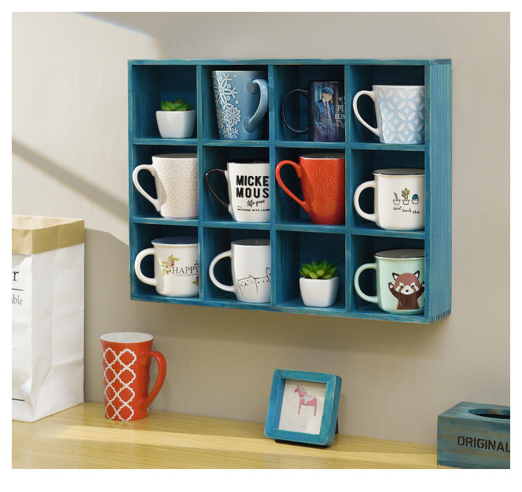 원목 레트로 컵 수납장 12칸 수공예품 진열대 벽걸이형 차세트 진열대 수납 화장품 정리함