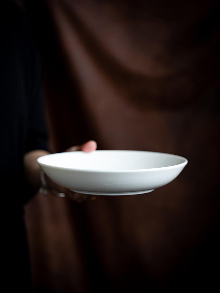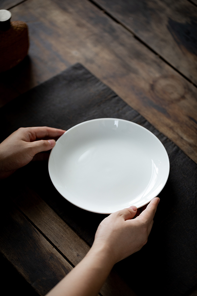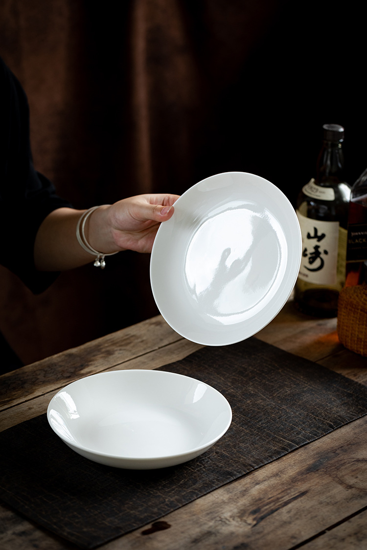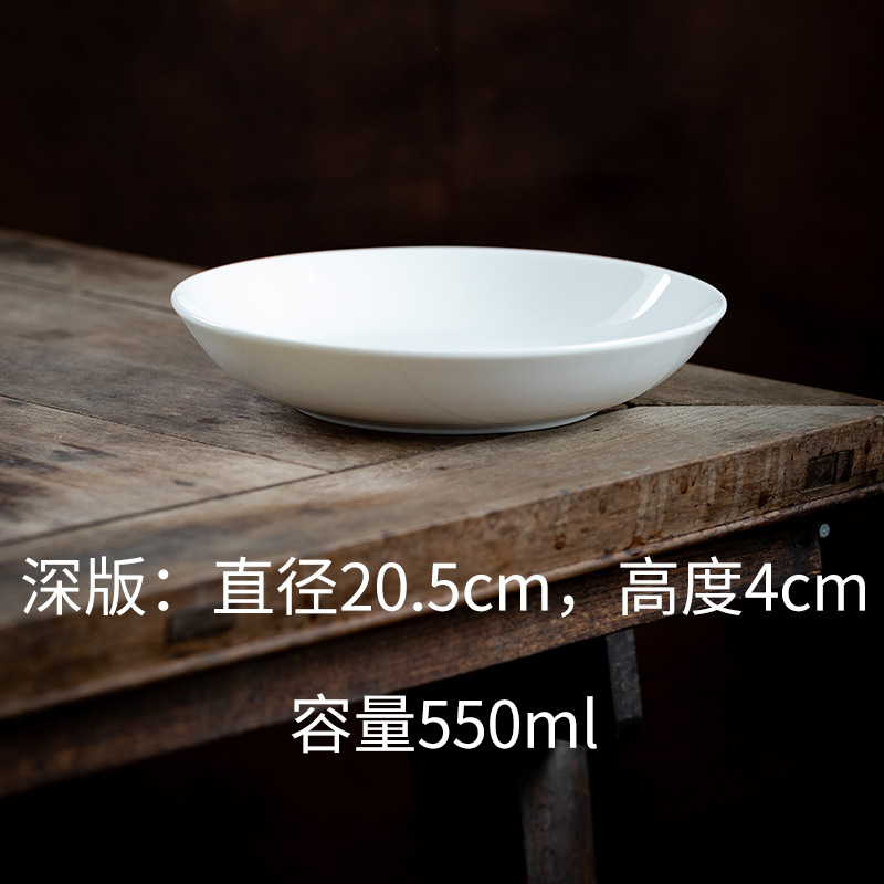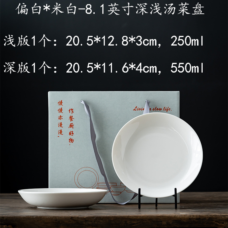 [부분 화이트 * 라이스 화이트] 데화 화이트 도자기 플레이트 8.1 인치 세라믹 수프 플레이트 가정용 다크 플레이트 볶음 플레이트