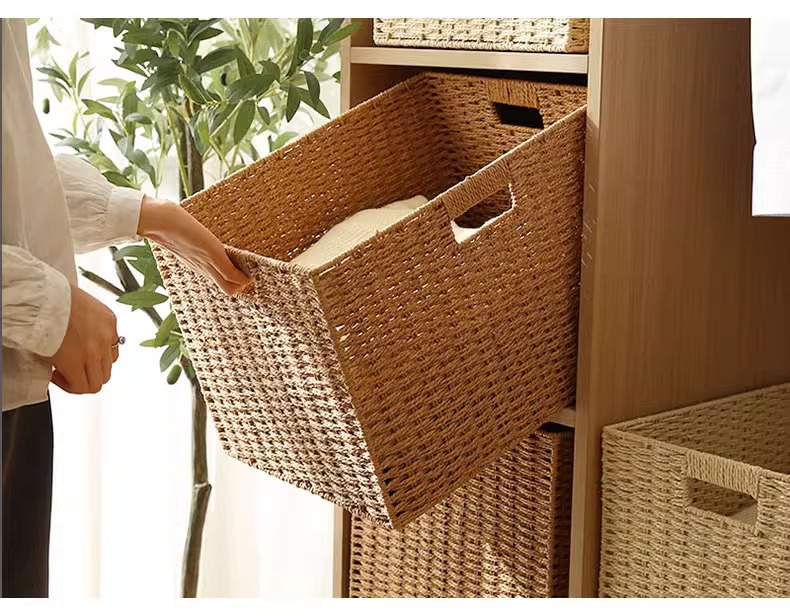 지지 모방 등나무 짠 보관 상자 보관 바구니 잡화 옷장 캐비닛 거실 커피 테이블 마감 보관 상자 보관 상자