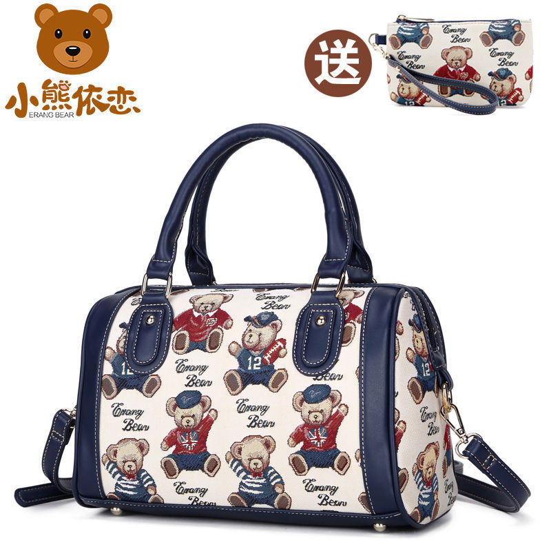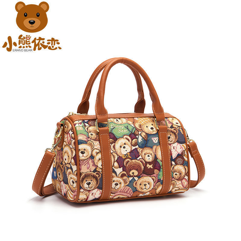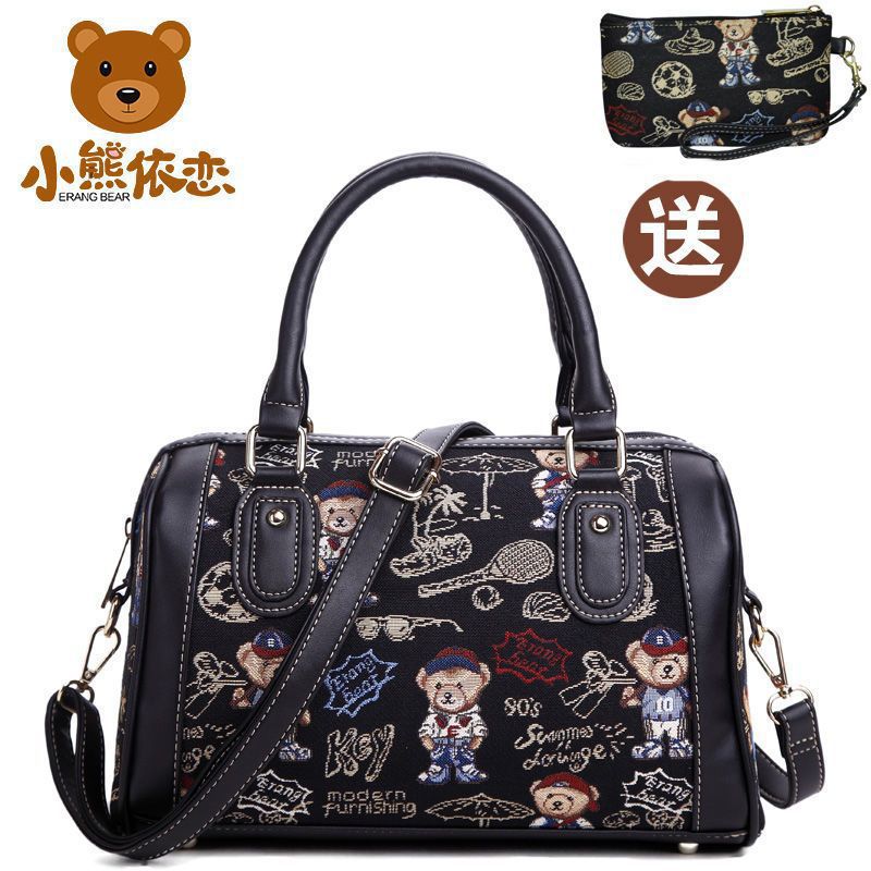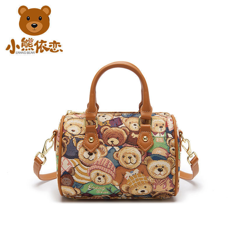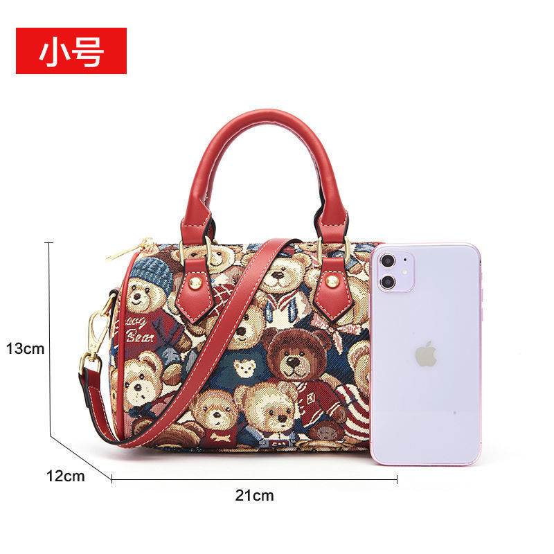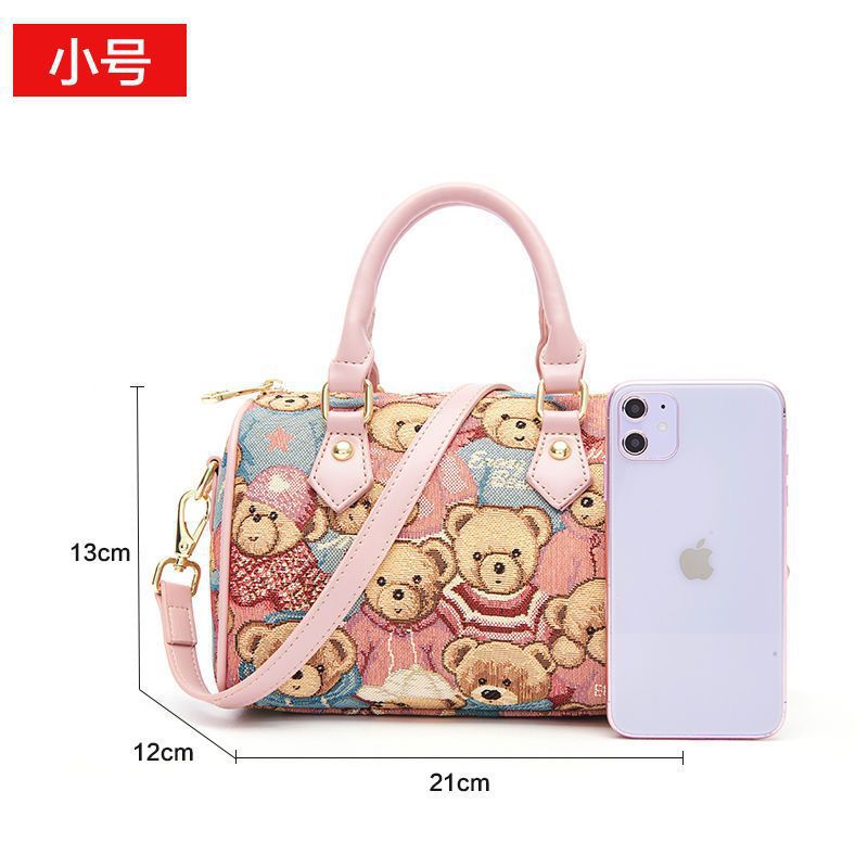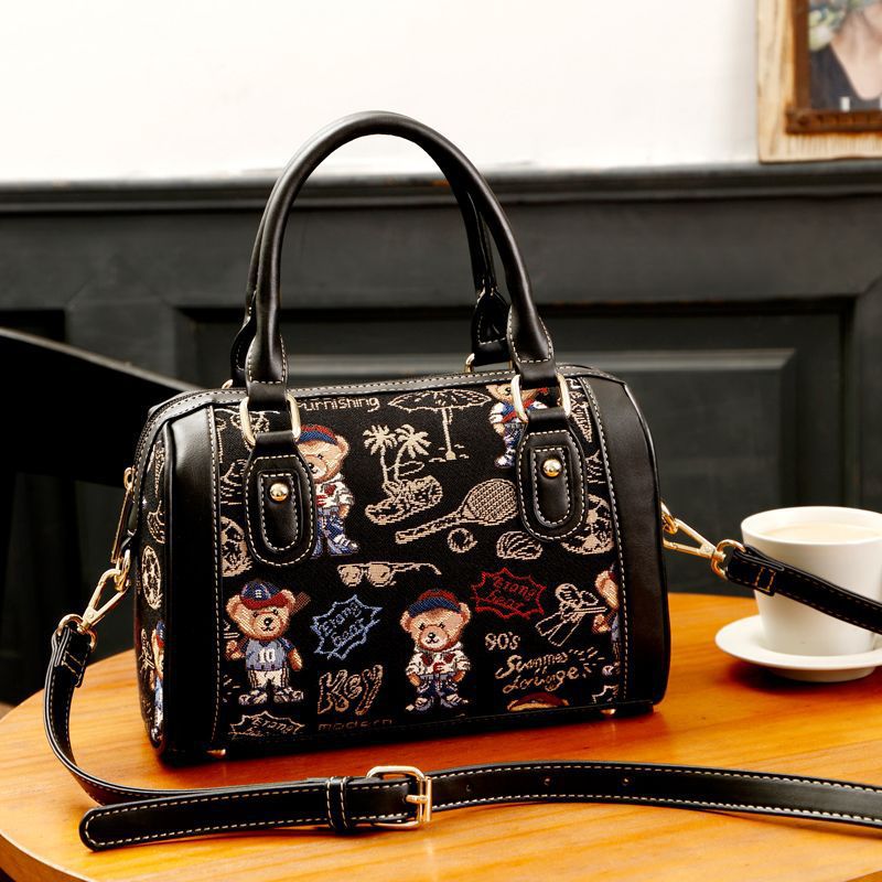 곰돌이 푸우 숄더 핸드백 여성 캔버스 자수 귀여운 대용량 크로스 바디 백 통근 핸드백 보스턴