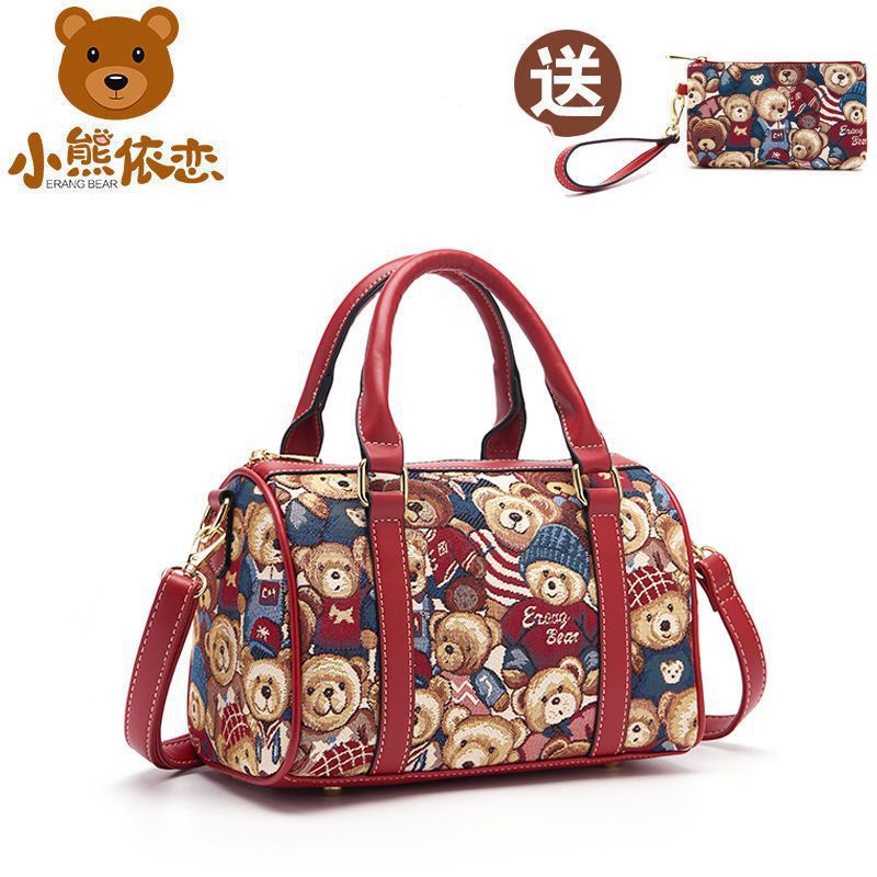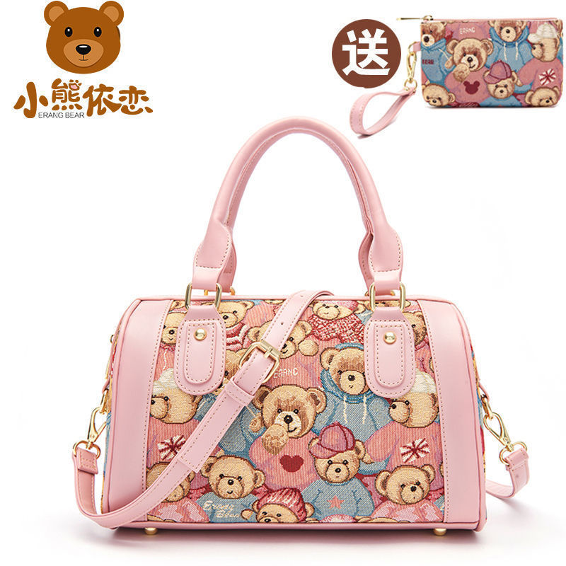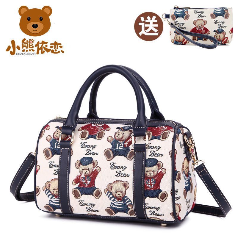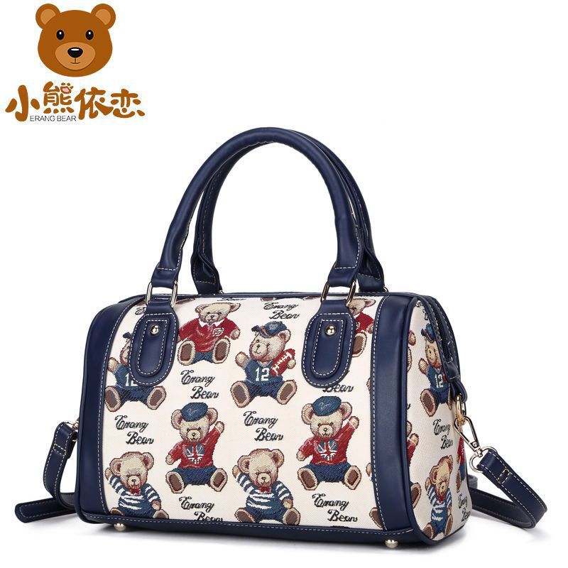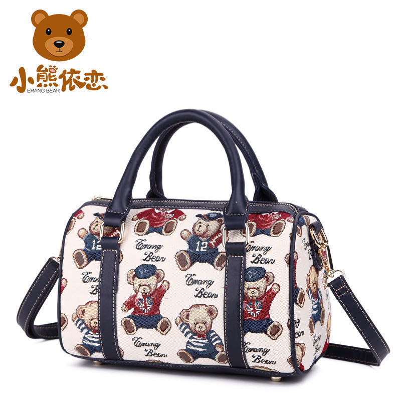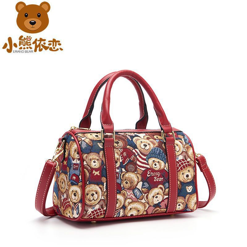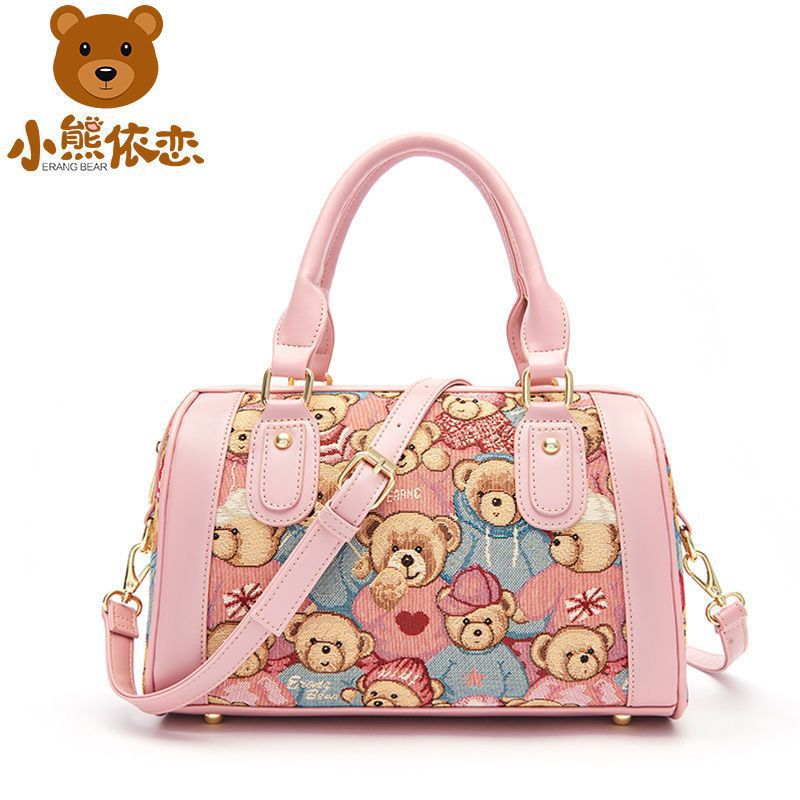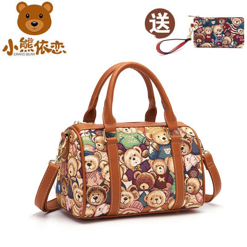 곰돌이 푸우 숄더 핸드백 여성 캔버스 자수 귀여운 대용량 크로스 바디 백 통근 핸드백 보스턴