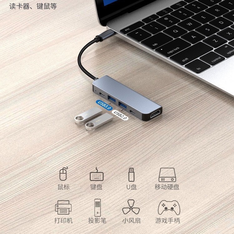 휴대폰 및 컴퓨터 도킹 스테이션 디지털 액세서리에 적합한 크로스보더 Typec 5-in-one 도킹 스테이션 USB 허브4K HD스토어 가기