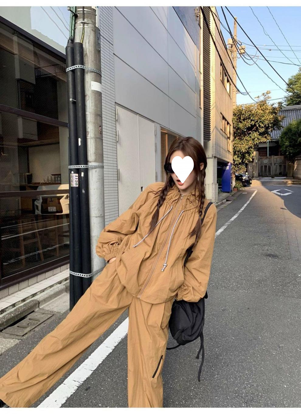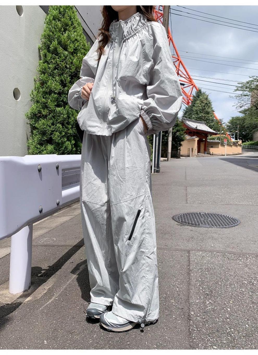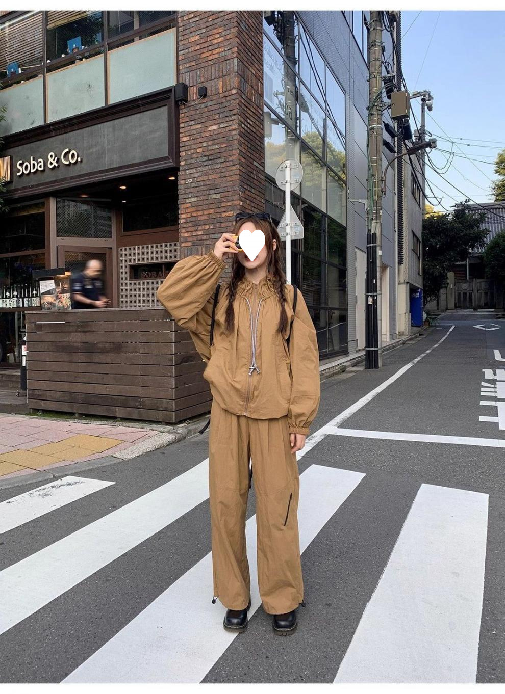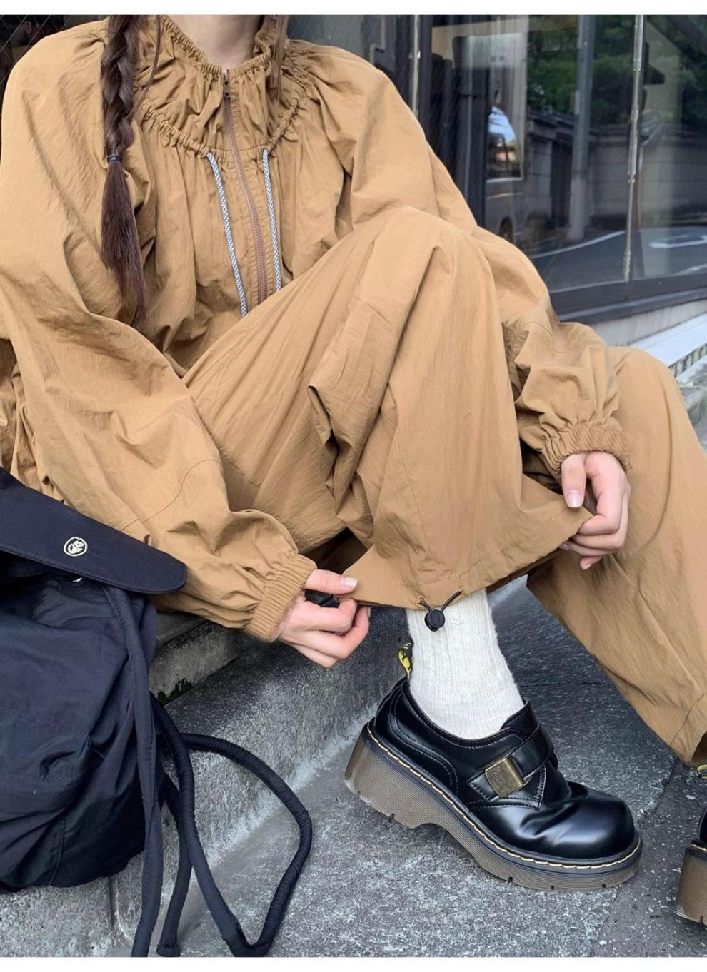 [4278 컬렉션] 드로스트링 충전 원피스 스커트 바지 세트 여성용 루즈 재킷 스커트 캐주얼 바지 2