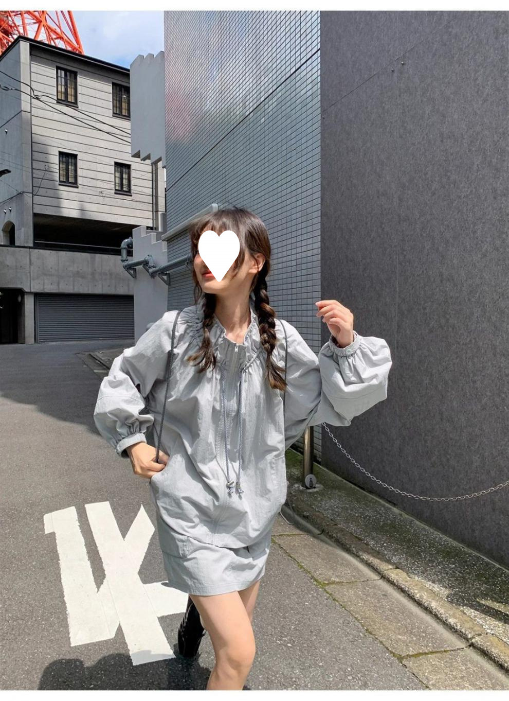 [4278 컬렉션] 드로스트링 충전 원피스 스커트 바지 세트 여성용 루즈 재킷 스커트 캐주얼 바지 2스토어 가기