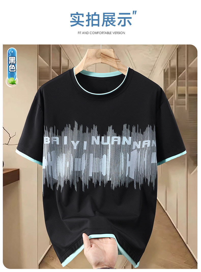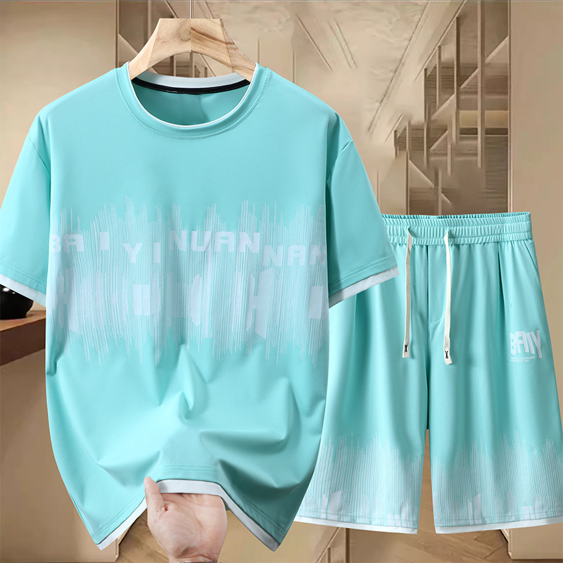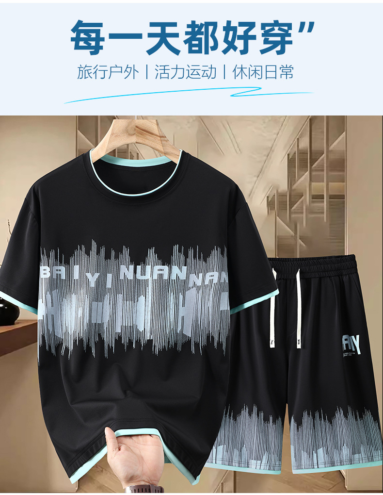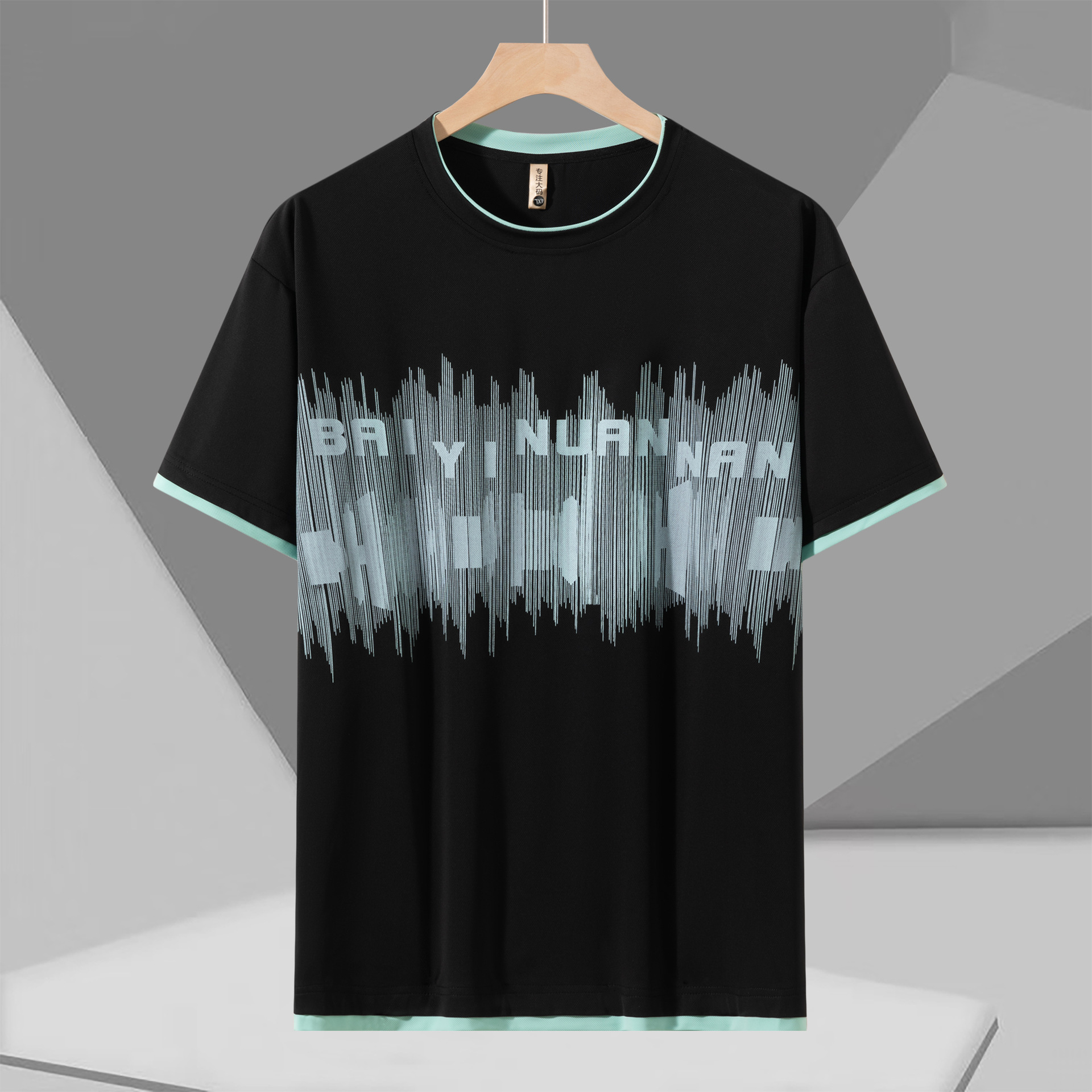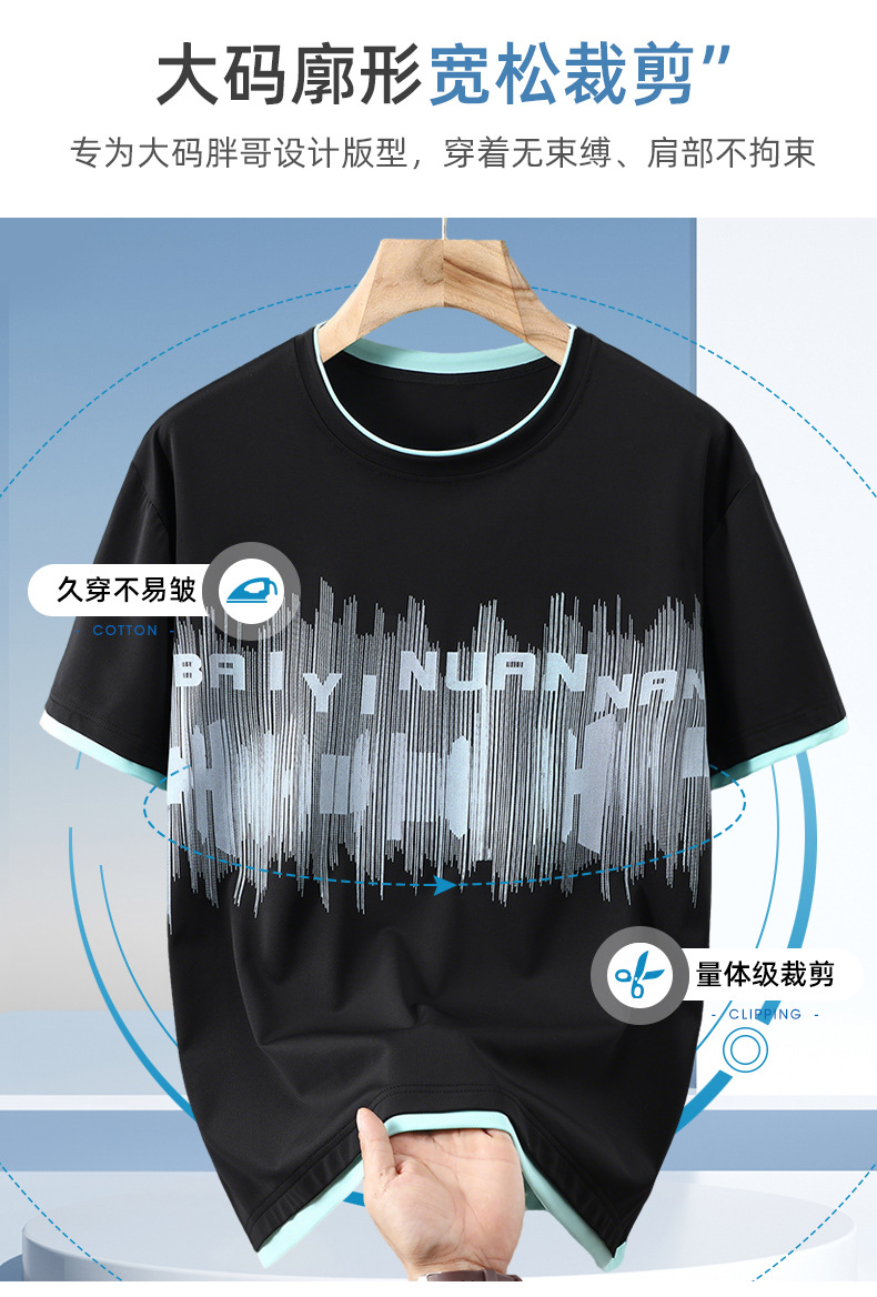 플러스 사이즈 플러스 사이즈 뚱뚱한 형제 가짜 두 조각 유행 둥근 목 인쇄 얇은 여름 캐주얼 스포츠 세트