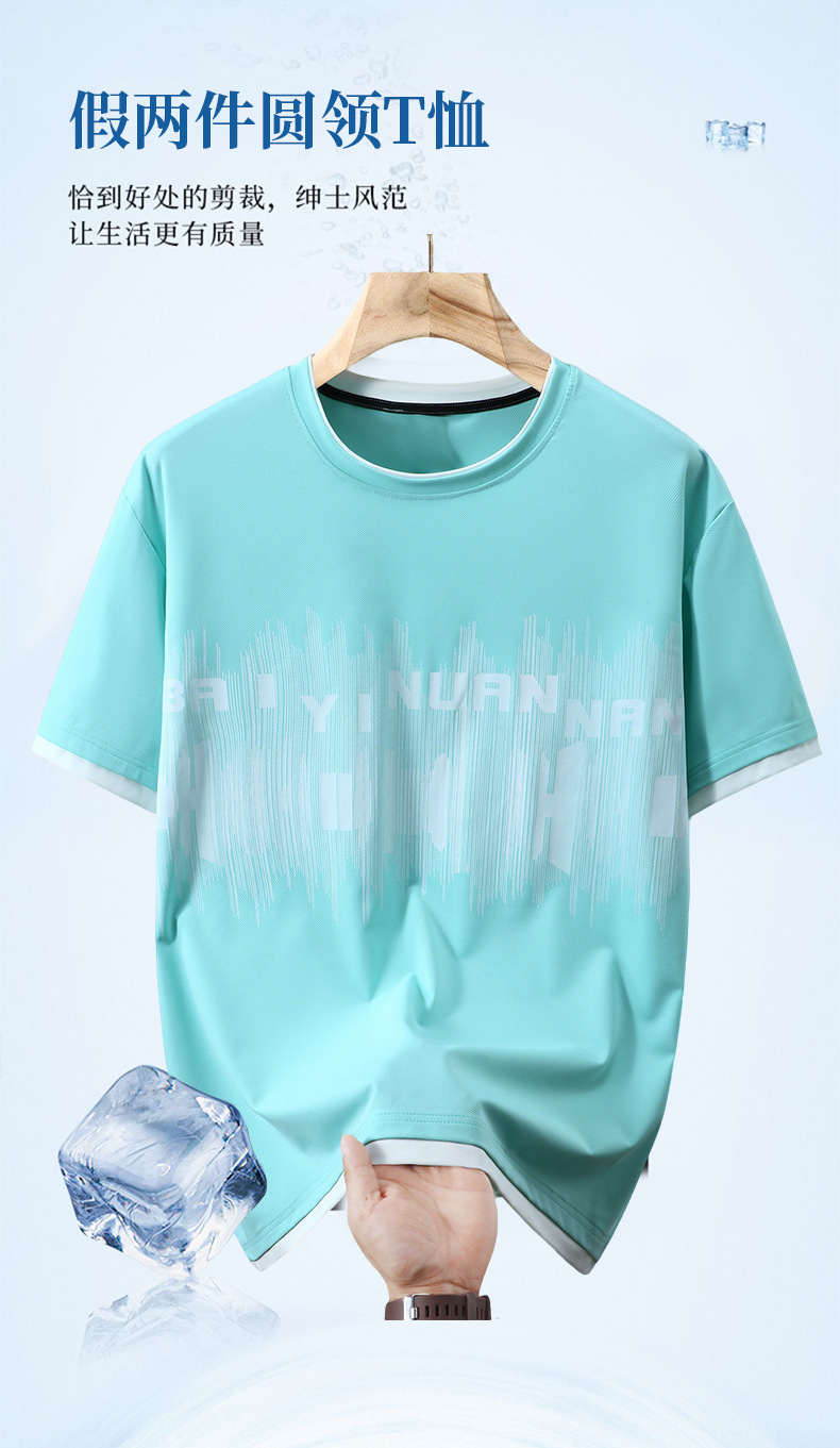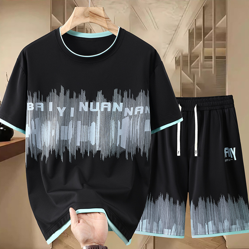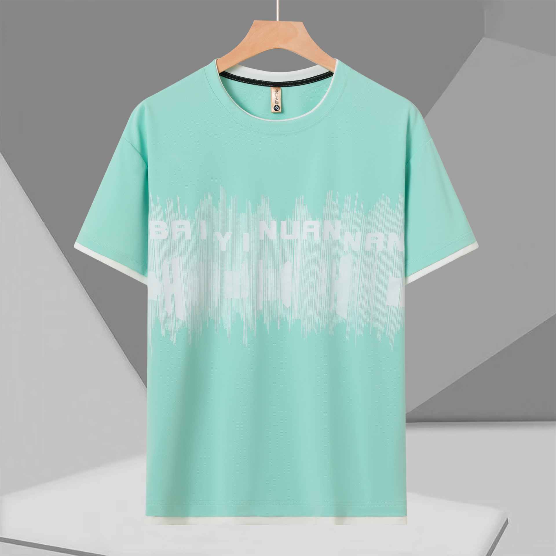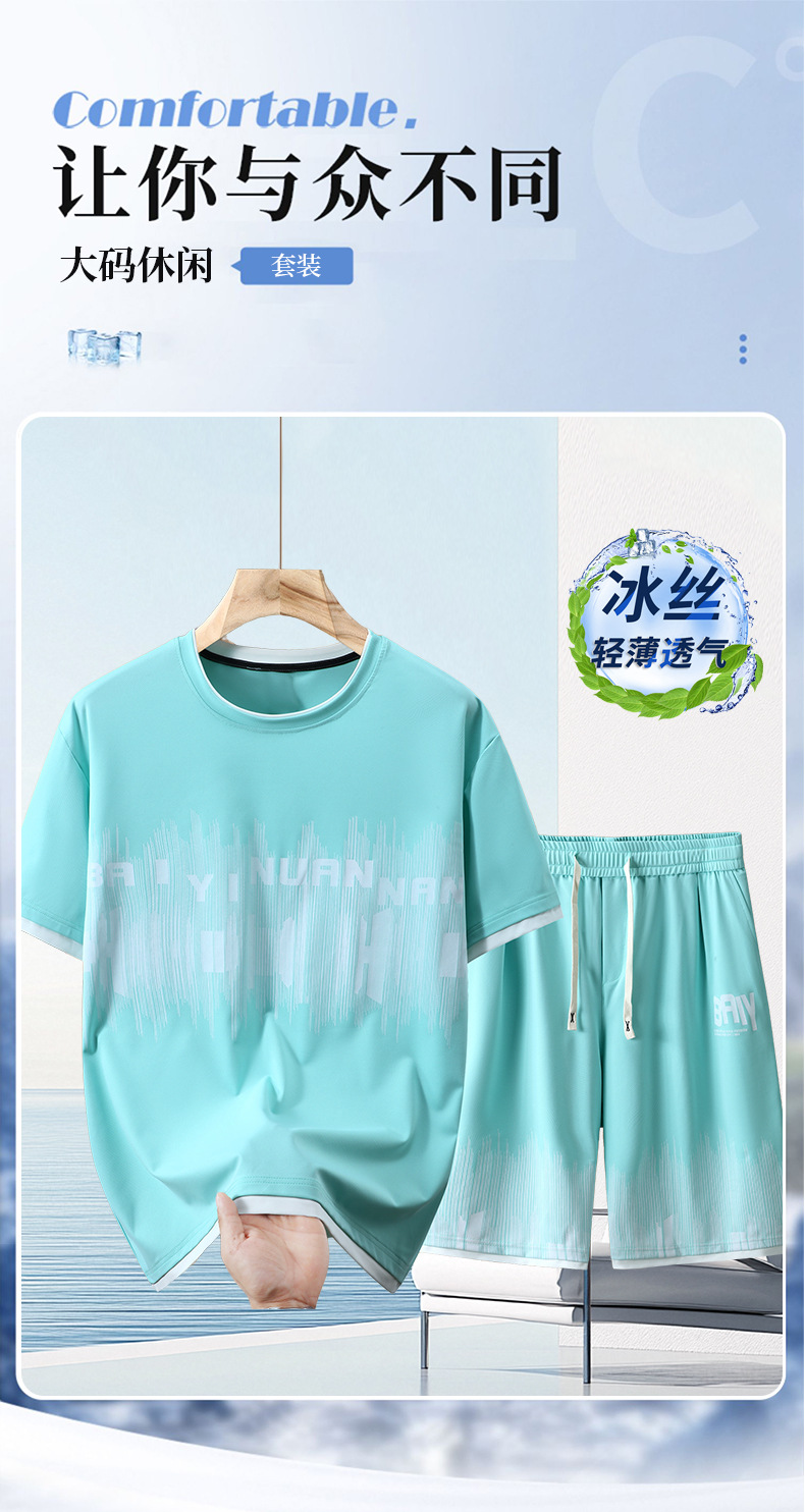 플러스 사이즈 플러스 사이즈 뚱뚱한 형제 가짜 두 조각 유행 둥근 목 인쇄 얇은 여름 캐주얼 스포츠 세트