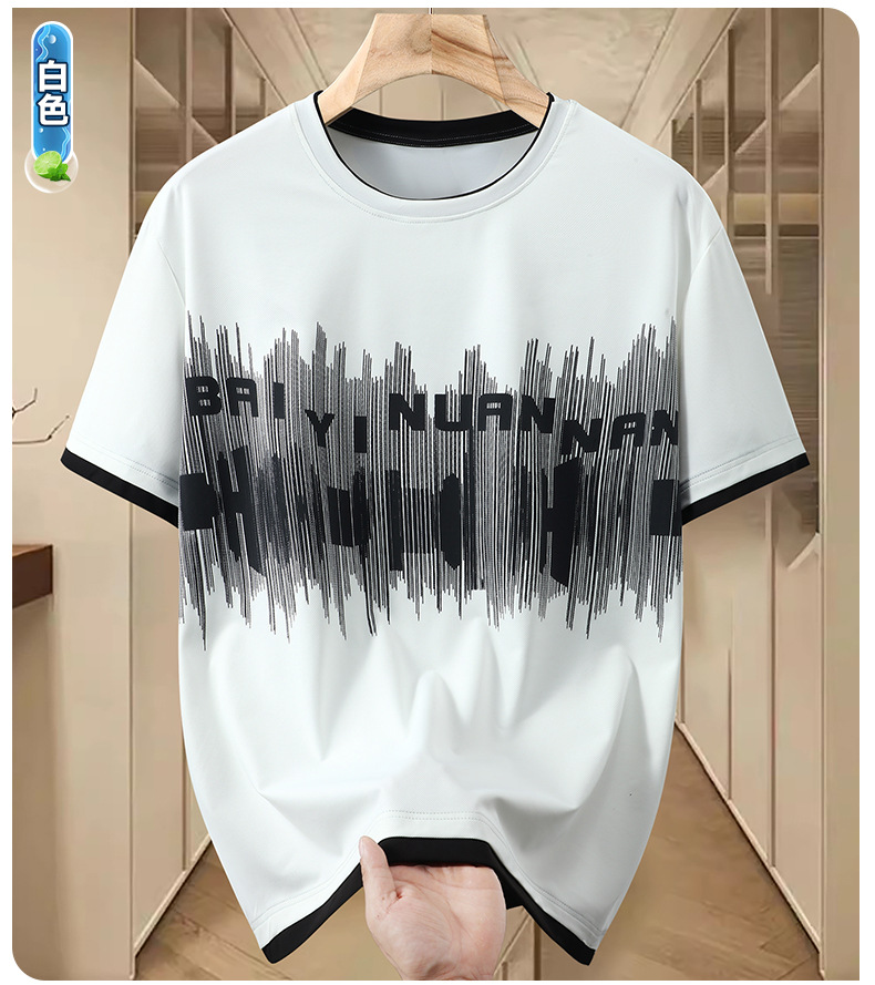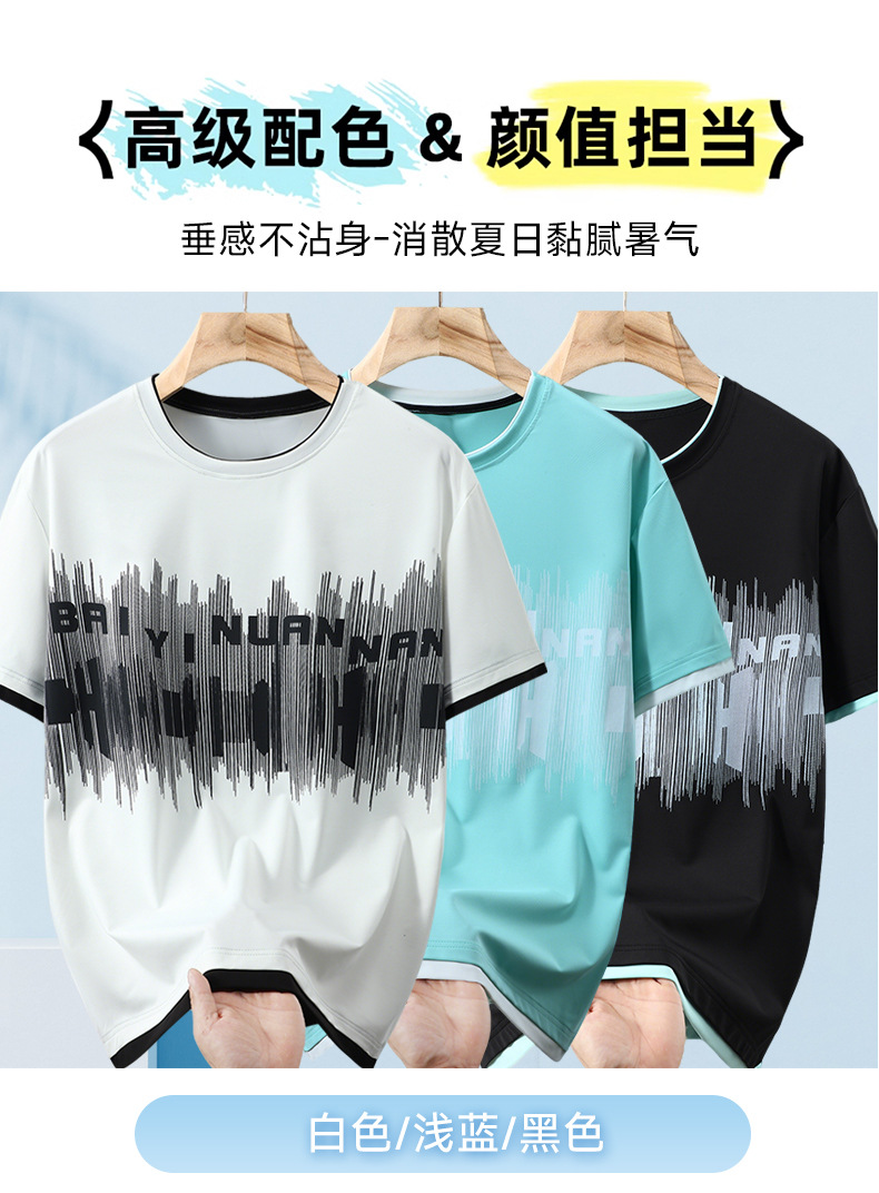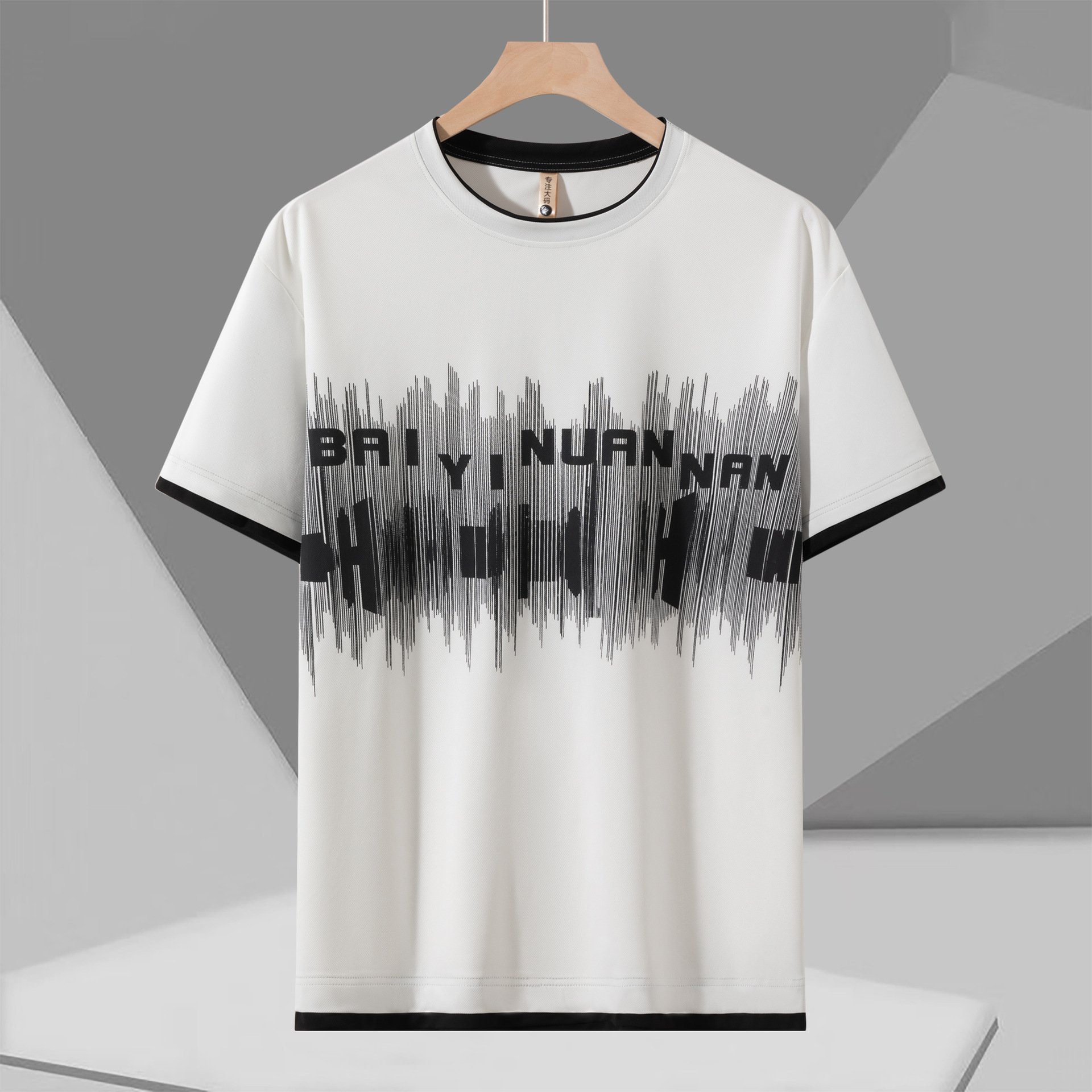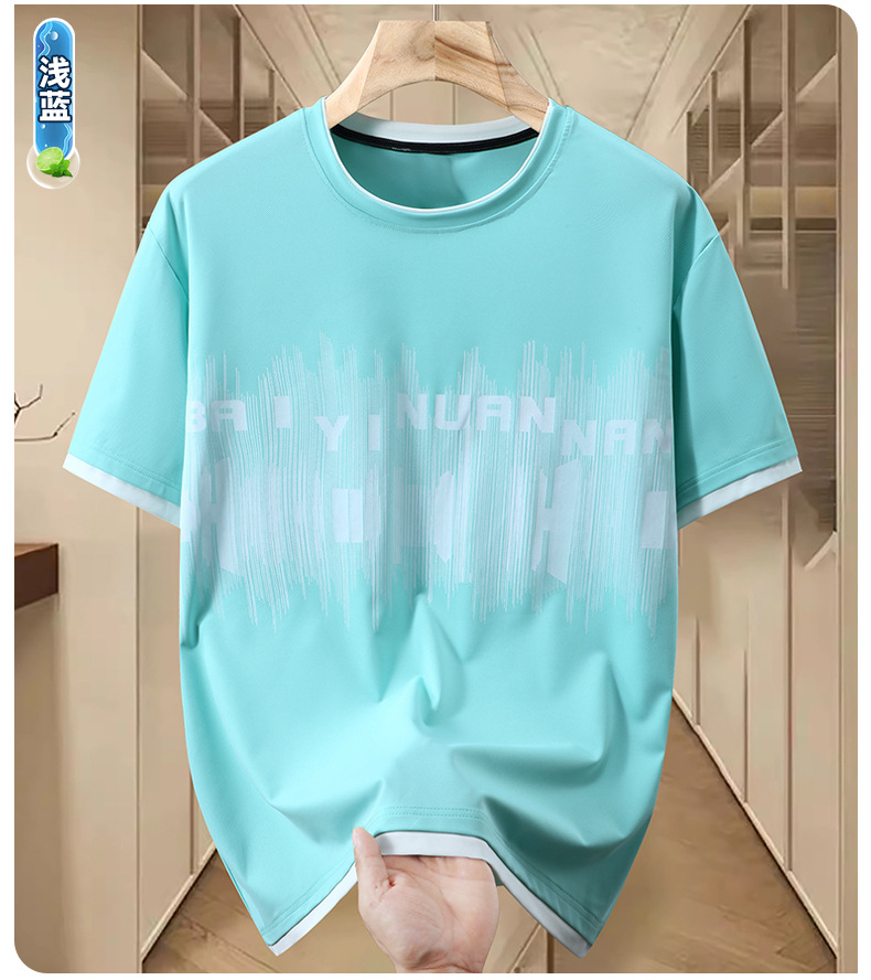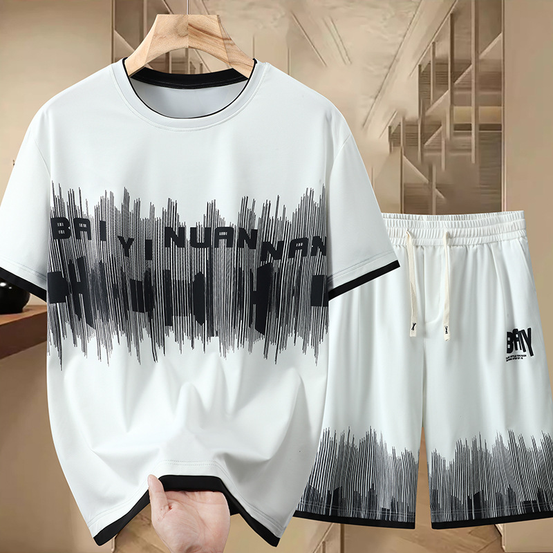 플러스 사이즈 플러스 사이즈 뚱뚱한 형제 가짜 두 조각 유행 둥근 목 인쇄 얇은 여름 캐주얼 스포츠 세트