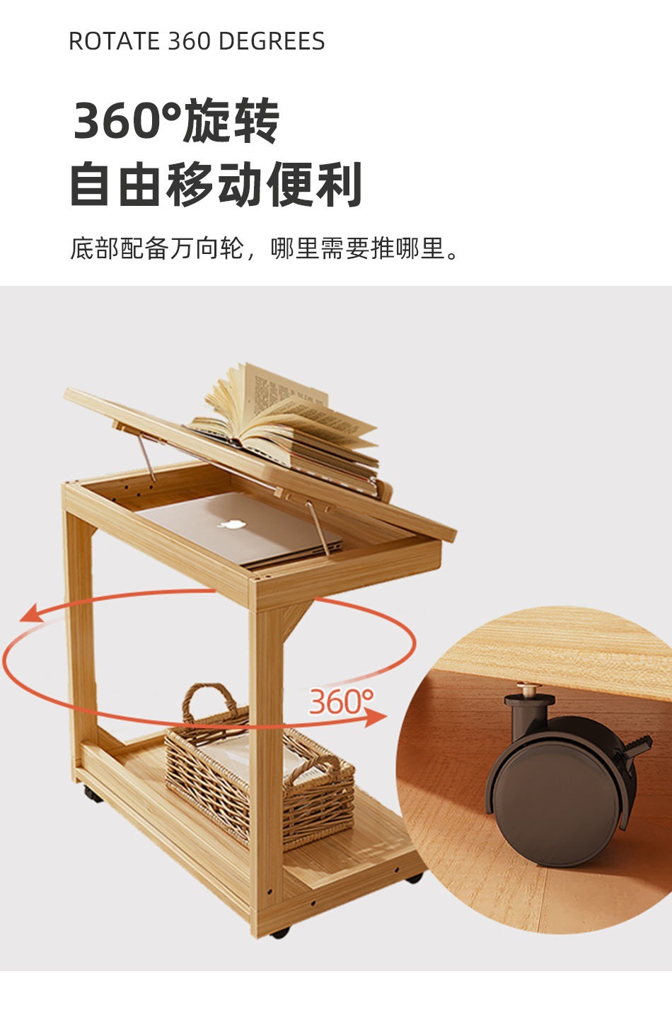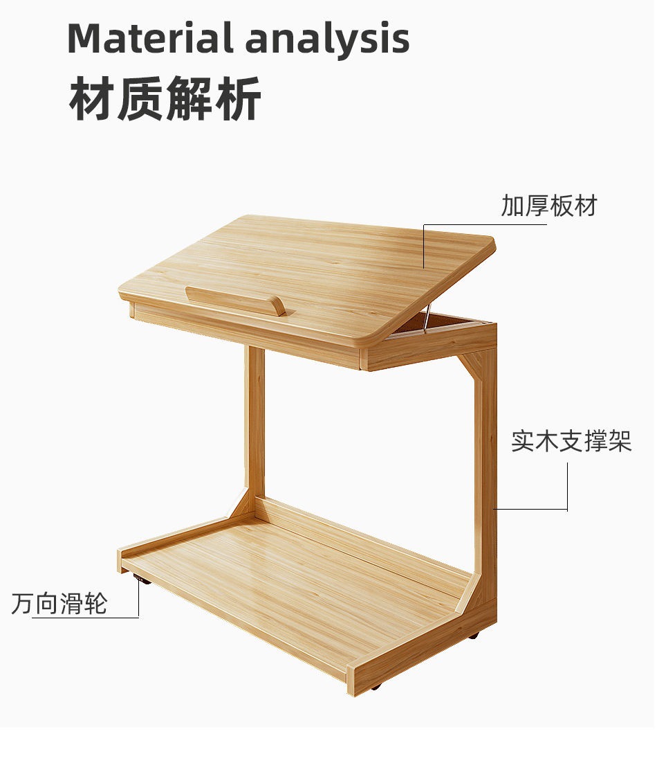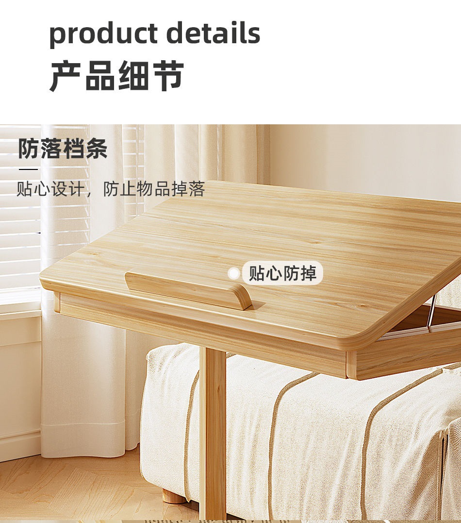 로그 스타일 작은 테이블 조정 가능한 플립 침대 옆 테이블 침실 거실 가정용 게으른 컴퓨터 테이블 발코니 작은 차 테이블