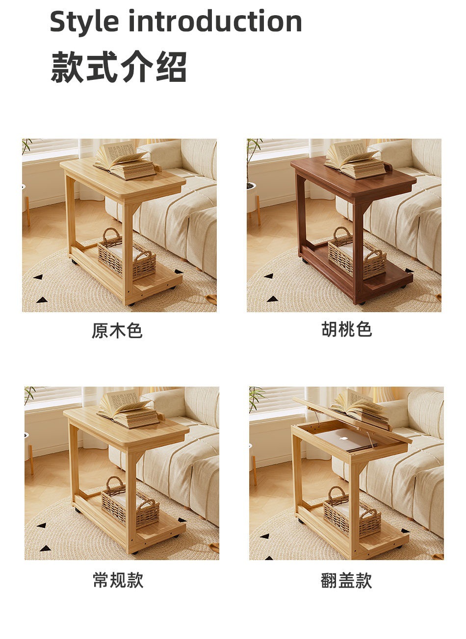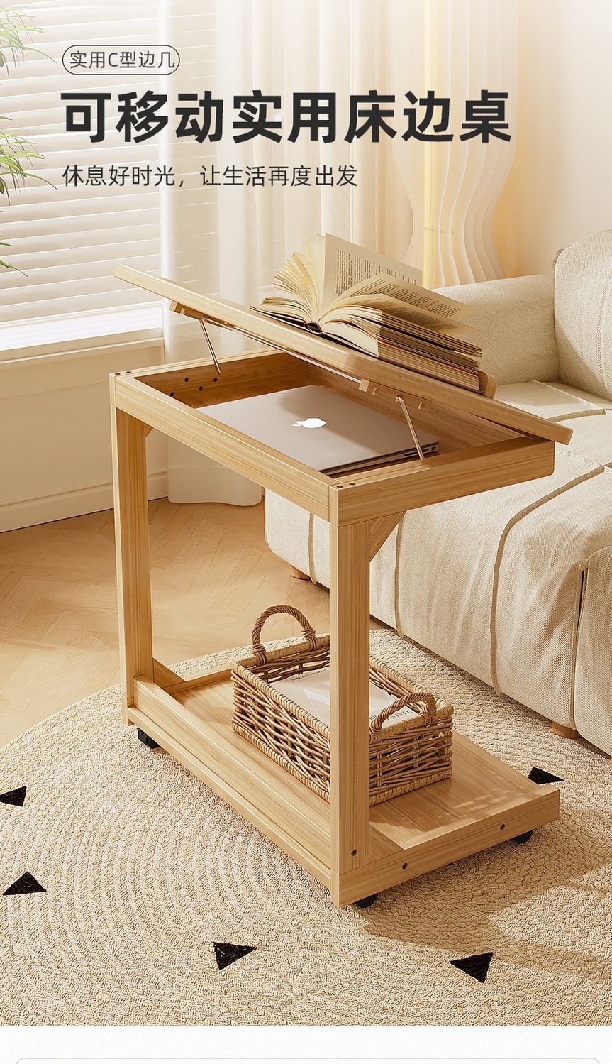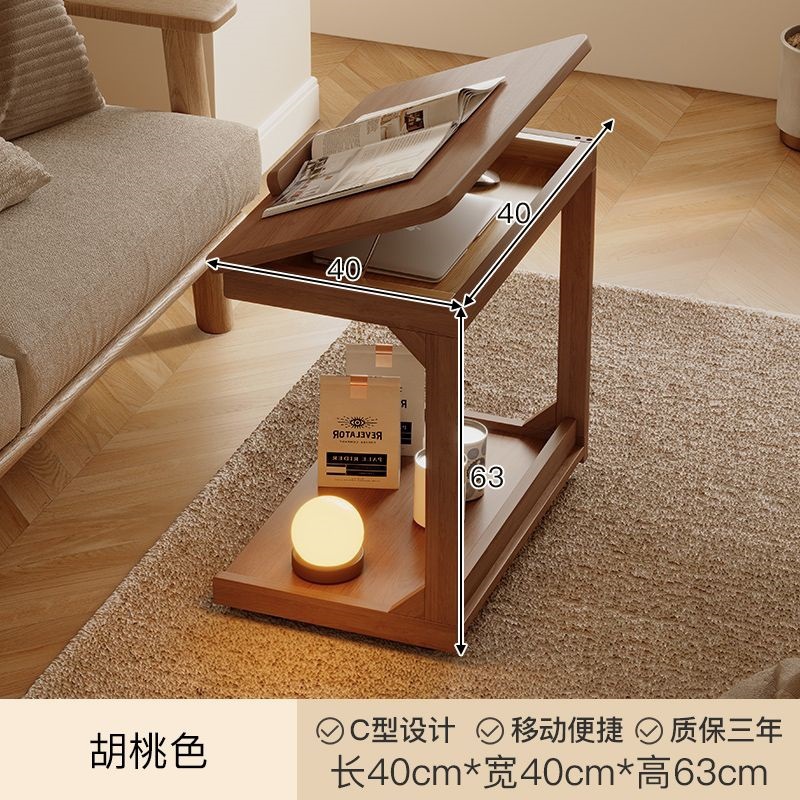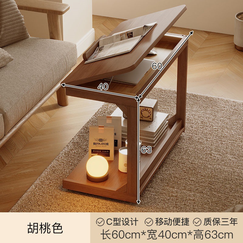 로그 스타일 작은 테이블 조정 가능한 플립 침대 옆 테이블 침실 거실 가정용 게으른 컴퓨터 테이블 발코니 작은 차 테이블스토어 가기