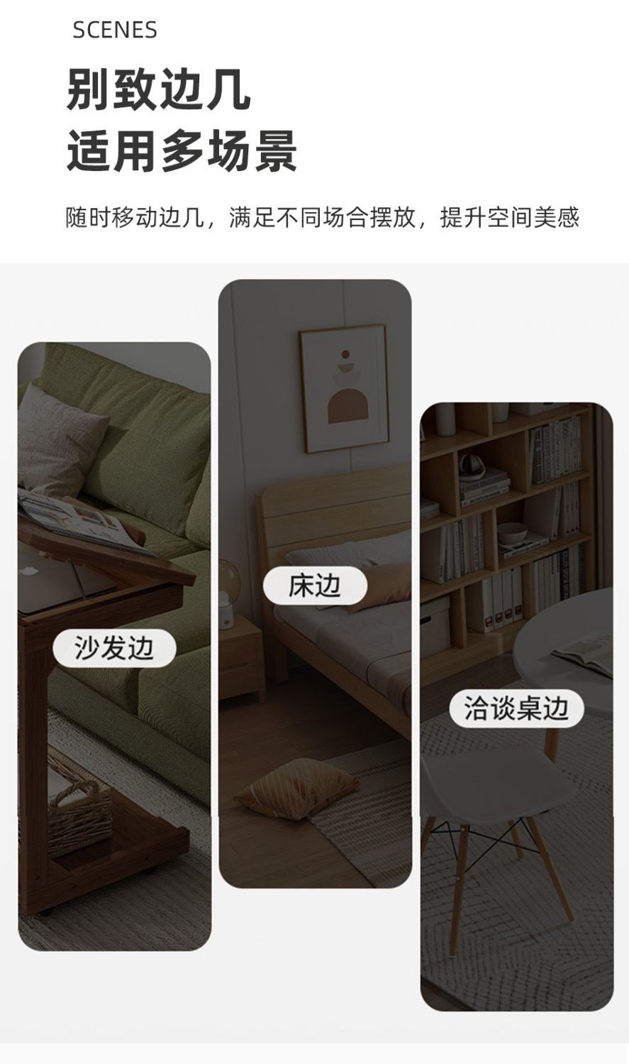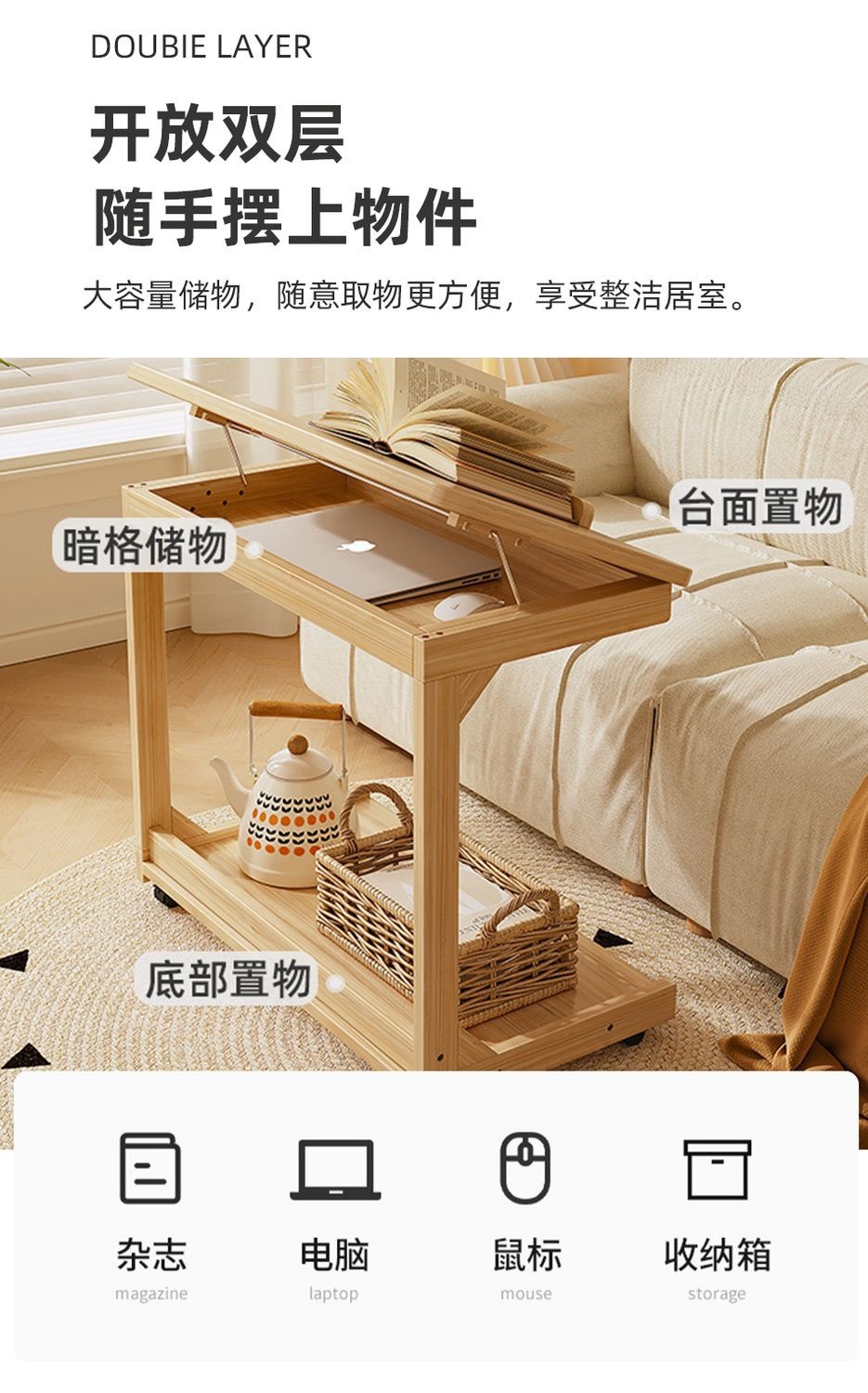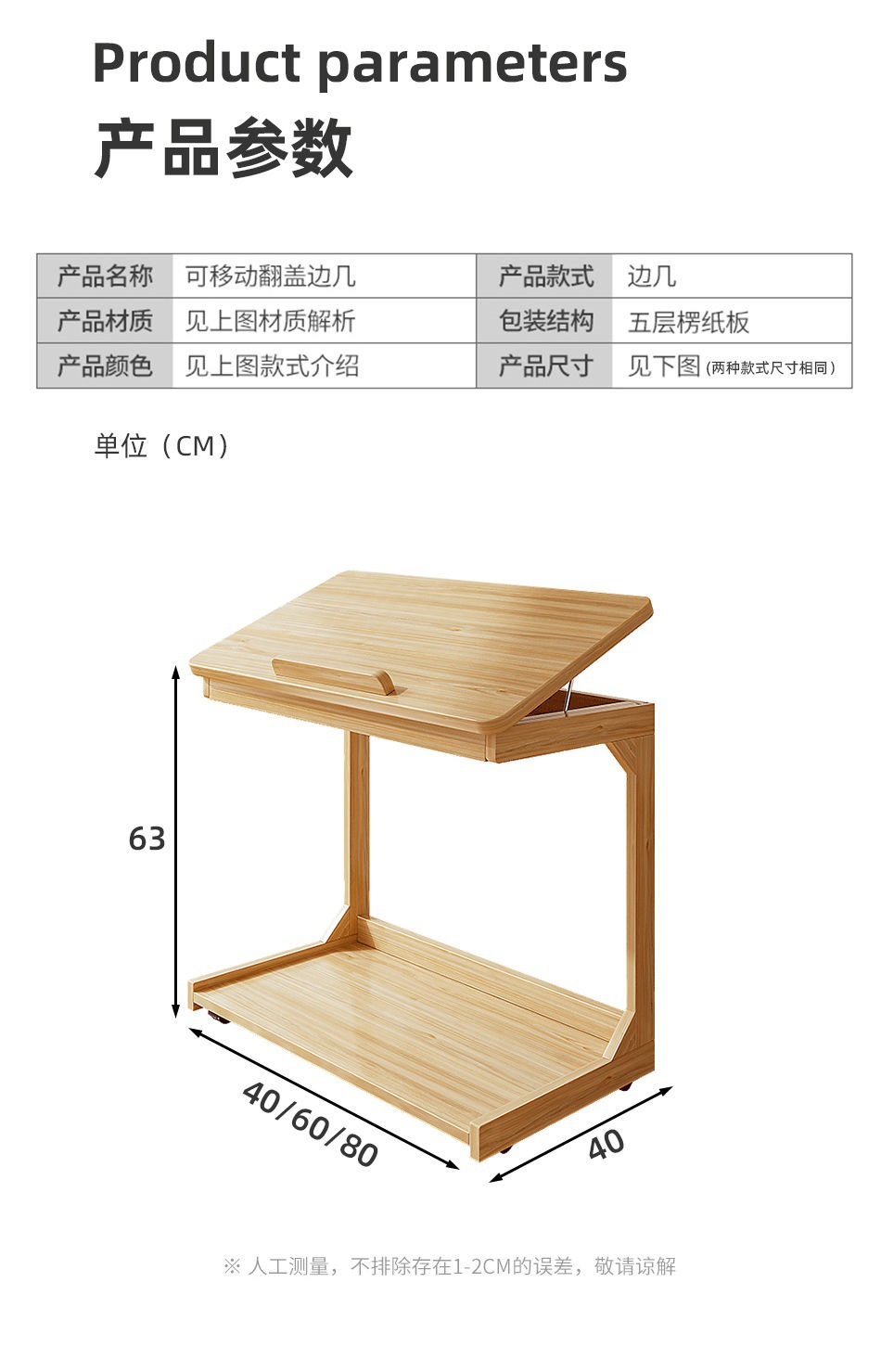 로그 스타일 작은 테이블 조정 가능한 플립 침대 옆 테이블 침실 거실 가정용 게으른 컴퓨터 테이블 발코니 작은 차 테이블스토어 가기