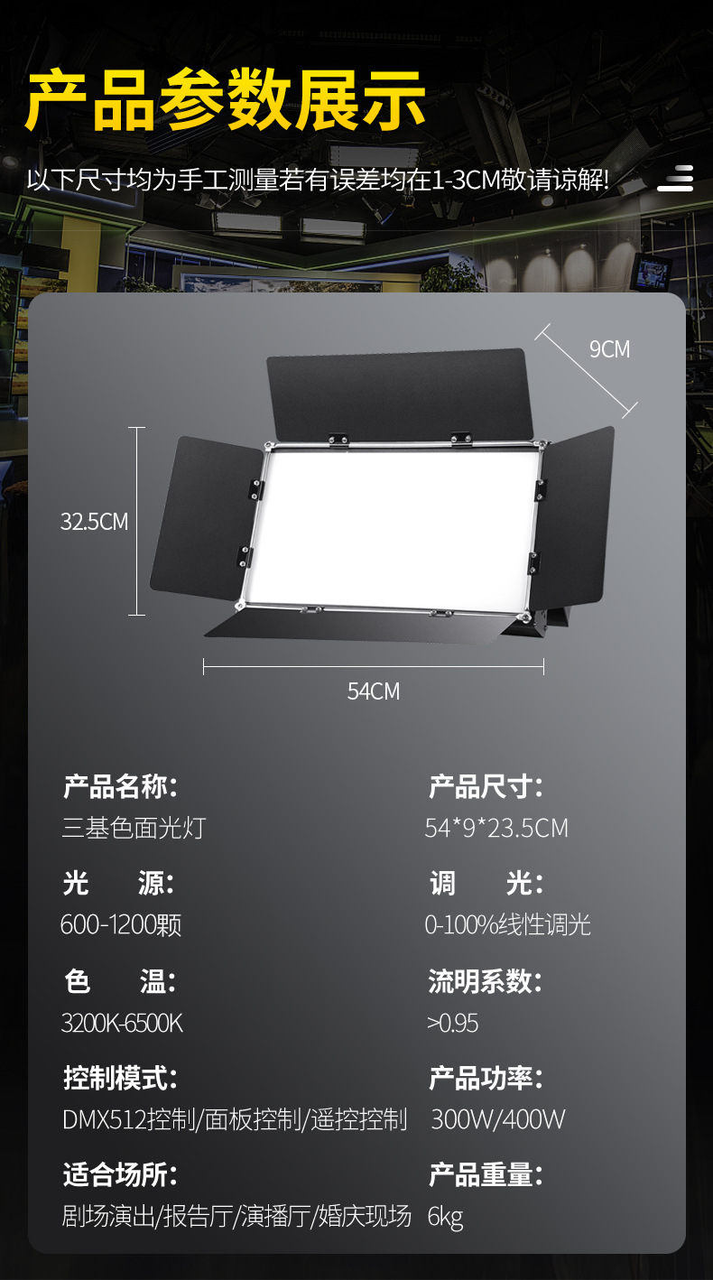 Jiechuang 무대 높은 CRI LED 3색 표면 조명 1200 플랫 패널 조명 라이브 공연 보조 조명 도매