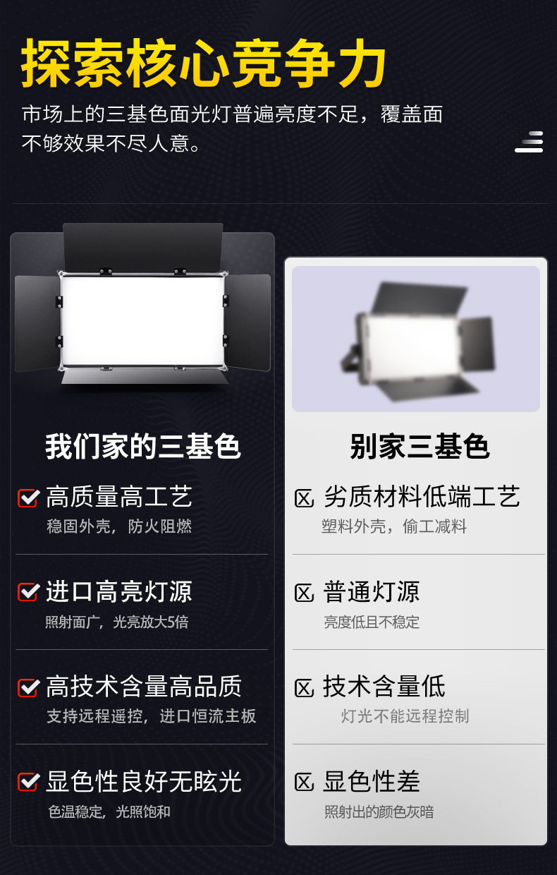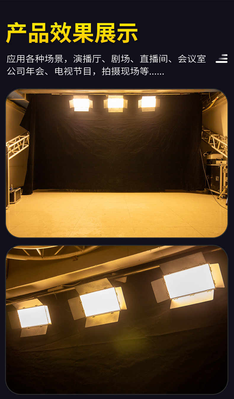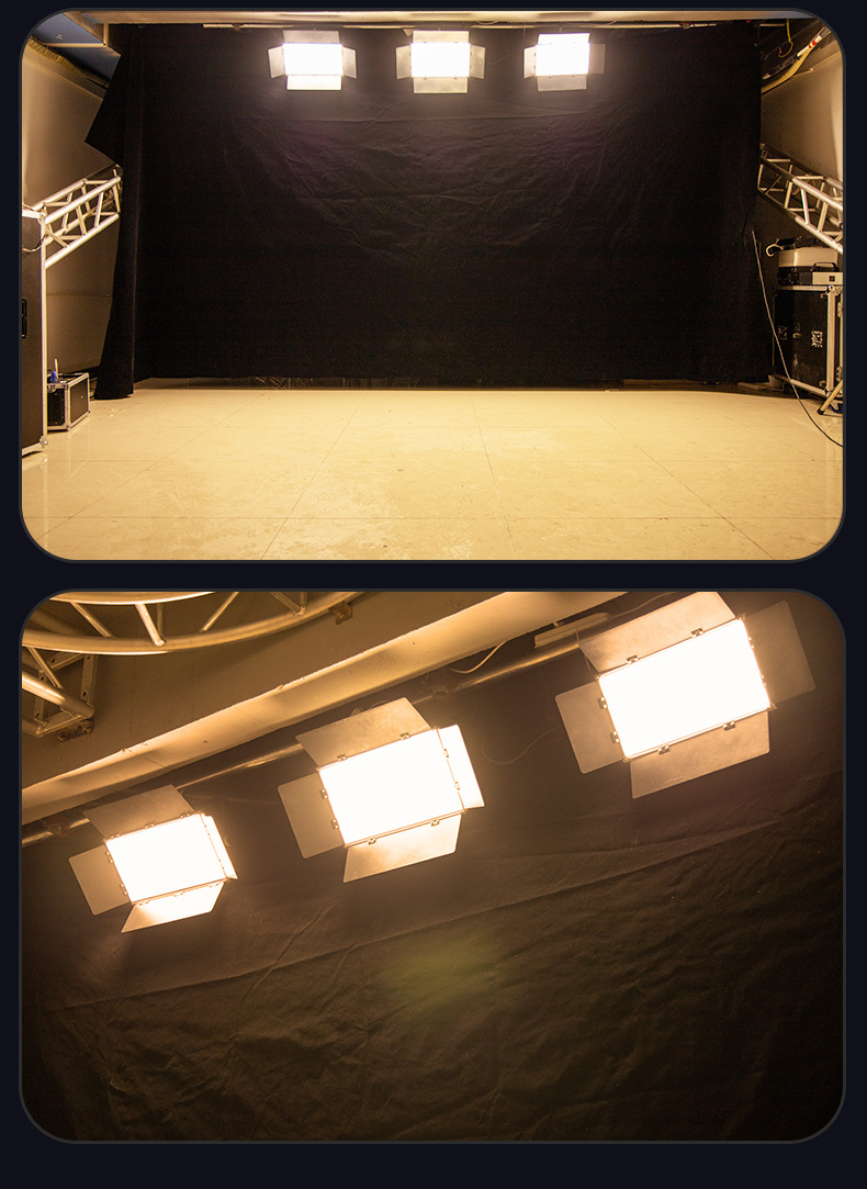 Jiechuang 무대 높은 CRI LED 3색 표면 조명 1200 플랫 패널 조명 라이브 공연 보조 조명 도매스토어 가기