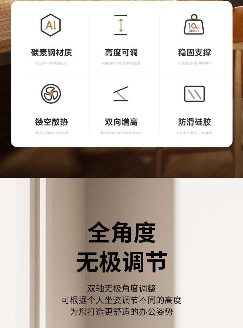 [특수 등급 탄소강] 노트북 컴퓨터 브래킷 알루미늄 합금 상승 랙 수직 냉각 사무실 접이식 상승 가능