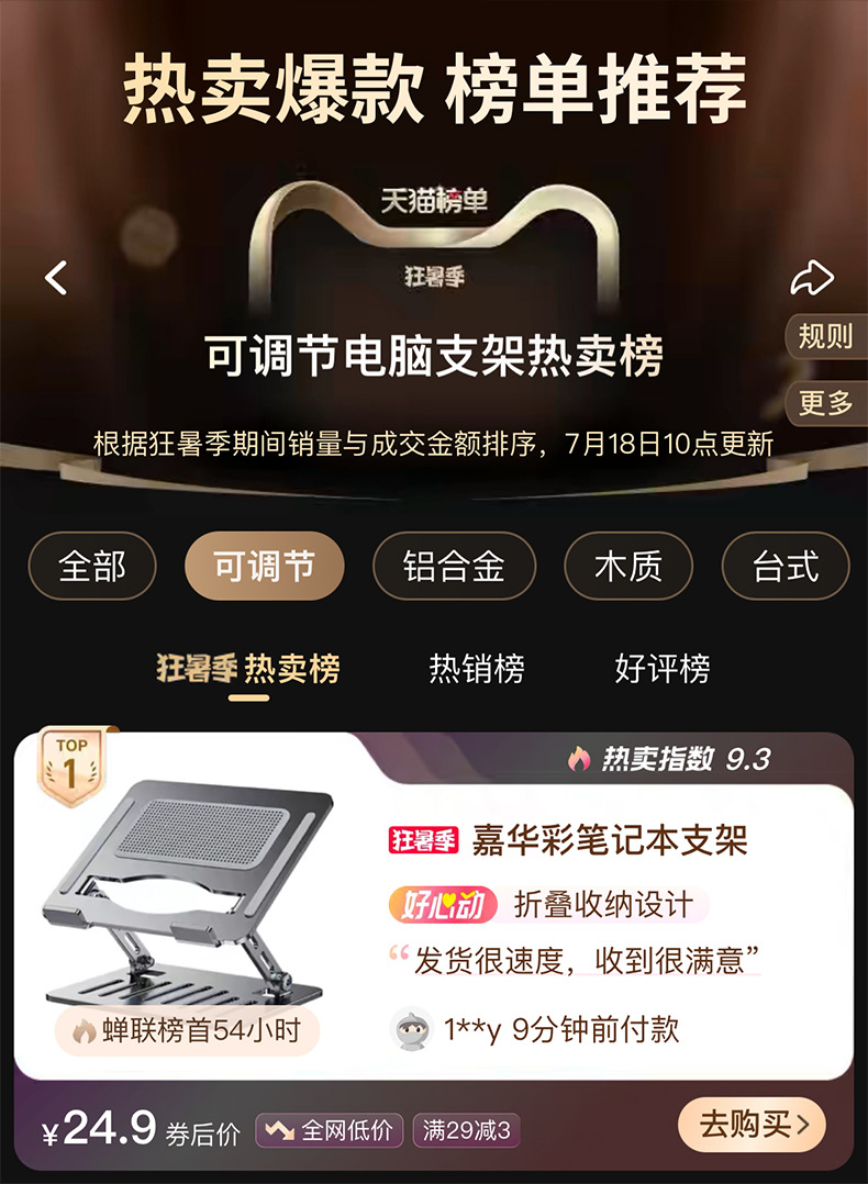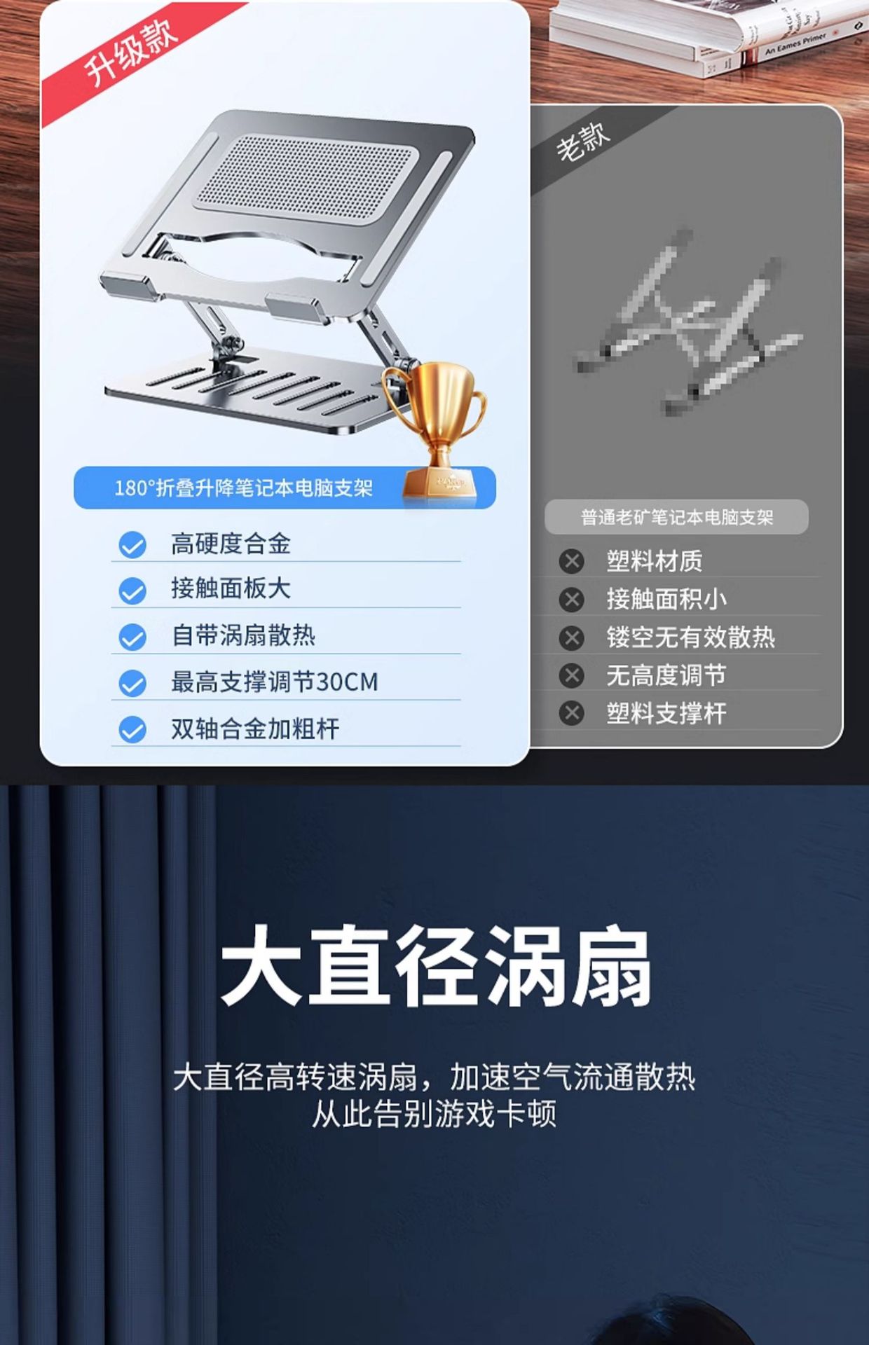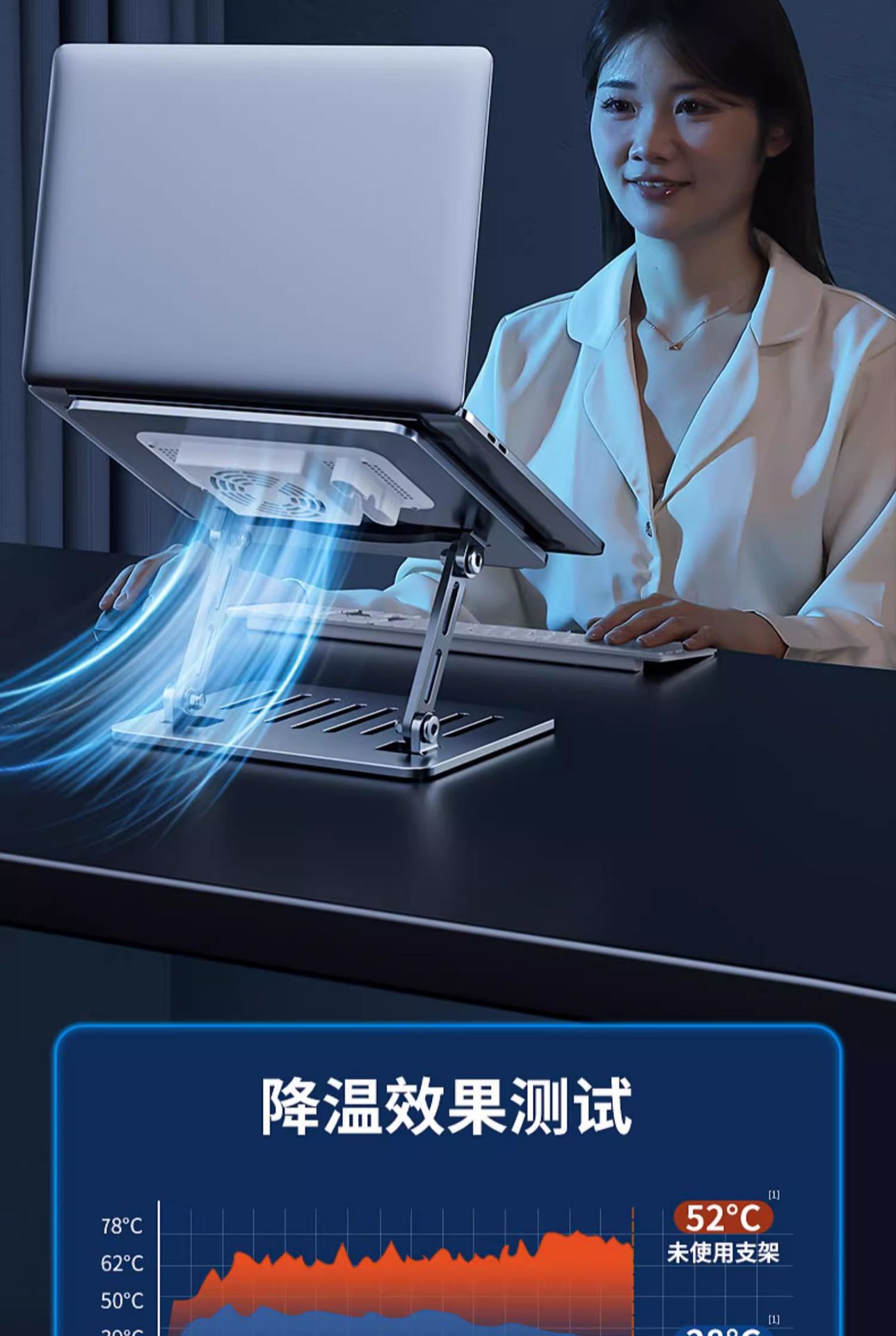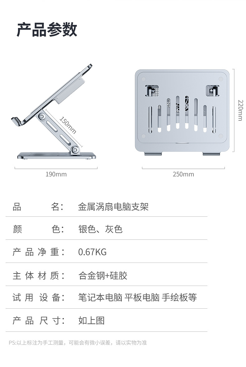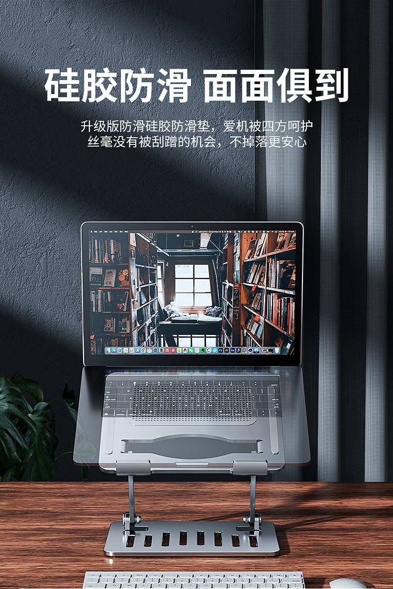 조용한 냉각] 라디에이터 리프팅 조정 가능한 엘리베이터 스탠드가있는 Jiahuacai 노트북 컴퓨터 브래킷스토어 가기