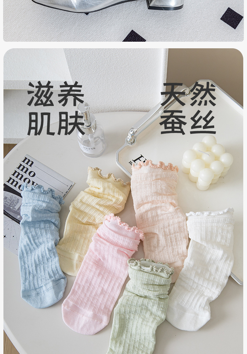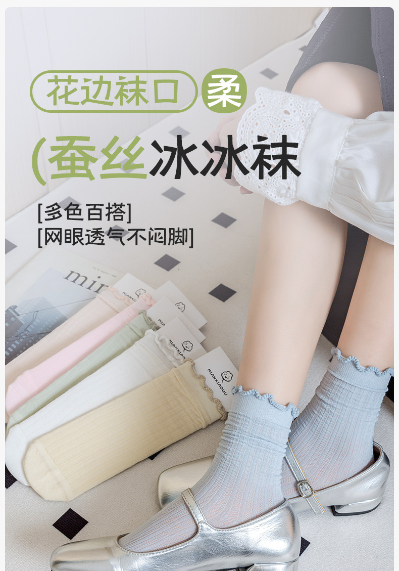 여름 여성용 멀버리 실크 쿨링 양말, 얇은 마이크로 압력 종아리 양말, 탈취 및 항균 푸른 화이트 아이스 스타킹스토어 가기