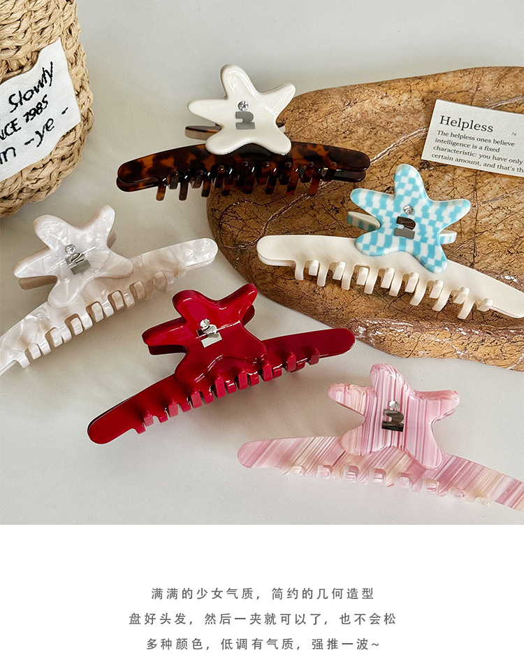 앙골라 레드 화이트닝 13cm 대형 아세테이트 헤어클립 여성용 샤크클립 헤어 액세서리 고급 여성용 집게핀 장식품스토어 가기