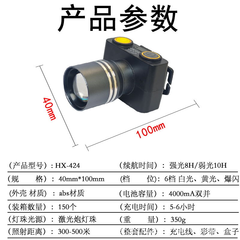 • HX-424(双锂电池双光源伸缩头灯)