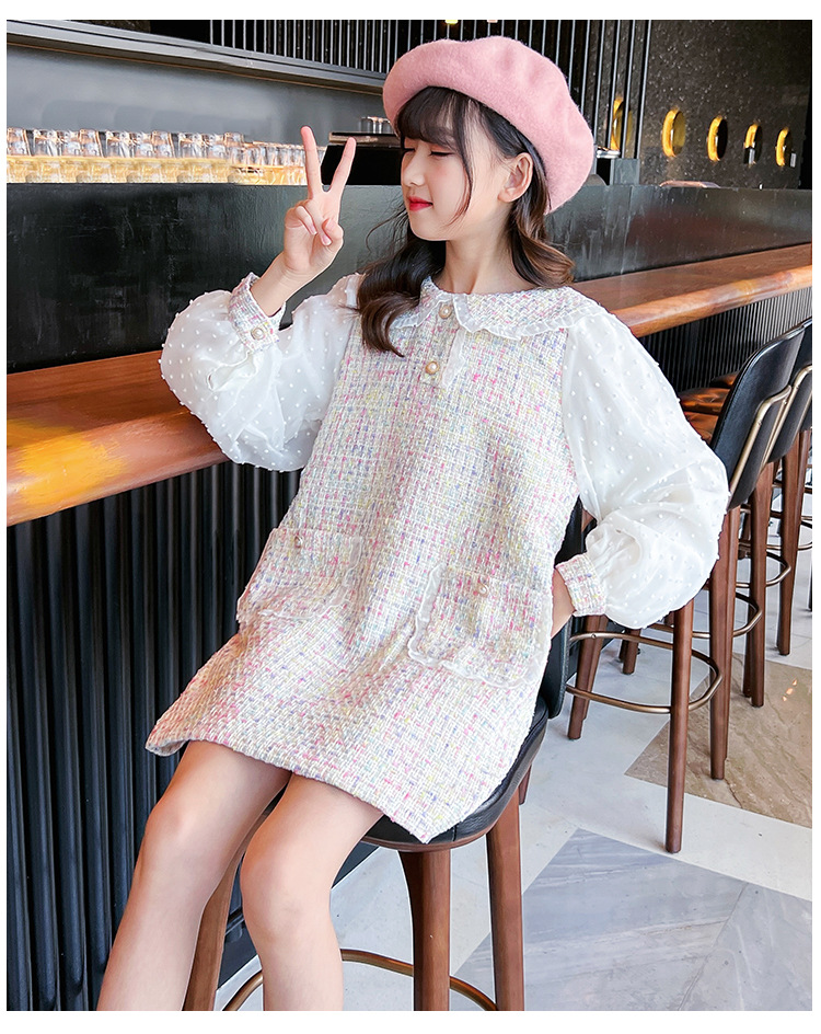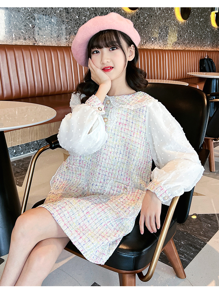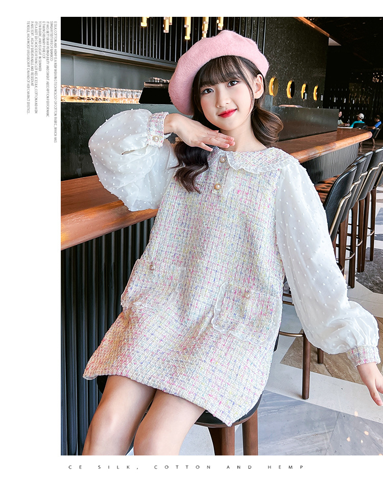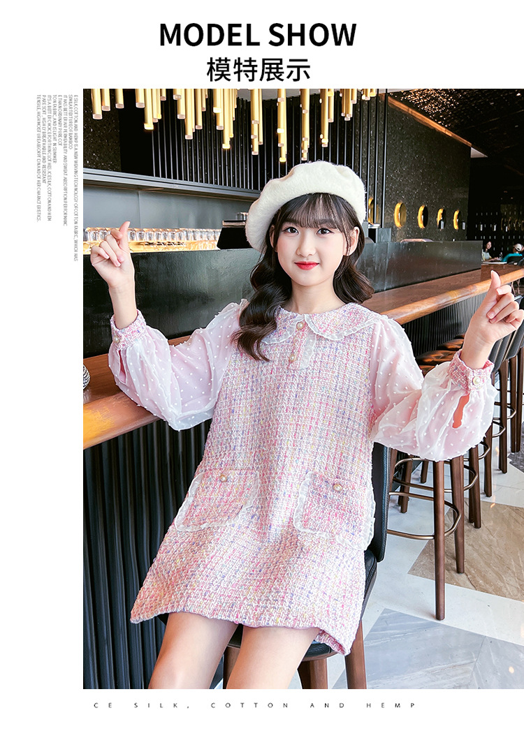 여자 드레스 가을 새로운 스타일 유행 소녀 작은 향기 공주 드레스 어린이 봄, 가을 긴팔 인형 칼라 스커트스토어 가기