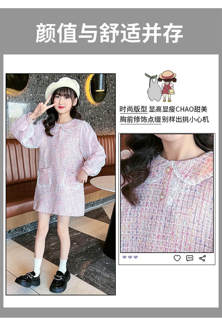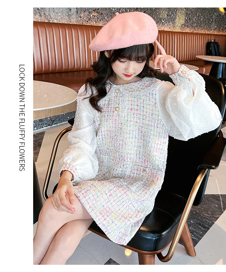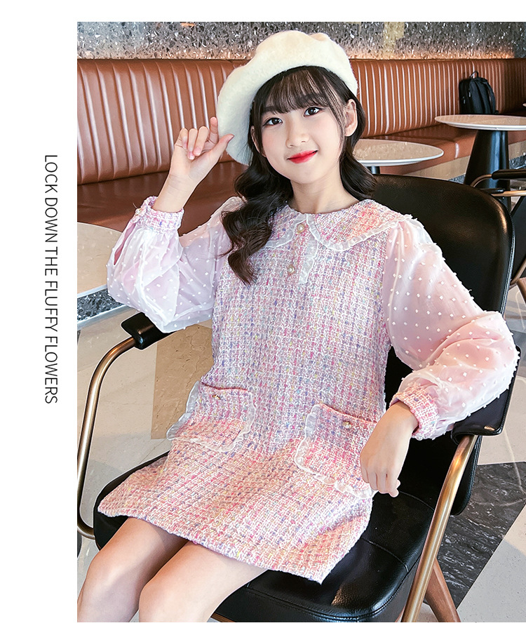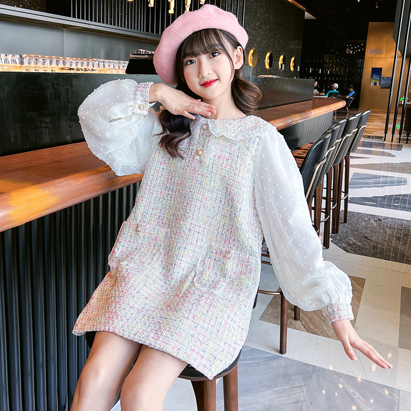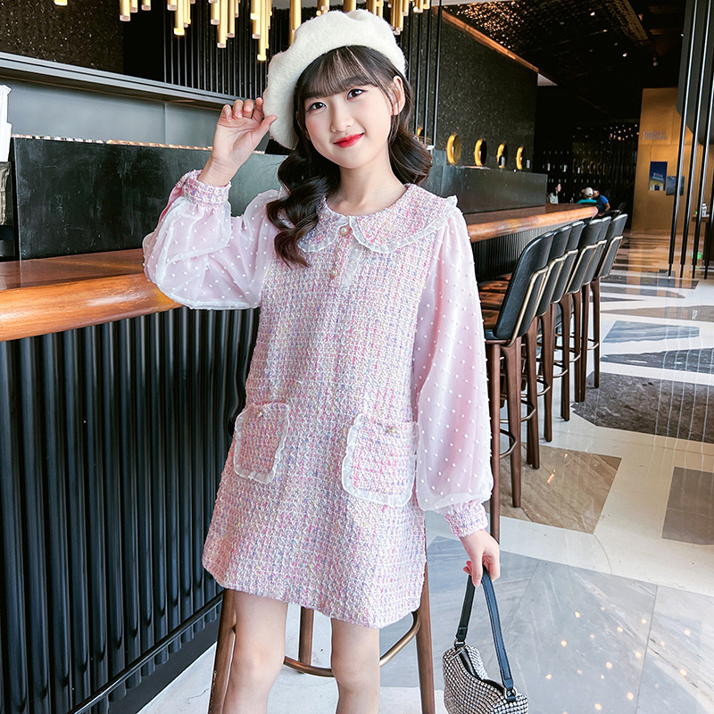 여자 드레스 가을 새로운 스타일 유행 소녀 작은 향기 공주 드레스 어린이 봄, 가을 긴팔 인형 칼라 스커트스토어 가기