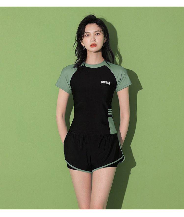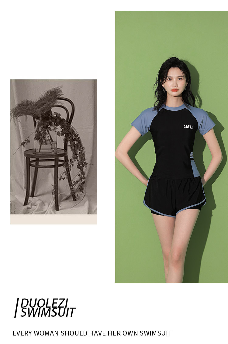 스플릿 수영복 여성 2025 신형 하이 엔드 반팔 보수 스포츠 서핑 학생 투피스 온천 수영복