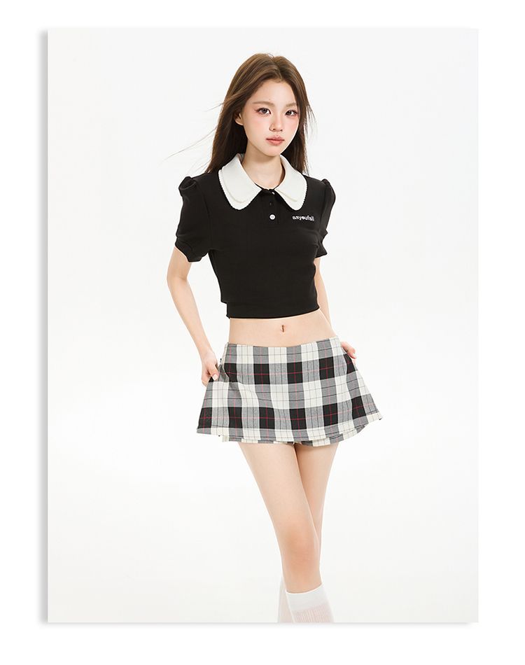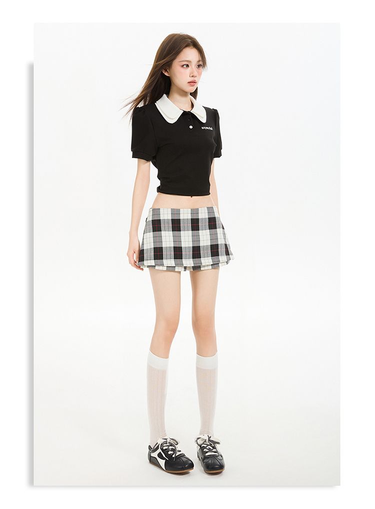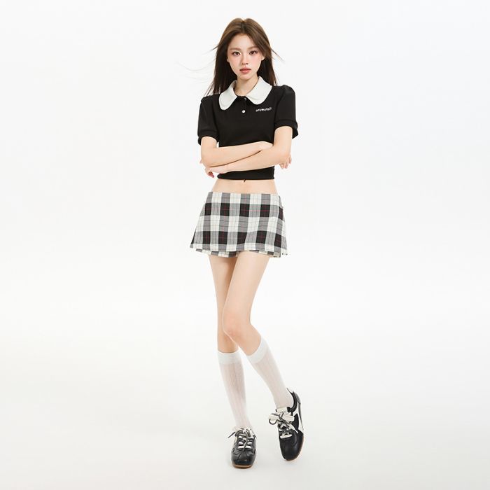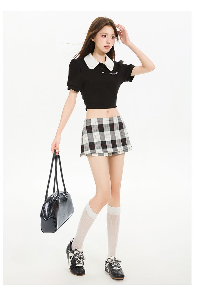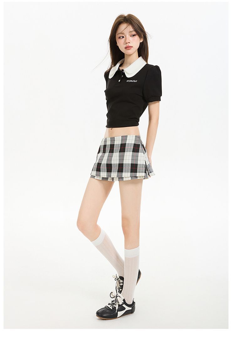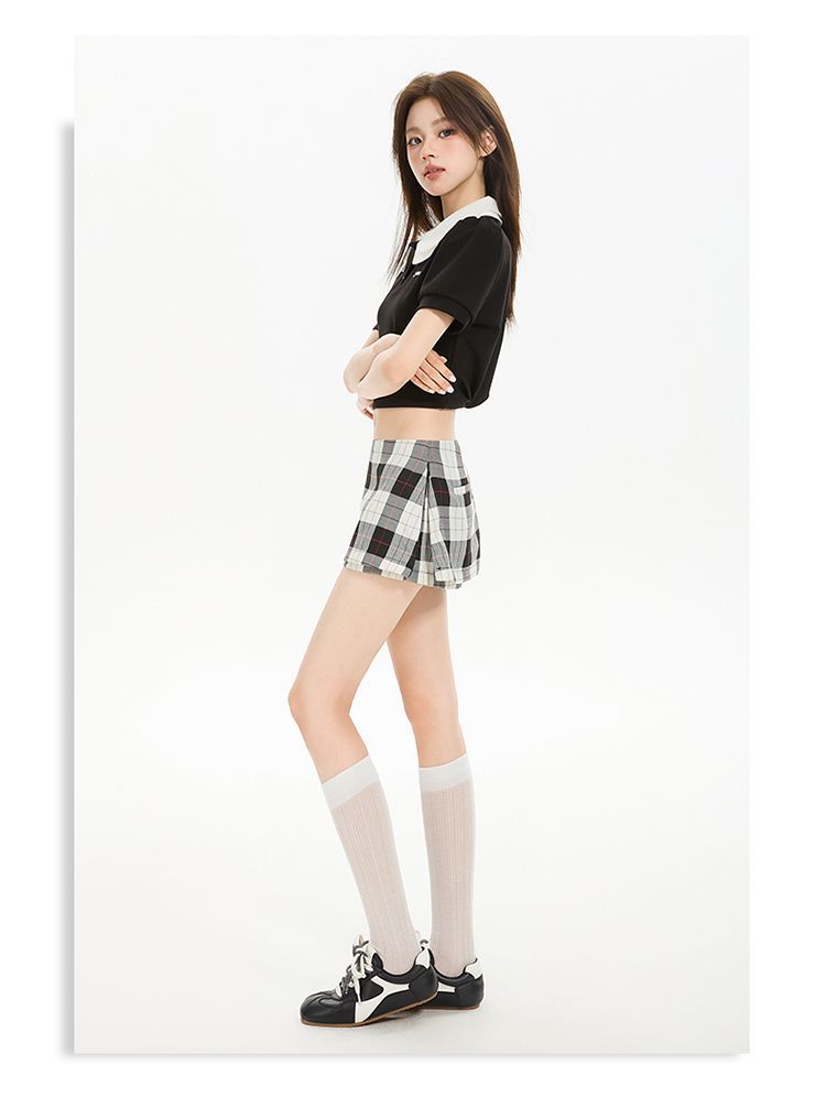 2025 새로운 여름 스타일 사이드 지퍼 투웨어 미니 스커트 바지 흑백 격자 무늬 A 라인 반바지 스커트 여성 힙 스커트
