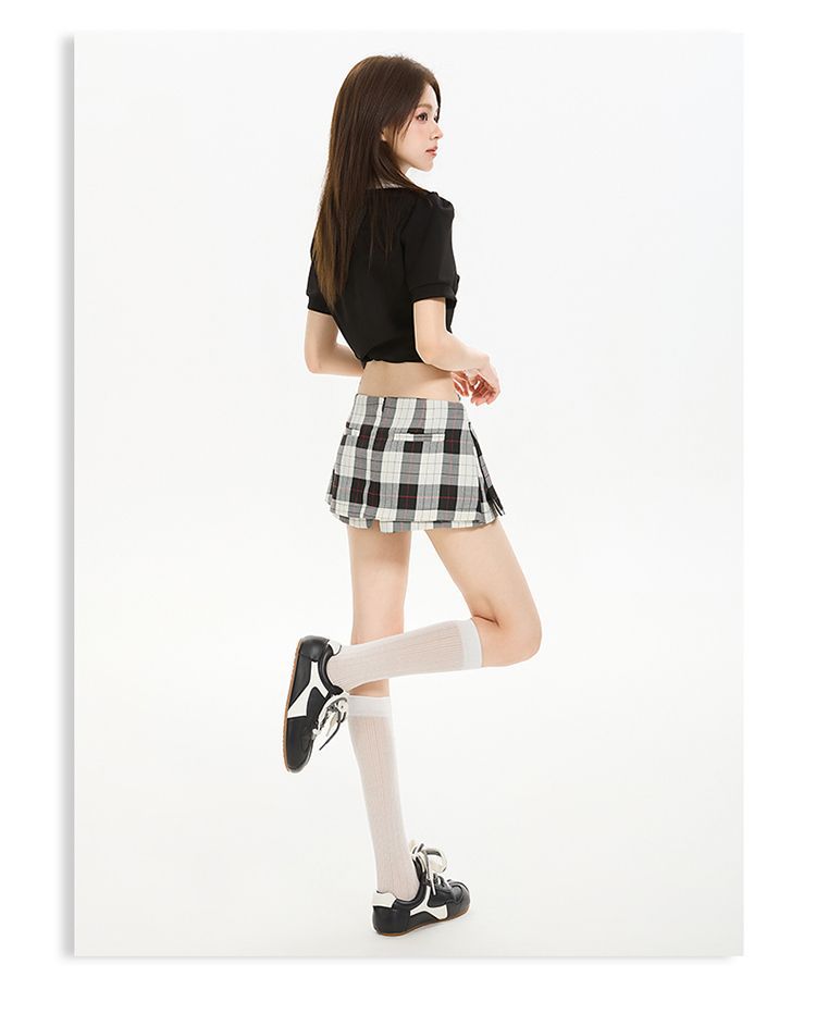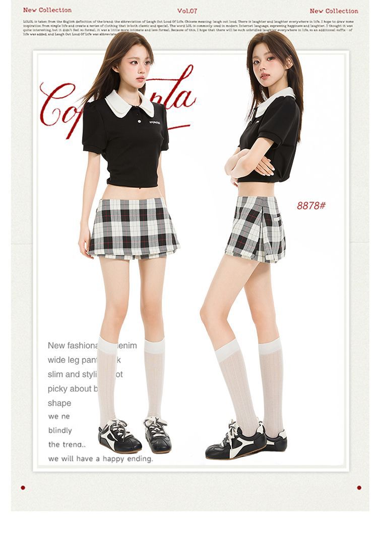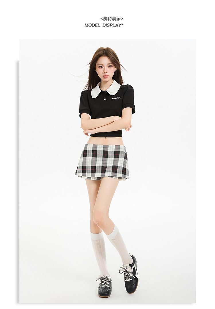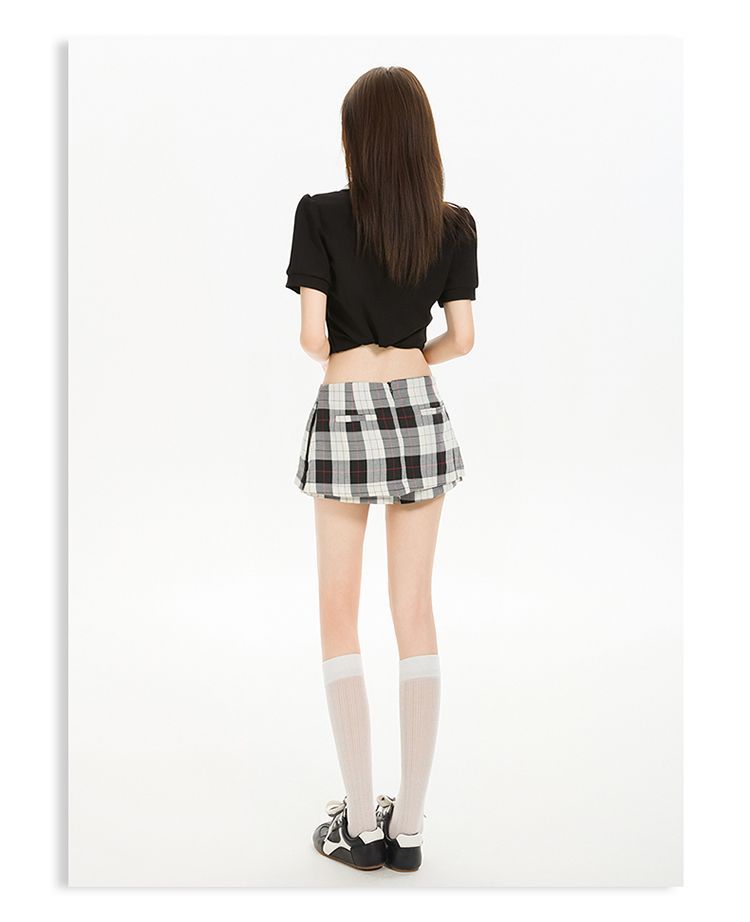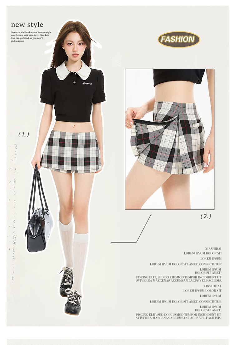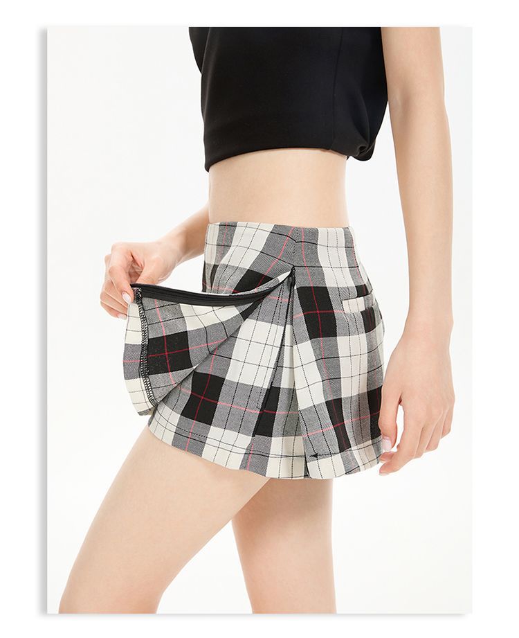 2025 새로운 여름 스타일 사이드 지퍼 투웨어 미니 스커트 바지 흑백 격자 무늬 A 라인 반바지 스커트 여성 힙 스커트스토어 가기