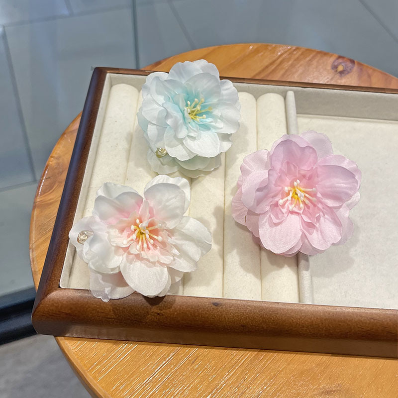 봄 그라데이션 라이트 핑크 벚꽃 머리핀 달콤한 사이드 머리핀 시뮬레이션 꽃 분위기 사진 머리 장식 여성용 헤어 액세서리
