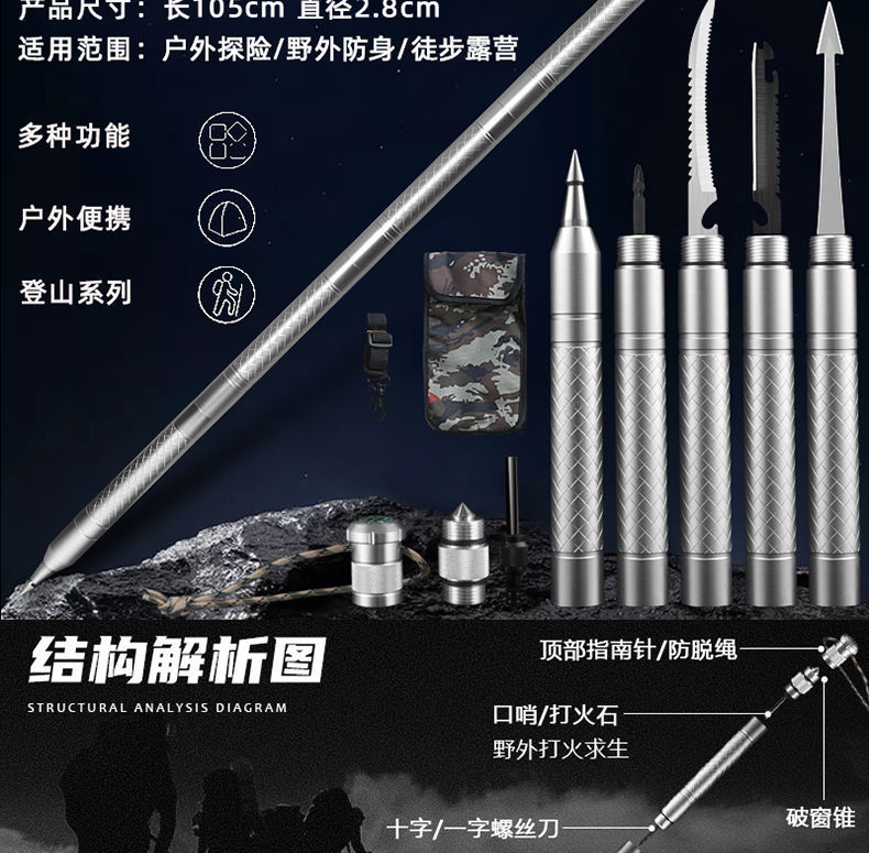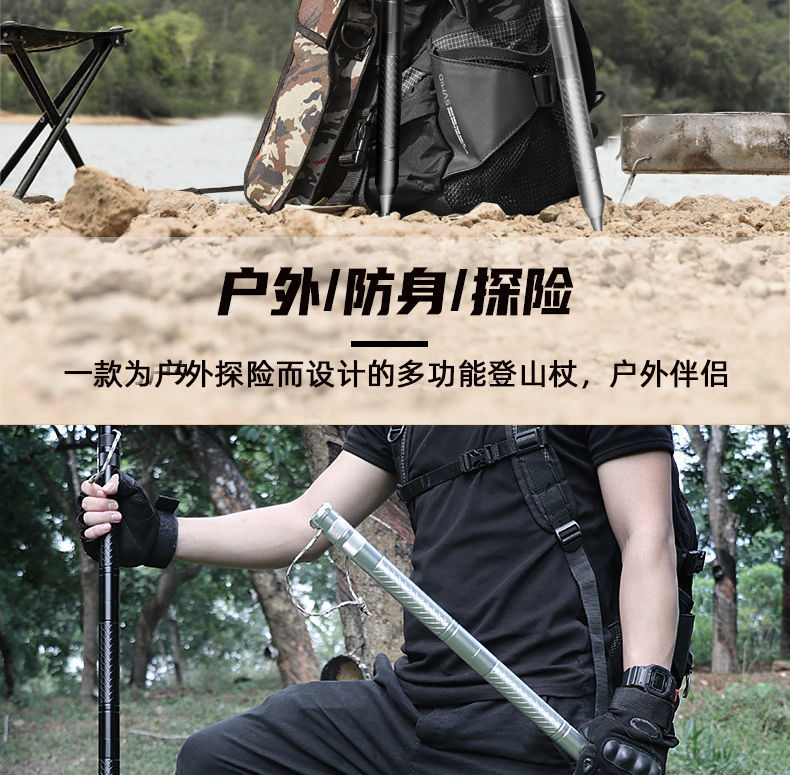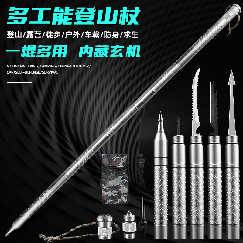 트레킹 스틱, 다기능 야외 용품, 등산 조합 지팡이, 자기 방어 전술 스틱, 야외 생존 하이킹 도매스토어 가기