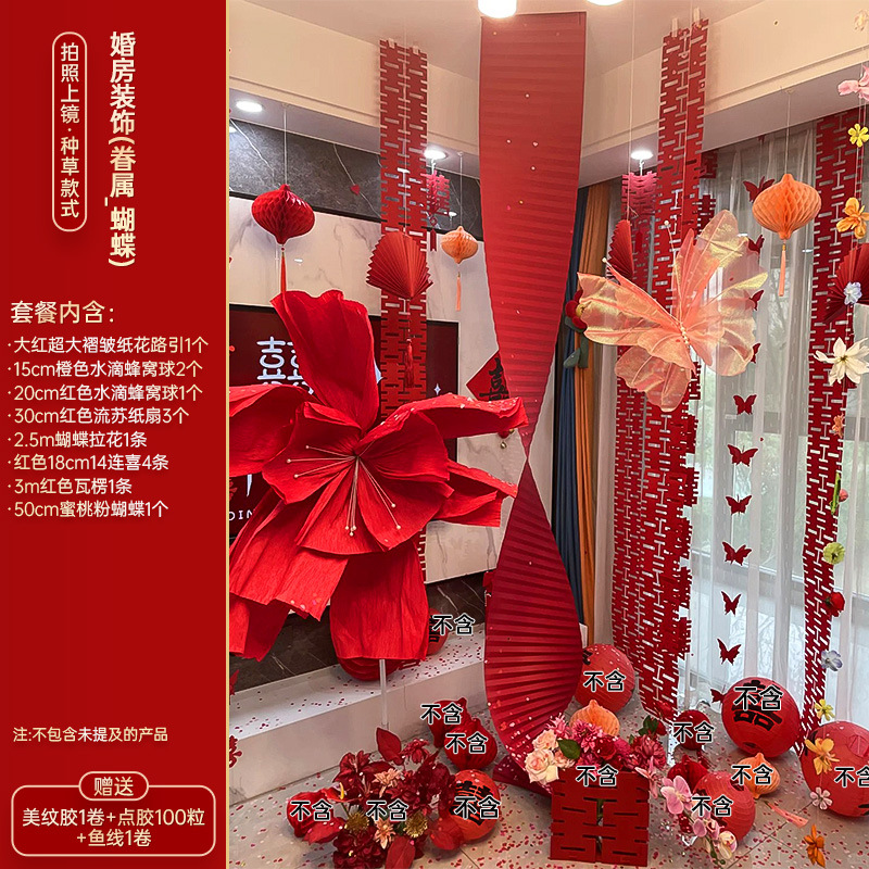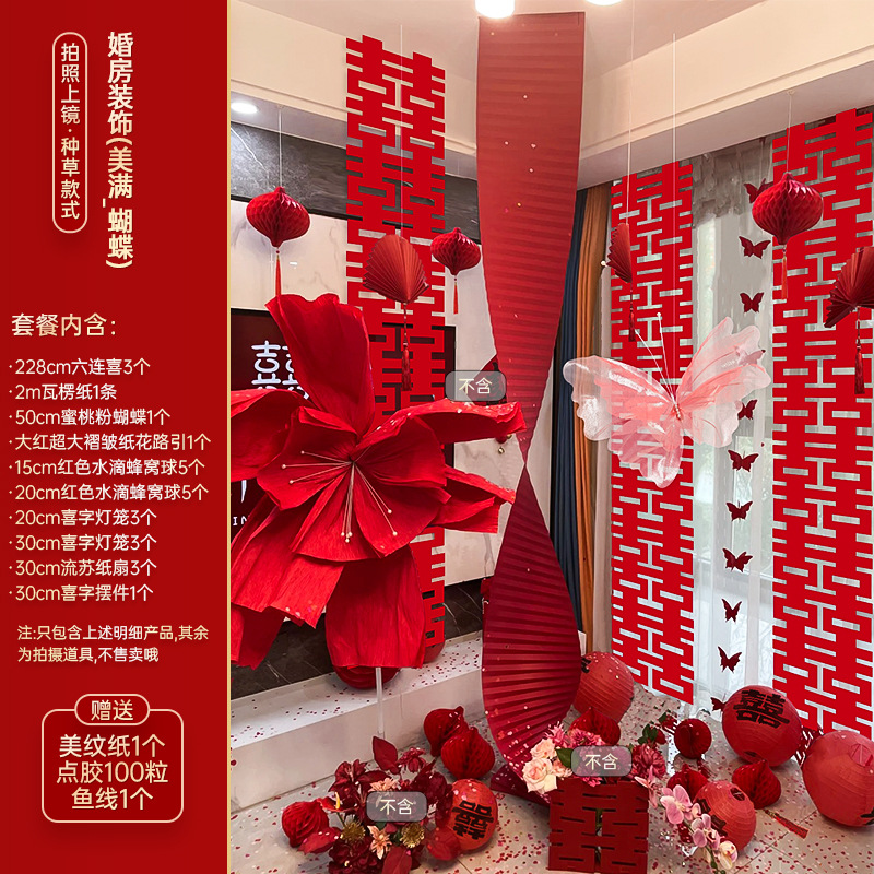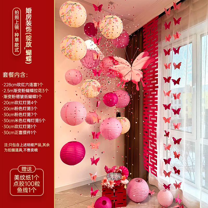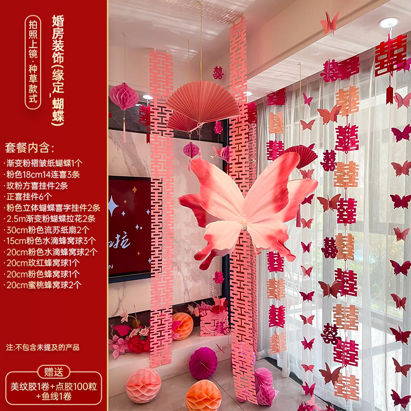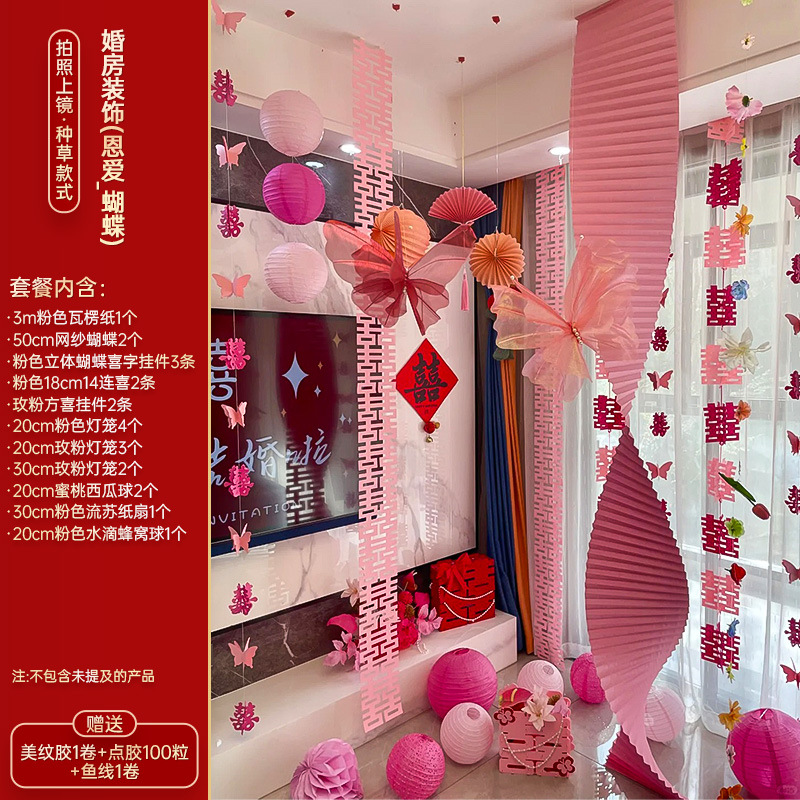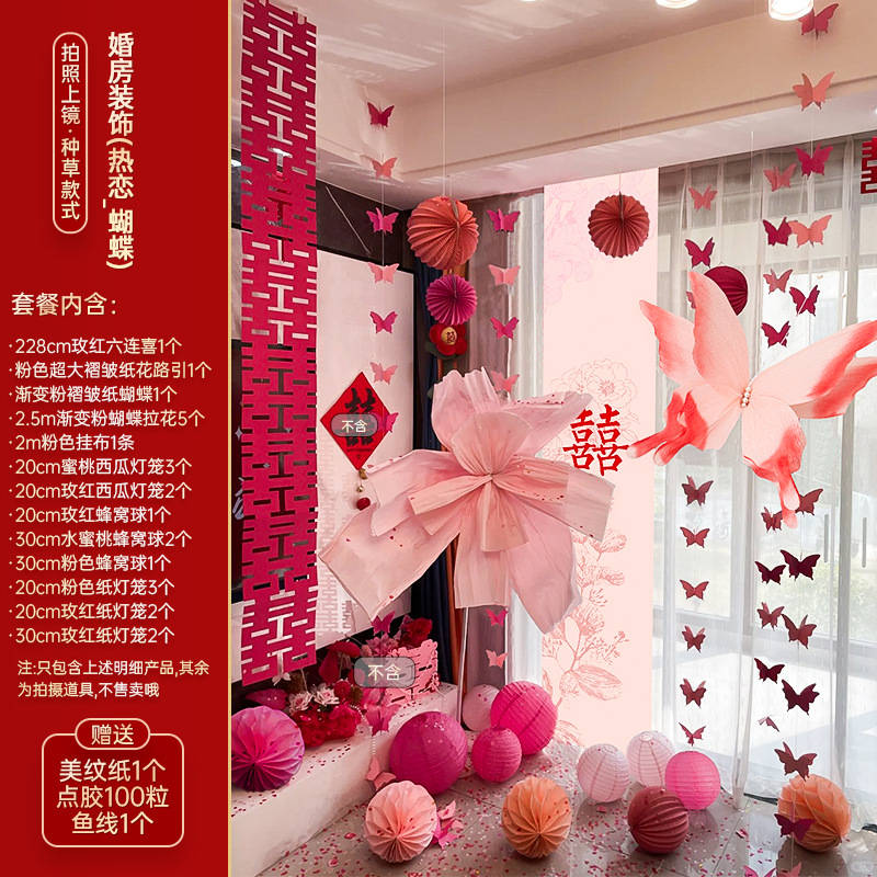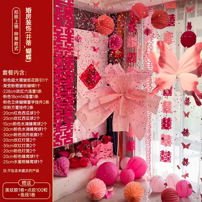 小红书同款婚房布置套装小红书同款结婚装扮大全小红书同款热销婚庆用品大全套装婚房布置套装结婚礼新房装饰女方客厅卧室晨袍拍照背景墙蝴蝶拉花婚房布置套装结婚装饰男女方卧室客厅订婚礼用品窗帘拉花蝴蝶喜字