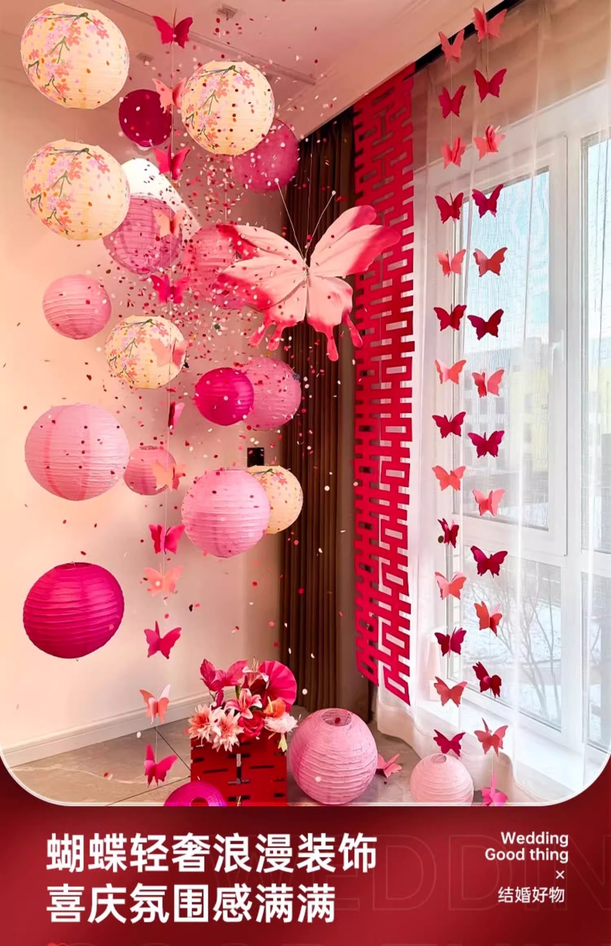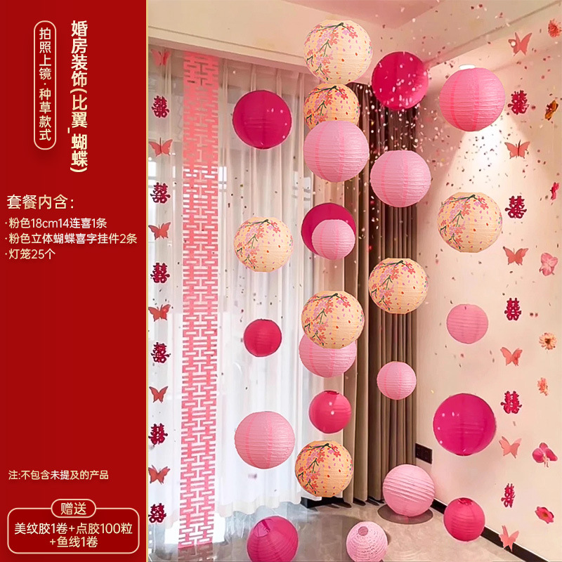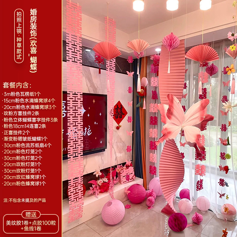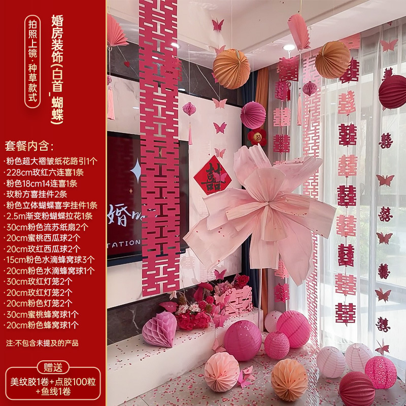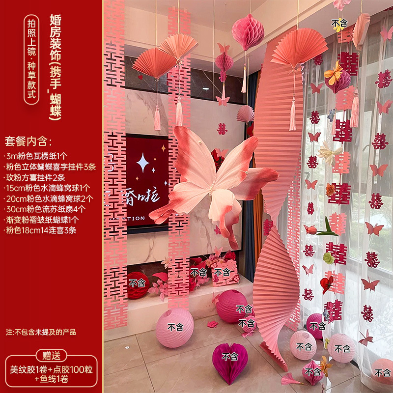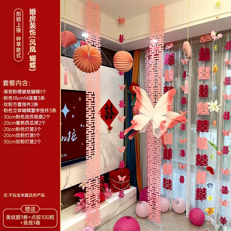 小红书同款婚房布置套装小红书同款结婚装扮大全小红书同款热销婚庆用品大全套装婚房布置套装结婚礼新房装饰女方客厅卧室晨袍拍照背景墙蝴蝶拉花婚房布置套装结婚装饰男女方卧室客厅订婚礼用品窗帘拉花蝴蝶喜字