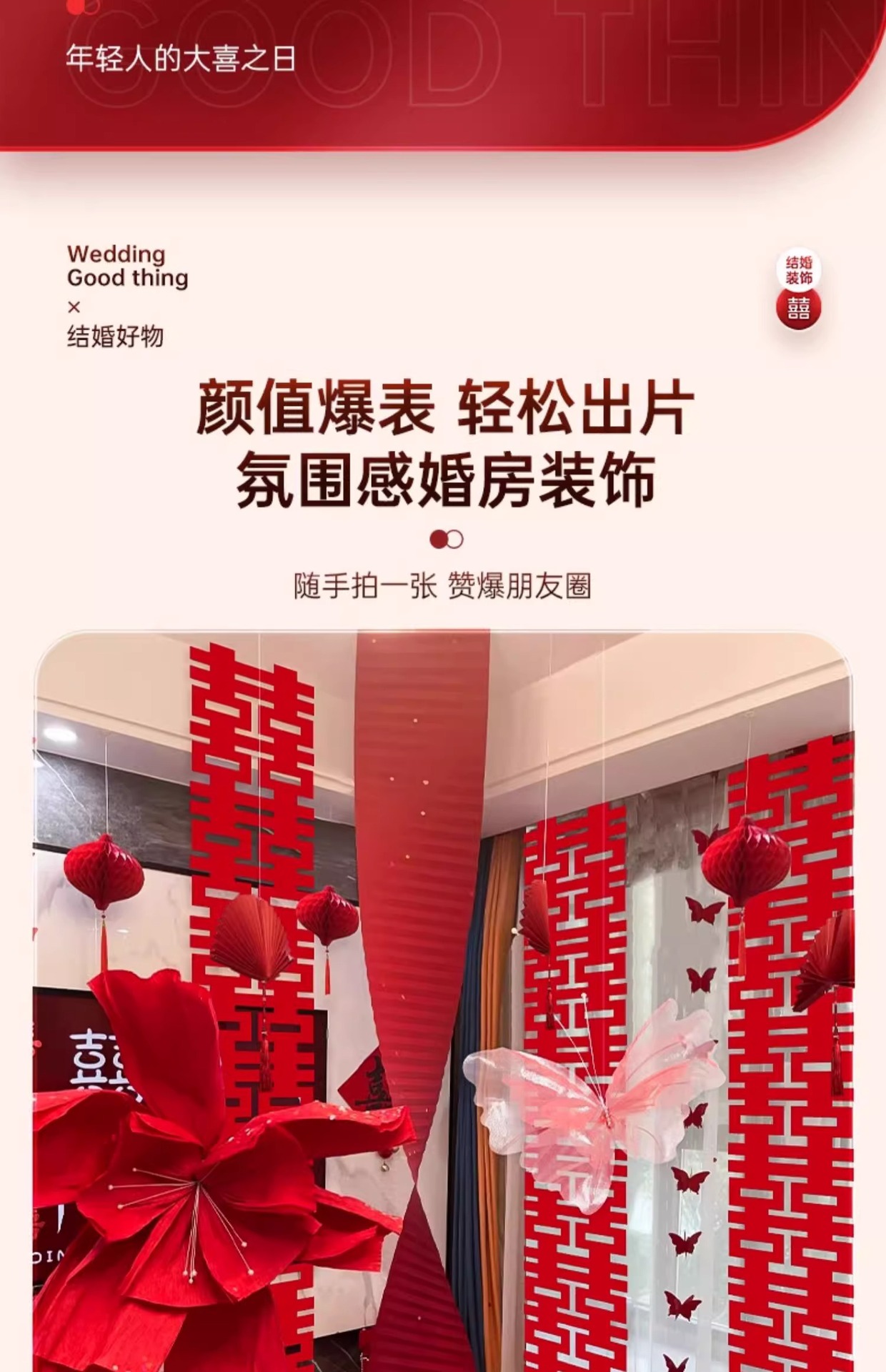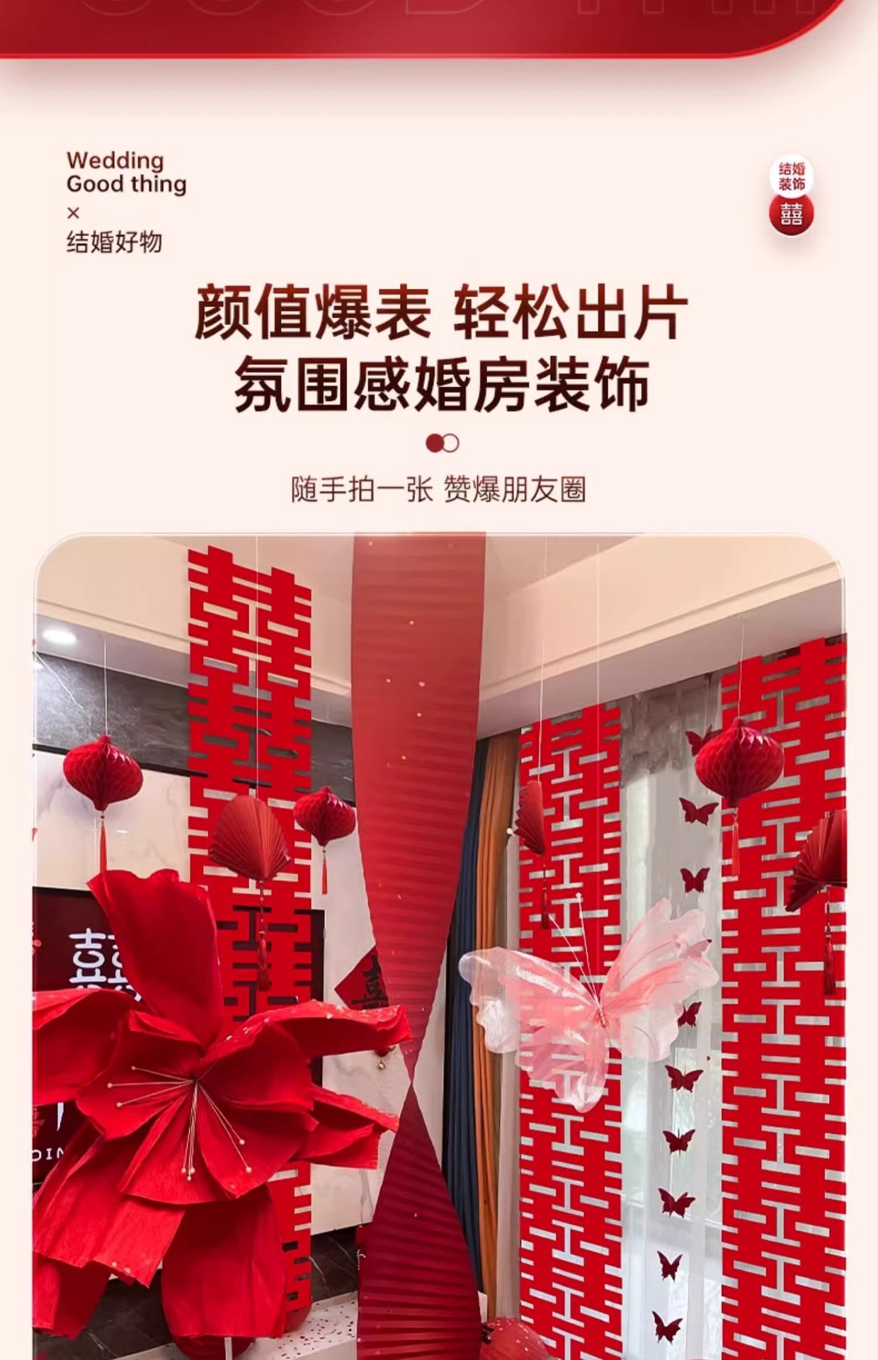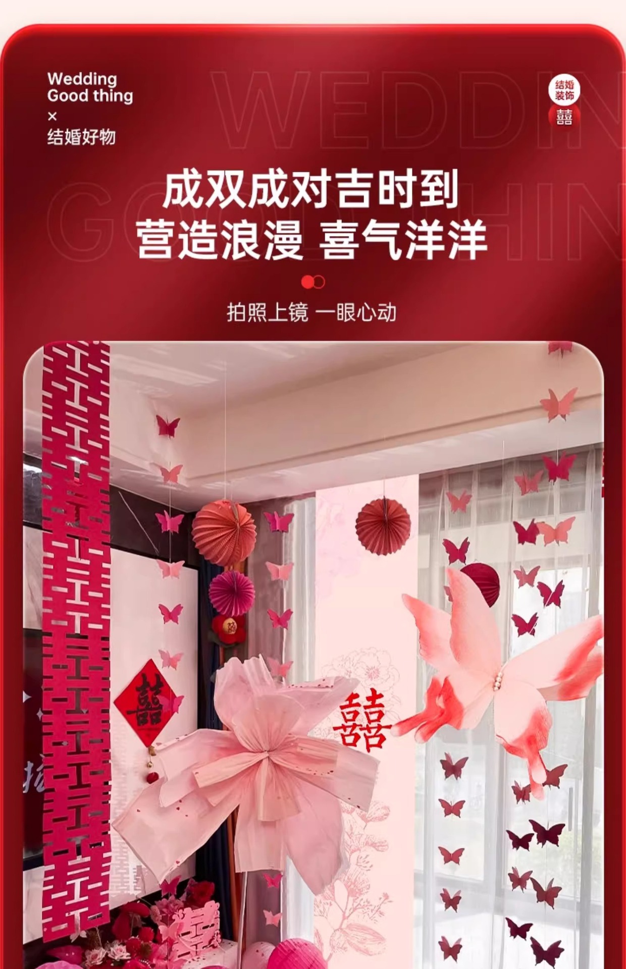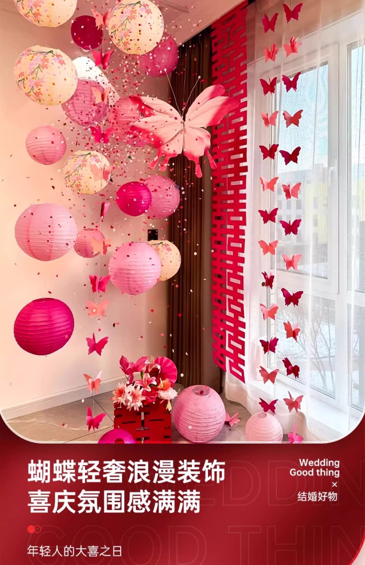 小红书同款婚房布置套装小红书同款结婚装扮大全小红书同款热销婚庆用品大全套装婚房布置套装结婚礼新房装饰女方客厅卧室晨袍拍照背景墙蝴蝶拉花婚房布置套装结婚装饰男女方卧室客厅订婚礼用品窗帘拉花蝴蝶喜字