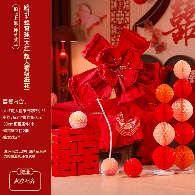 • 빨간색 초대형 주름 꽃 + 벌집 기둥