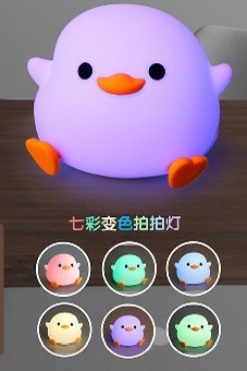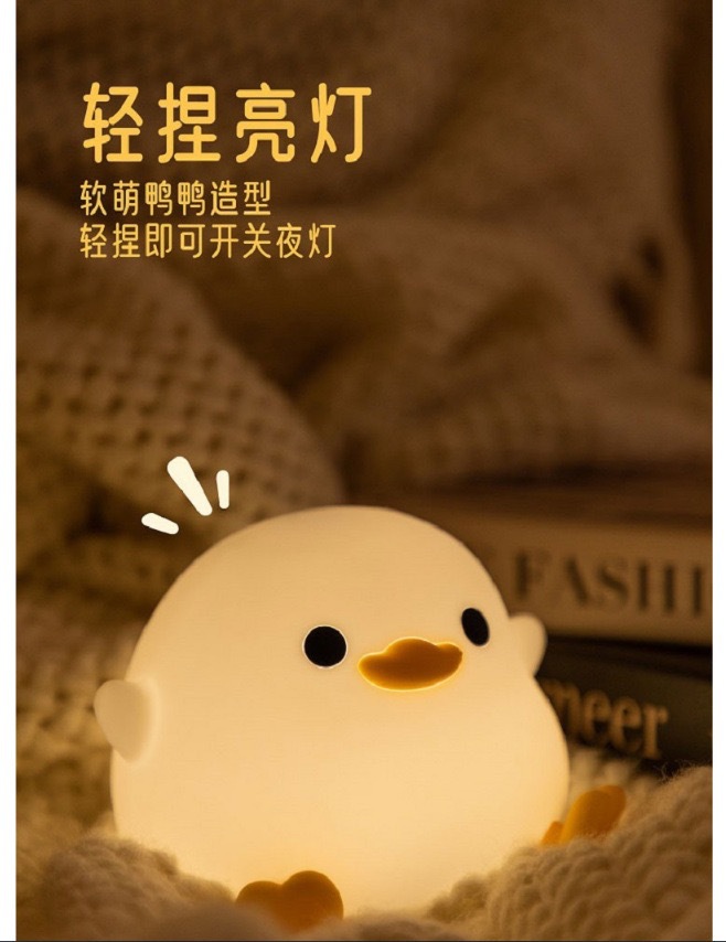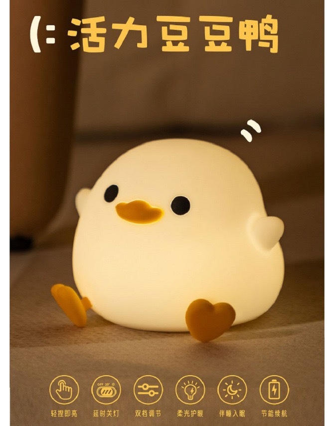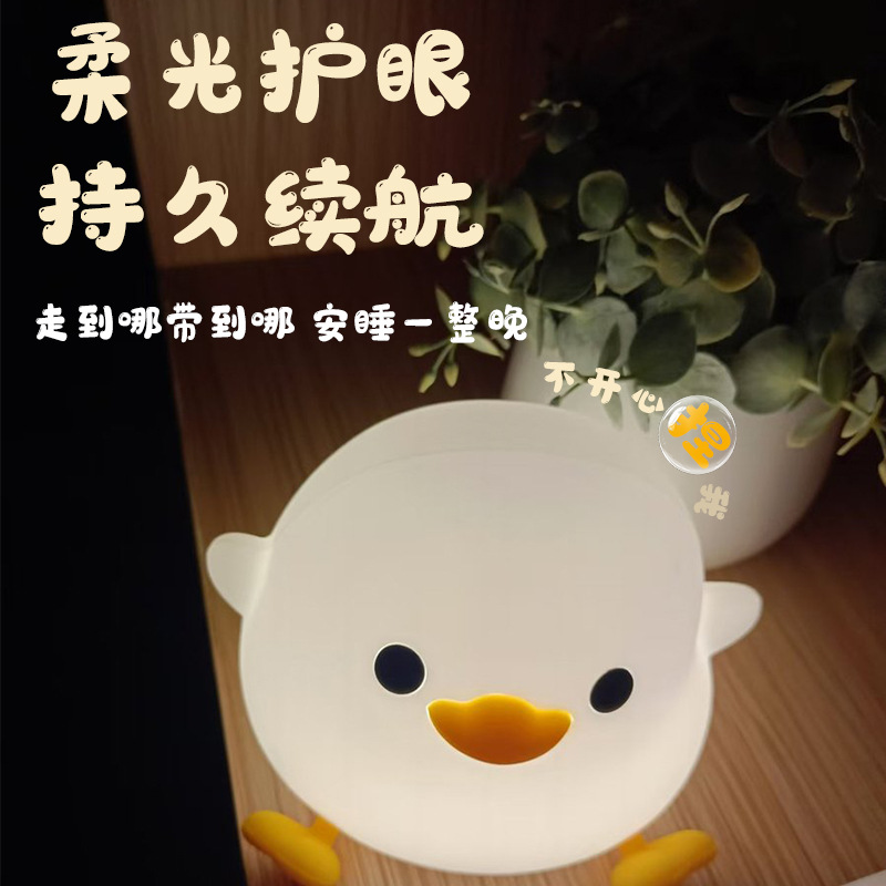 국경 만화 야간 조명 박수 유도 조정 밝기 실리콘 오리 완두콩 오리 USB 충전 침실 장식품스토어 가기