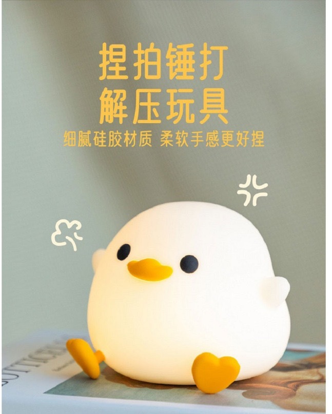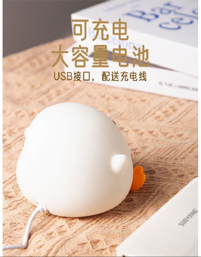 국경 만화 야간 조명 박수 유도 조정 밝기 실리콘 오리 완두콩 오리 USB 충전 침실 장식품