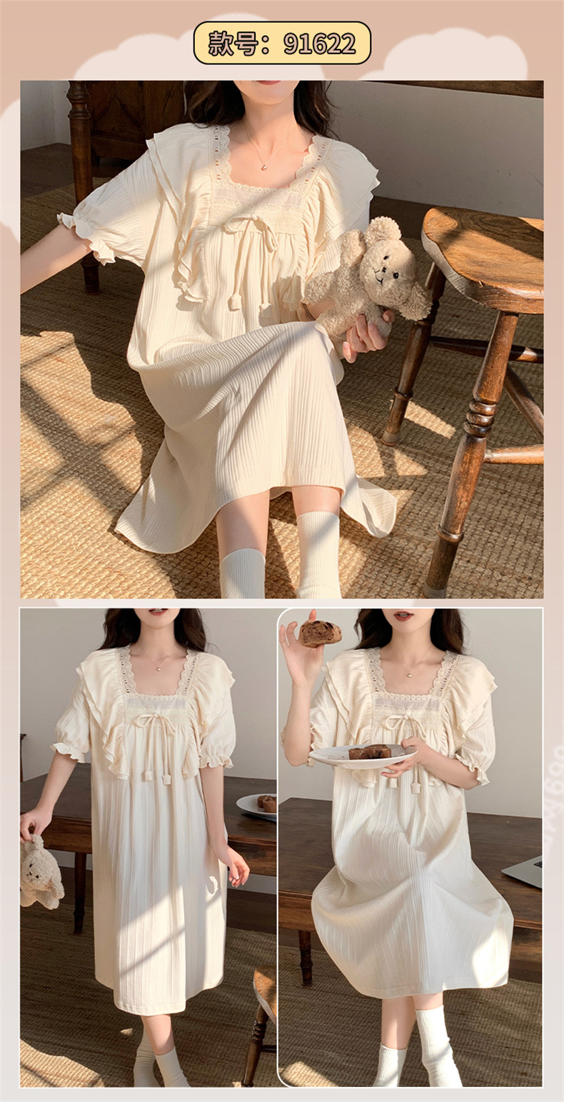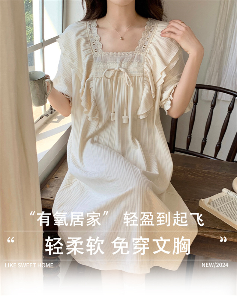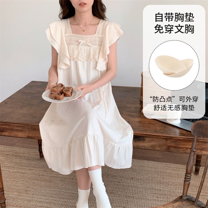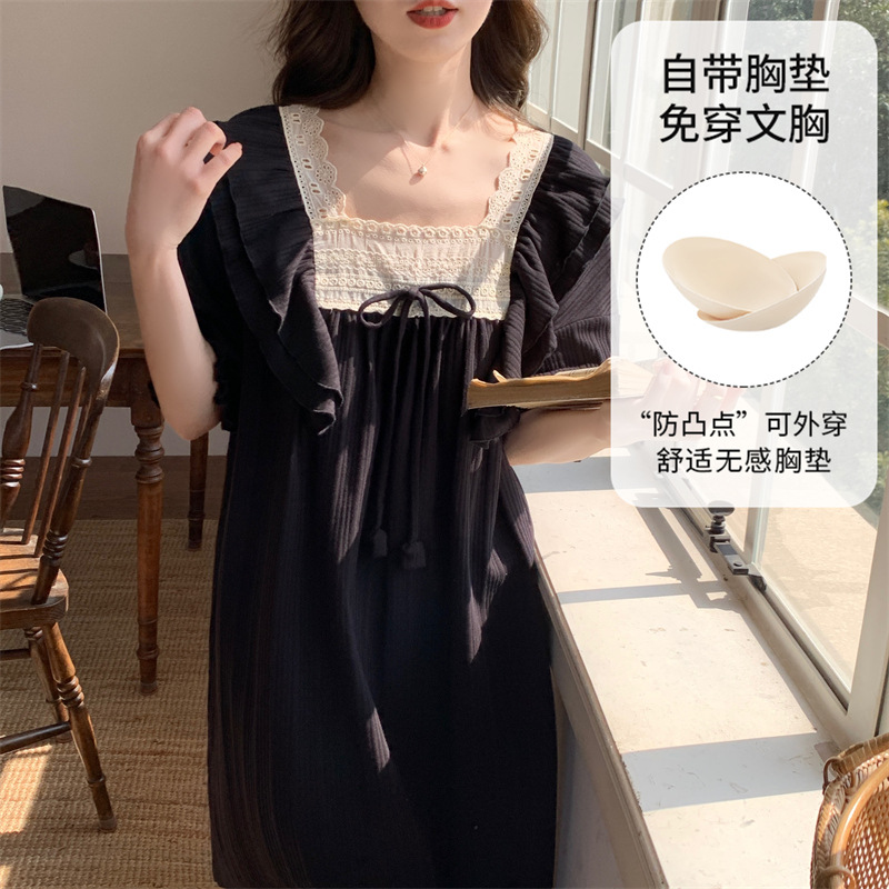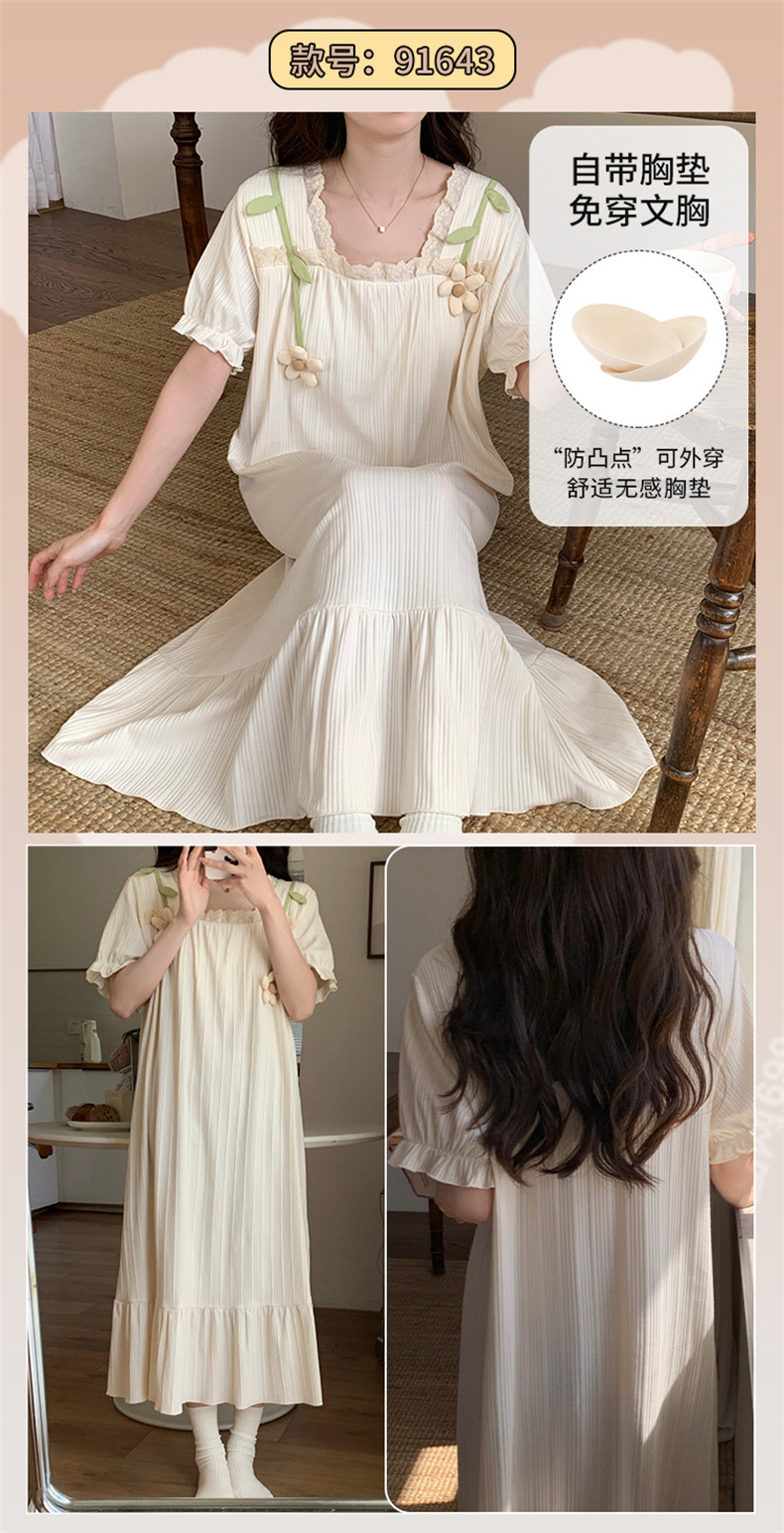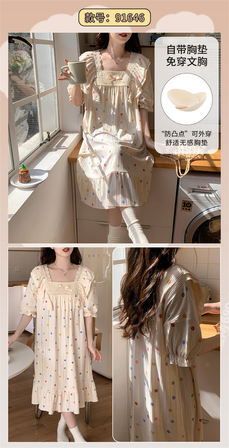 궁전 스타일 잠옷 여성 여름 반팔 모조 코튼 벨트 가슴 패드 나이트 드레스 중간 길이의 만화 캐주얼 플러스 사이즈 홈 옷스토어 가기