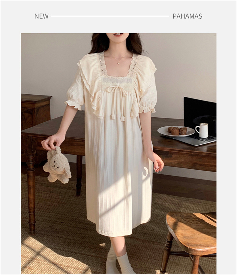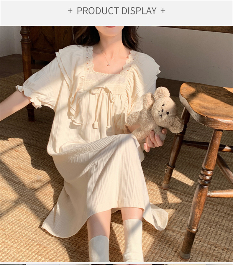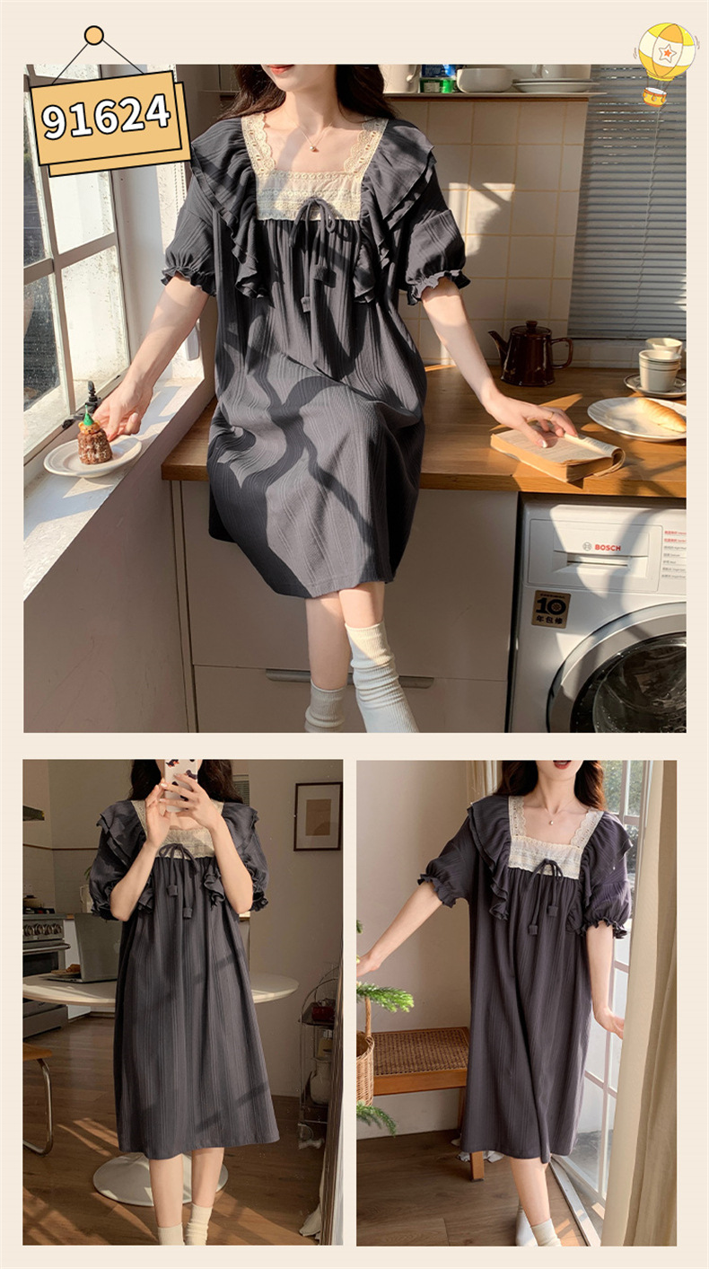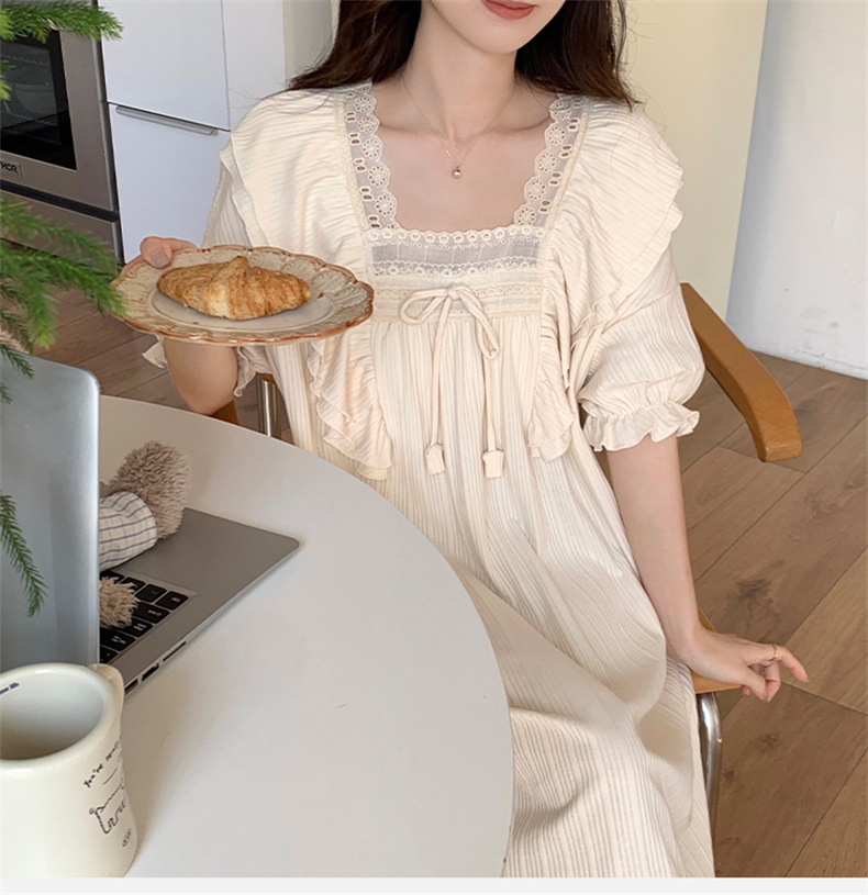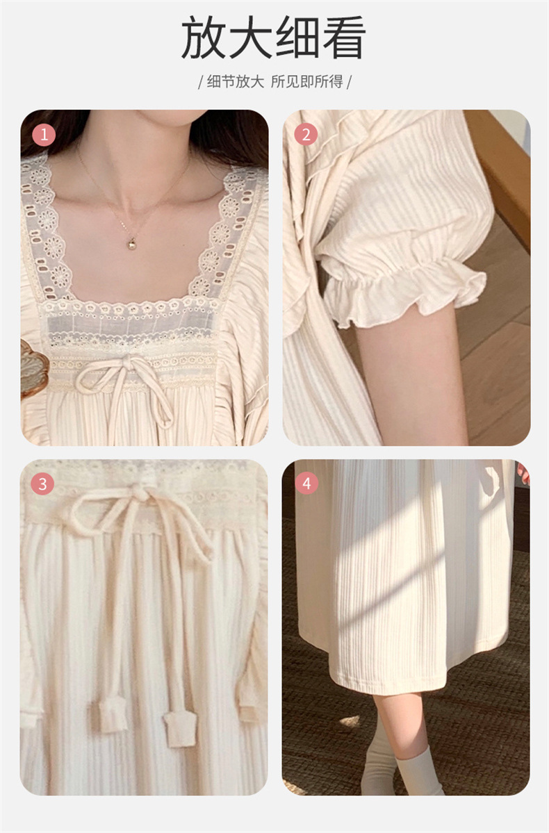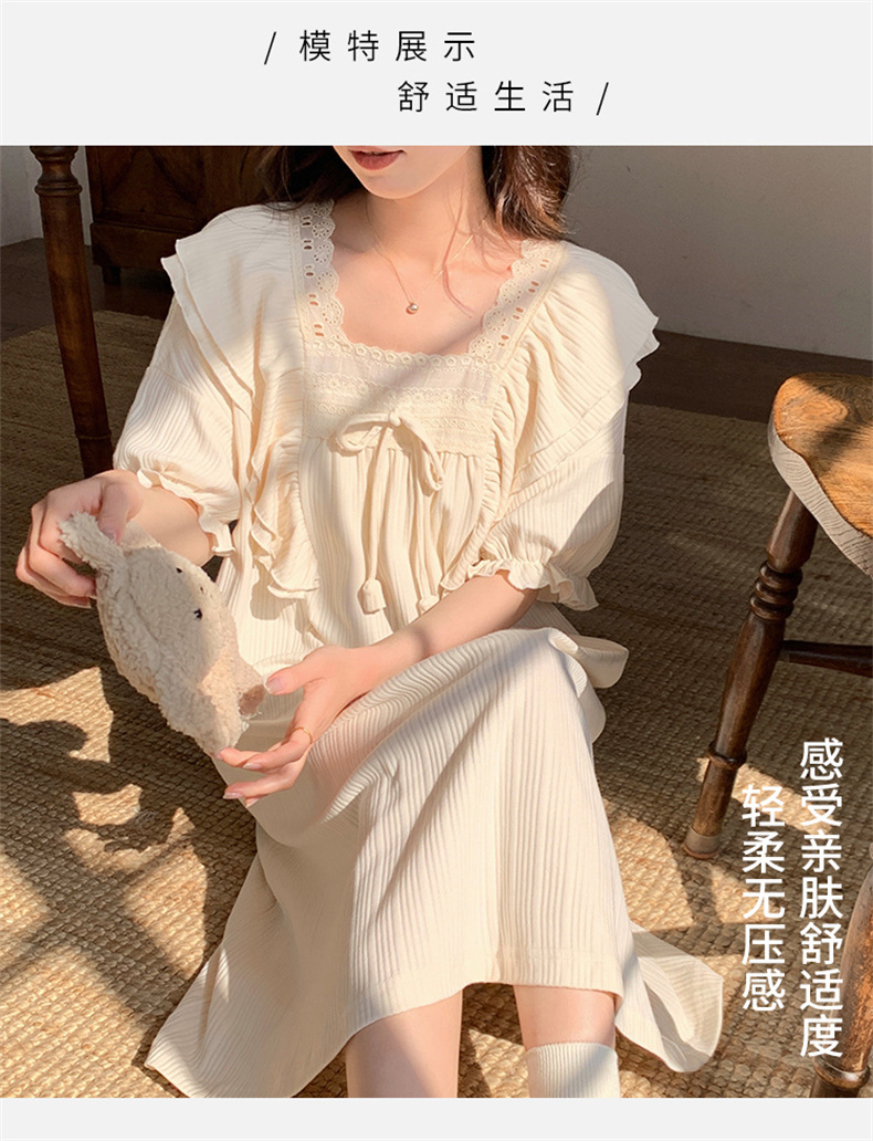 궁전 스타일 잠옷 여성 여름 반팔 모조 코튼 벨트 가슴 패드 나이트 드레스 중간 길이의 만화 캐주얼 플러스 사이즈 홈 옷스토어 가기