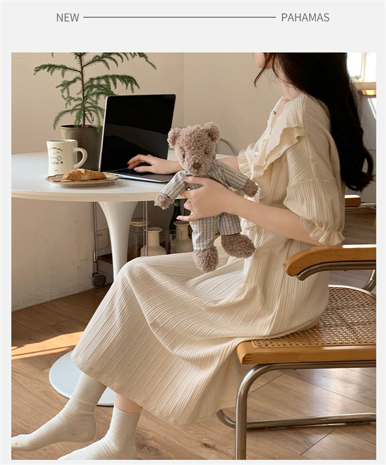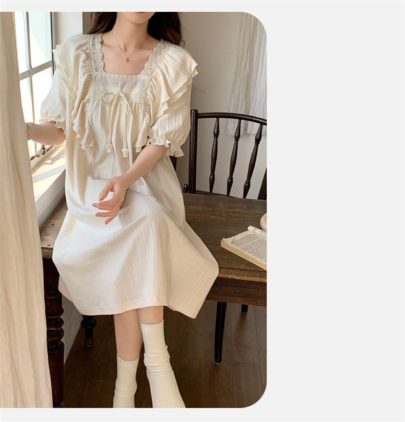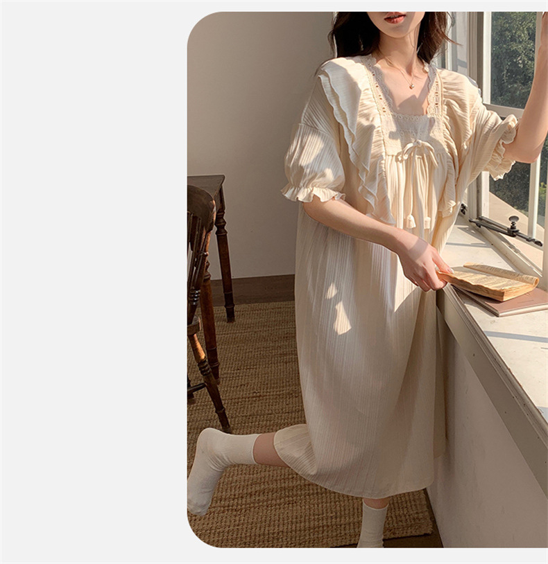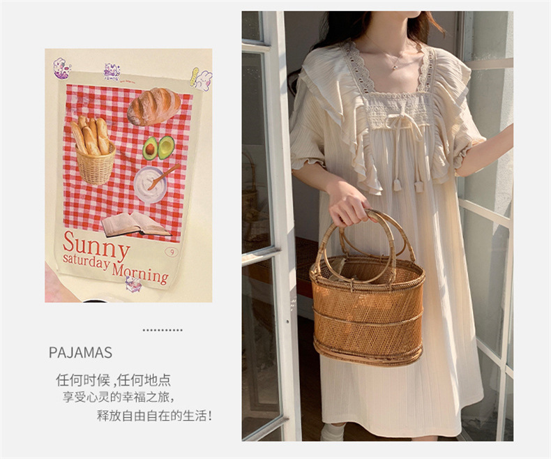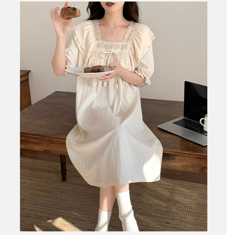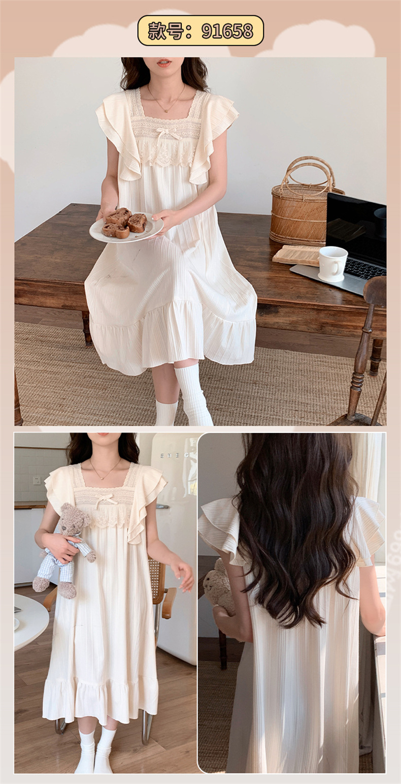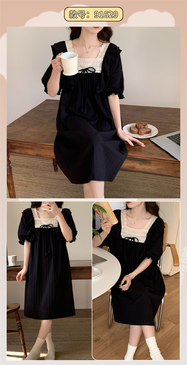 궁전 스타일 잠옷 여성 여름 반팔 모조 코튼 벨트 가슴 패드 나이트 드레스 중간 길이의 만화 캐주얼 플러스 사이즈 홈 옷스토어 가기